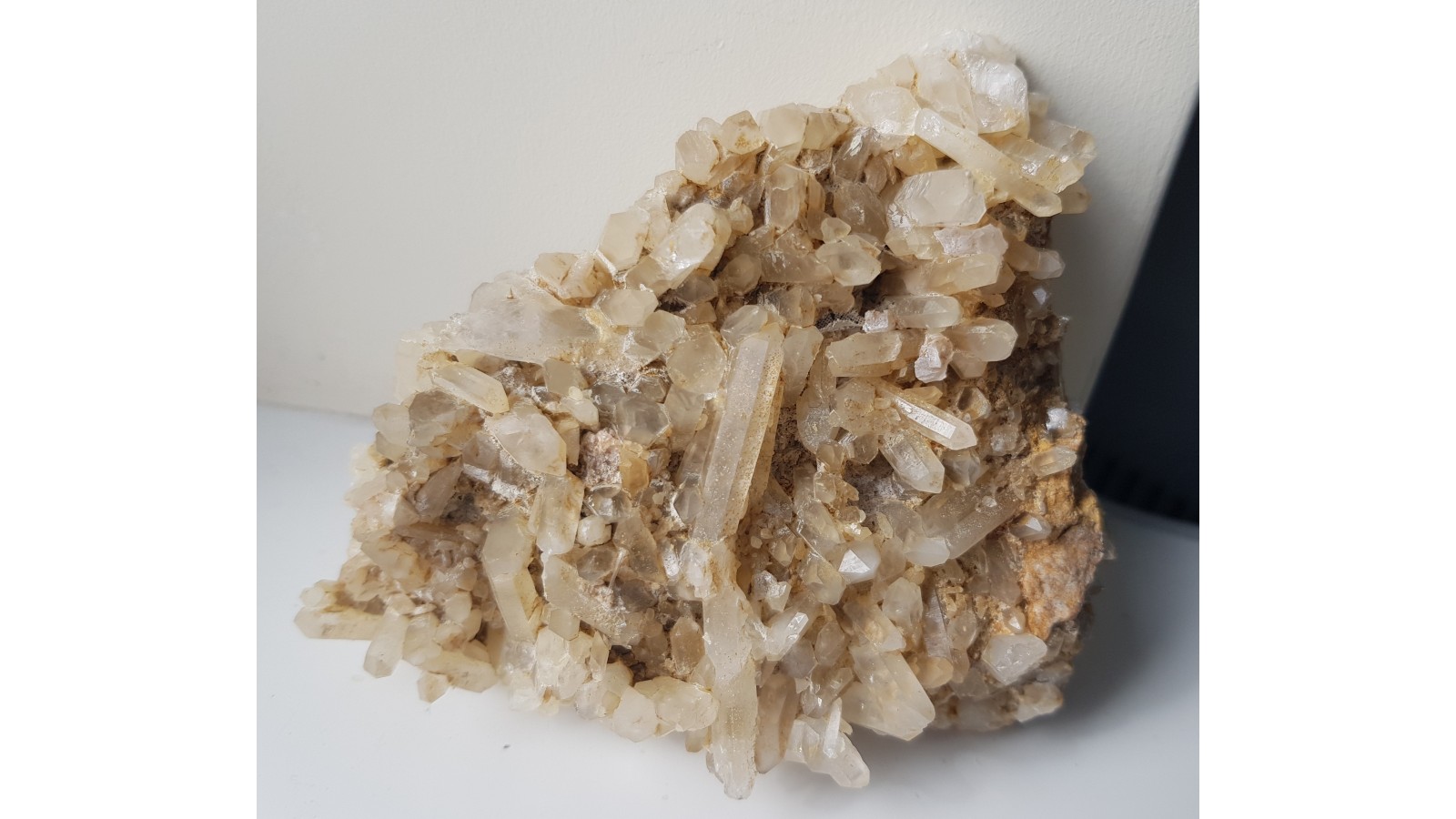 Szczotka kryształów górskich ze Sławniowic. Okaz sprzed wielu lat. Większość kryształów cała, kilka nie idealnych. Całość bardzo estetyczna. Polecam.