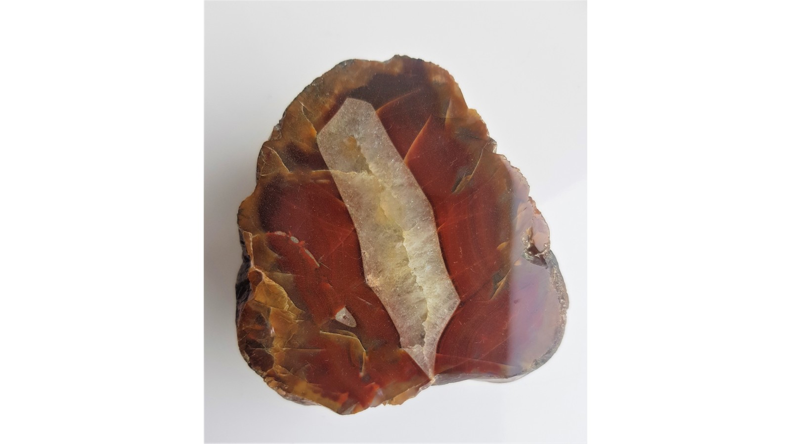 Agat o barwie intensywnej czerwieni. Przeświecjący. Doskonały poler. Agat z aluwiów Bobru.