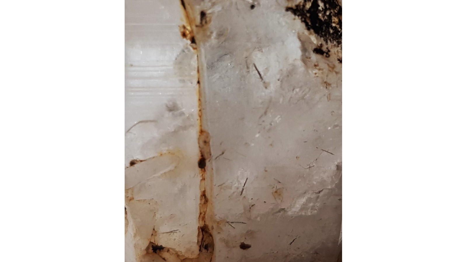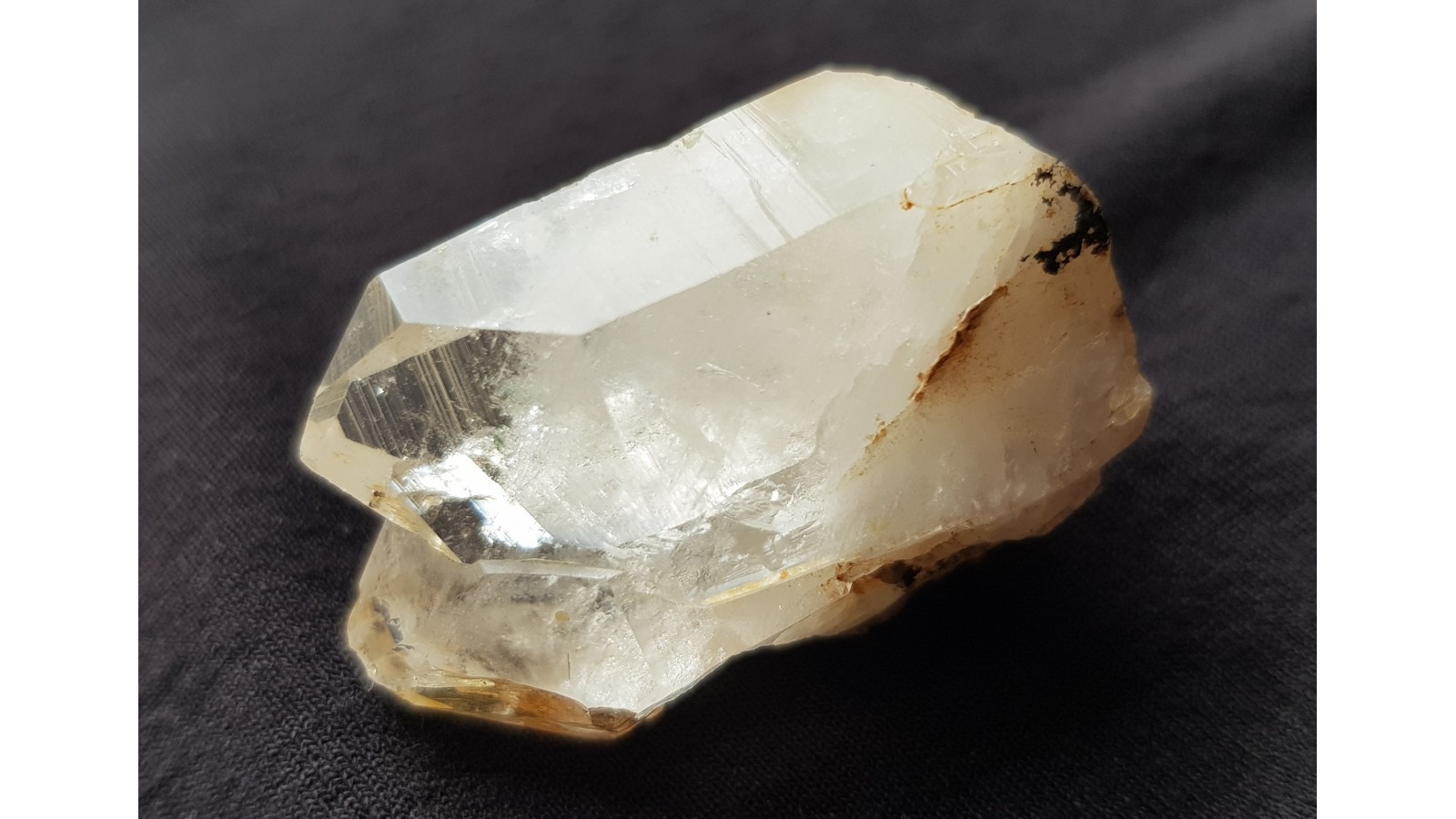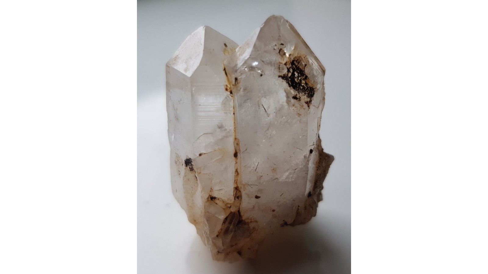 Kryształ górski z Jaroszowa z igiełkowatymi wrostkami allanitu, rzadkiej odmiany epidotu z pierwiastkami ziem rzadkich (REE). Rzadkość. Polecam.