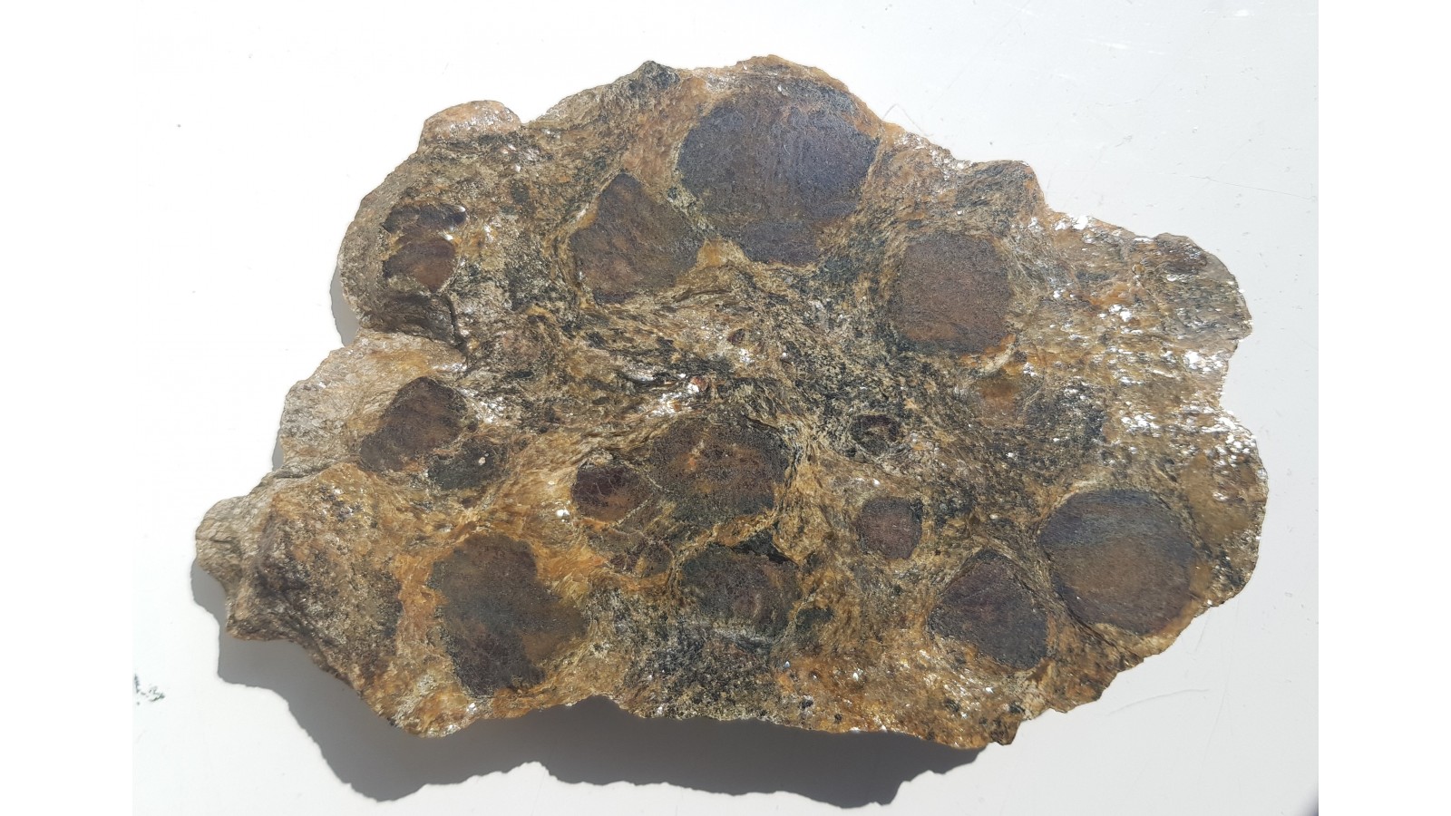 Polished plate of schist with big garnet crystals from Sudetes (Poland)