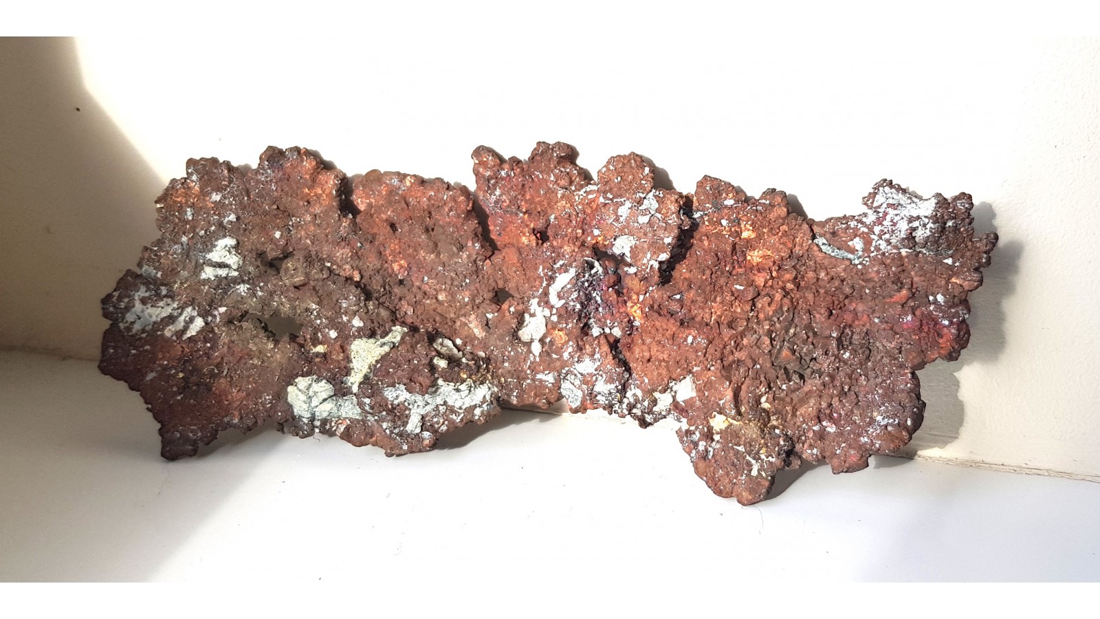 Wyjątkowy okaz miedzi rodzimej ze złoża Osennee w Rosji na Uralu (region Dombarowski, Orenburgska oblast). Duży okaz. Widoczne zarówno formy dendrytowe, jak i liczne kryształy miedzi rodzimej. Unikat. Polecam.