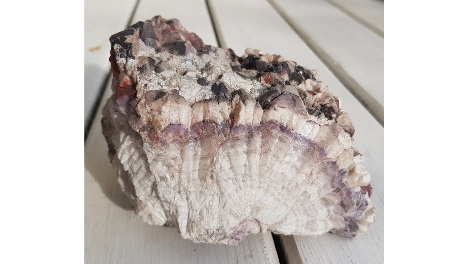 Niezwykły okaz ametystu z Kletna, bowiem jest to szczotka z wieloma zakończonymi kryształami generacyjnego kwarcu z narośniętym hematytem oraz fluorytem. Kryształy układają się radialnie. Duży, piękny kolekcjonerski okaz do sudeckiej kolekcji.