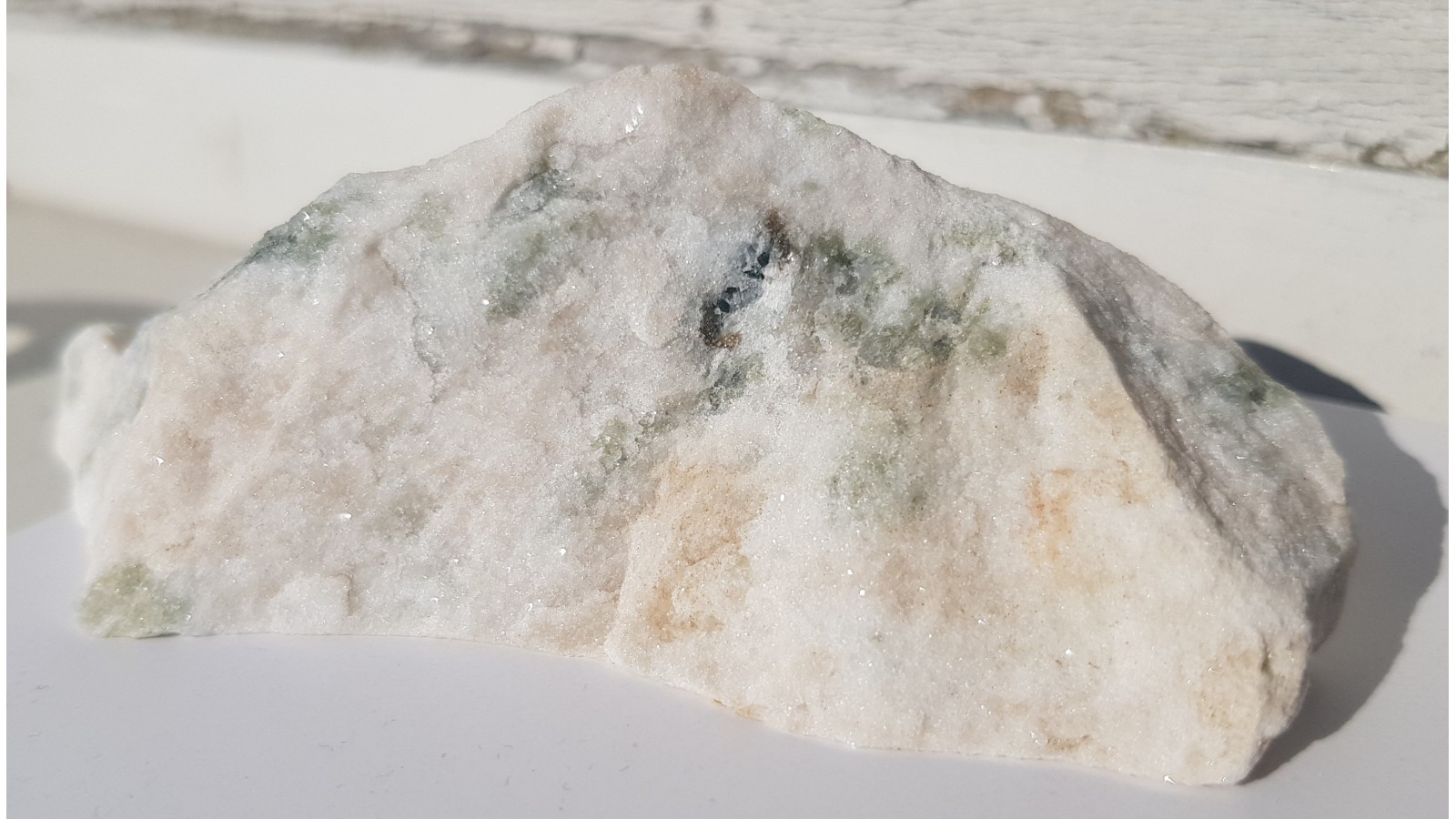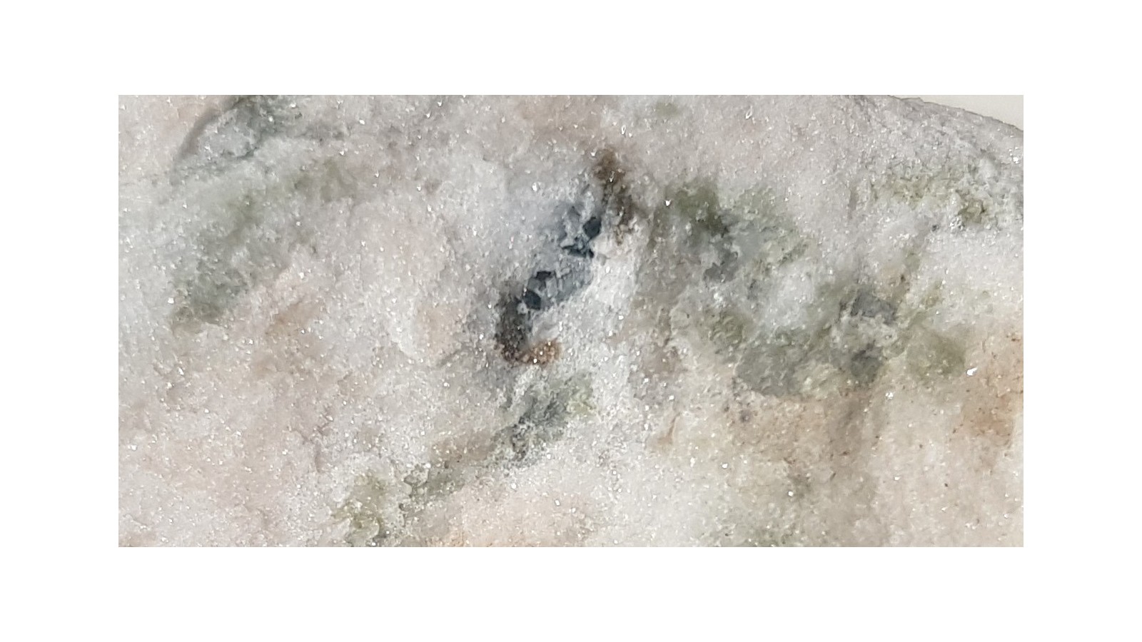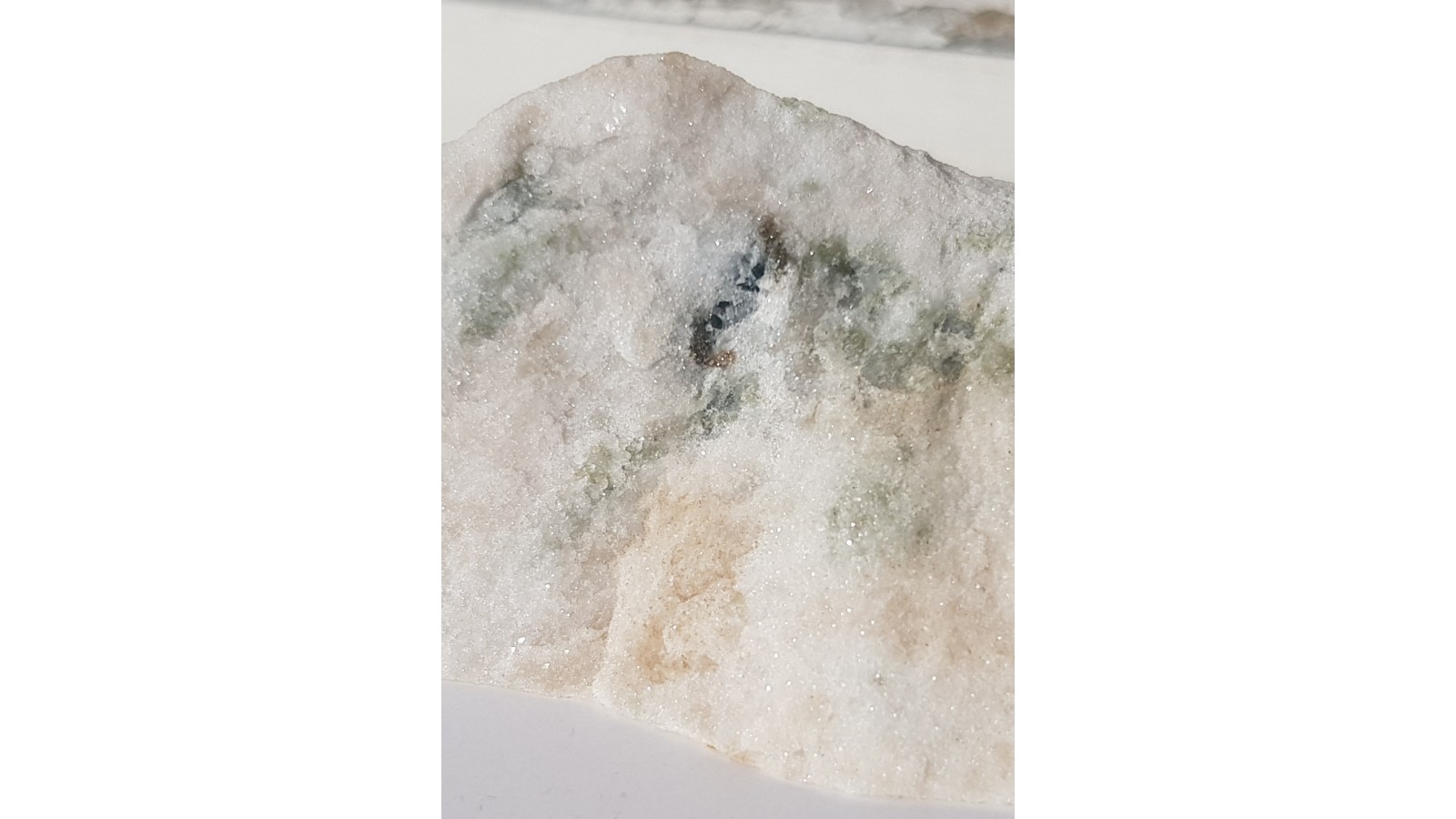 Grupa dobrze wykształconych, ciemnoniebieskich kryształów spinelu właściwego w marmurze dolomitycznym z kamieniołomu w Rędzinach k. Kamiennej Góry. Rzadkość. Same kryształy do 1 mm średnicy, lecz dobrze widoczne z uwagi na kontrastowe zabarwienie. Polecam.