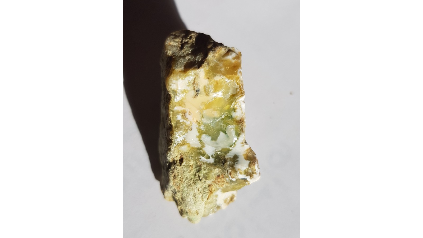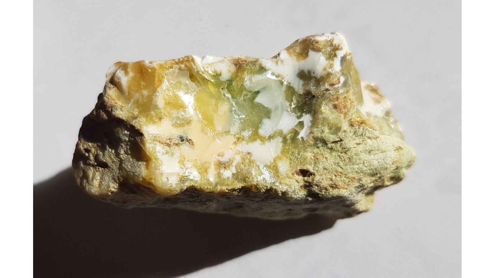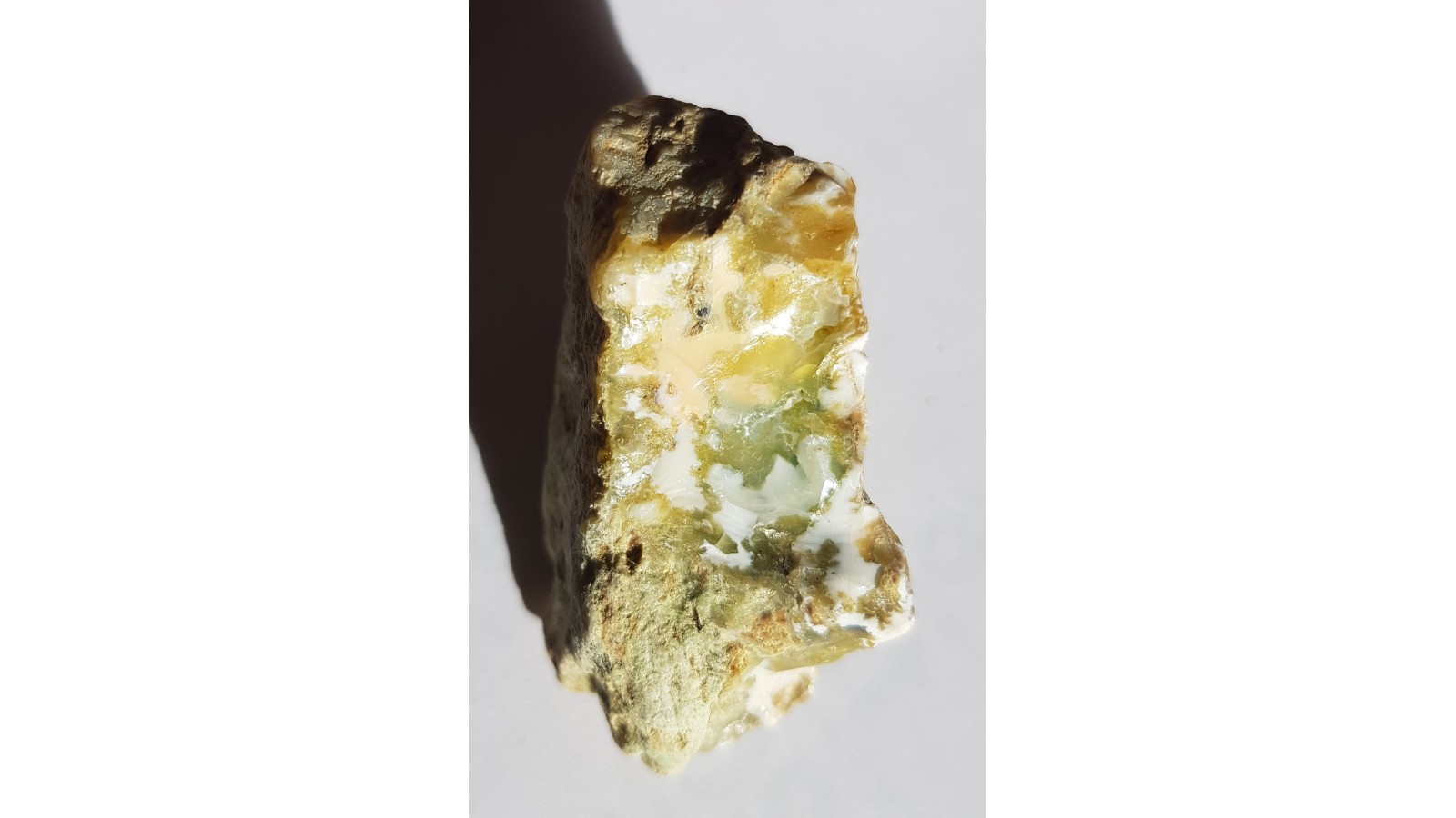 Okaz barwnego opalu ze Szklar k. Ząbkowic Śląskich. Barwa zielona, różowa i mlecznobiała w jednym okazie. Nietypowy, bardzo estetyczny deseń. Polecam.