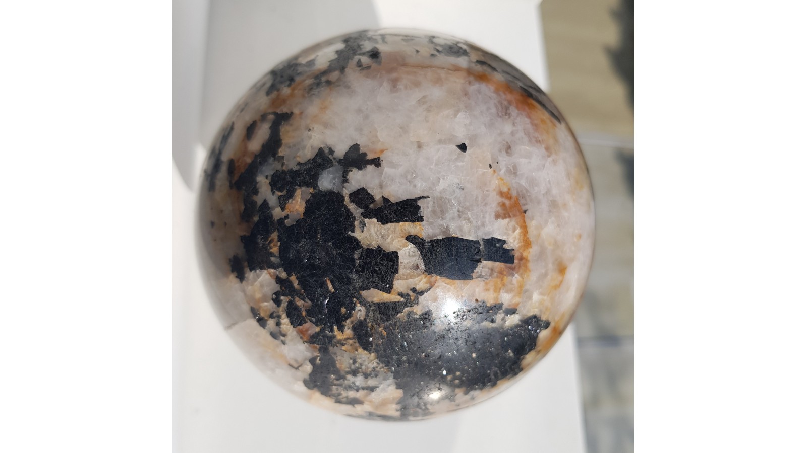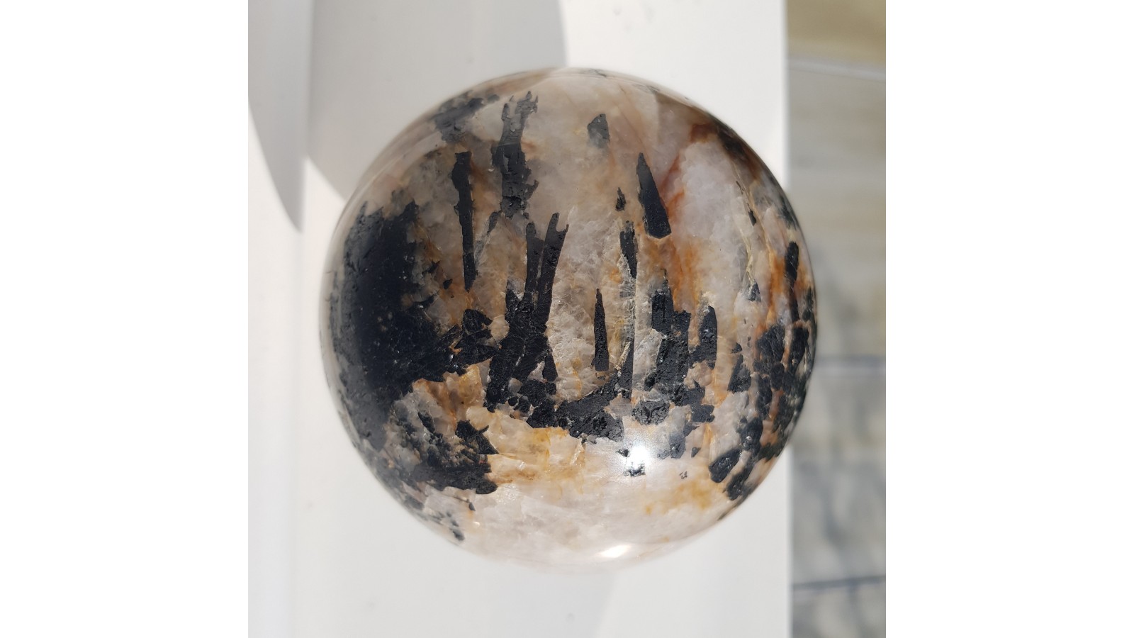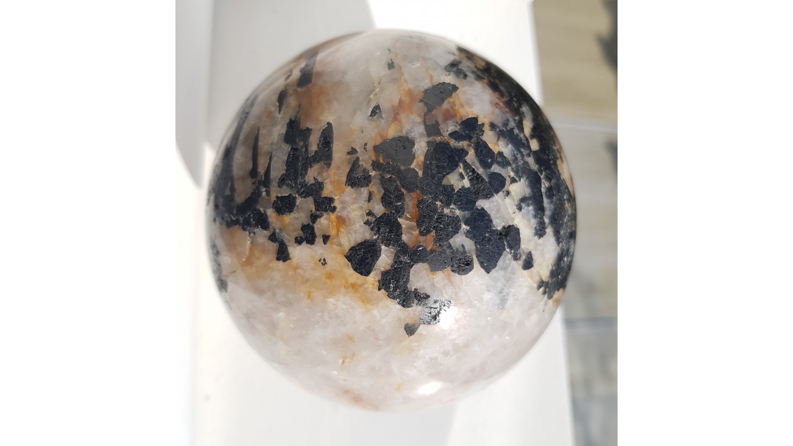 Polished sphere made of tourmaline containing quartz vein from Bulgaria (Hlyabovo)