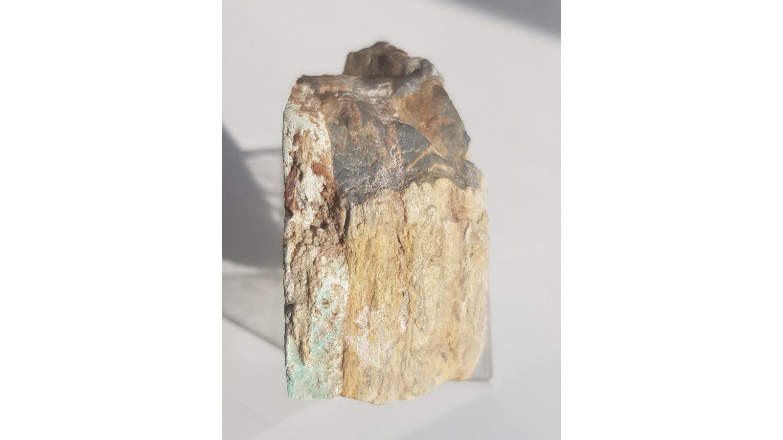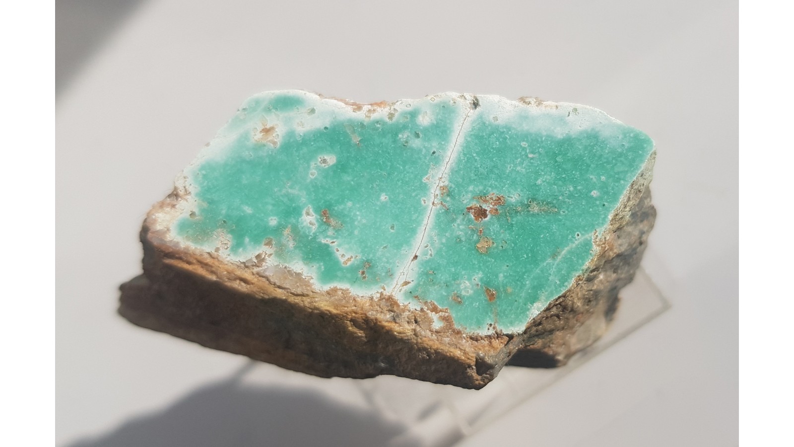 Okaz turkusu z Pustkowa Wilczkowskiego koło Wrocławia. Okaz polerowany jednostronnie. Miąższa żyłka turkusu do ok. 0,5 cm a nie nalot. Bardzo wyrazista barwa. Minerał w ciemnym, sylurskim łupku krzemionkowym z grafitem, w których znajdują się wystąpienia turkusu. Bardzo estetyczny okaz. Polecam.