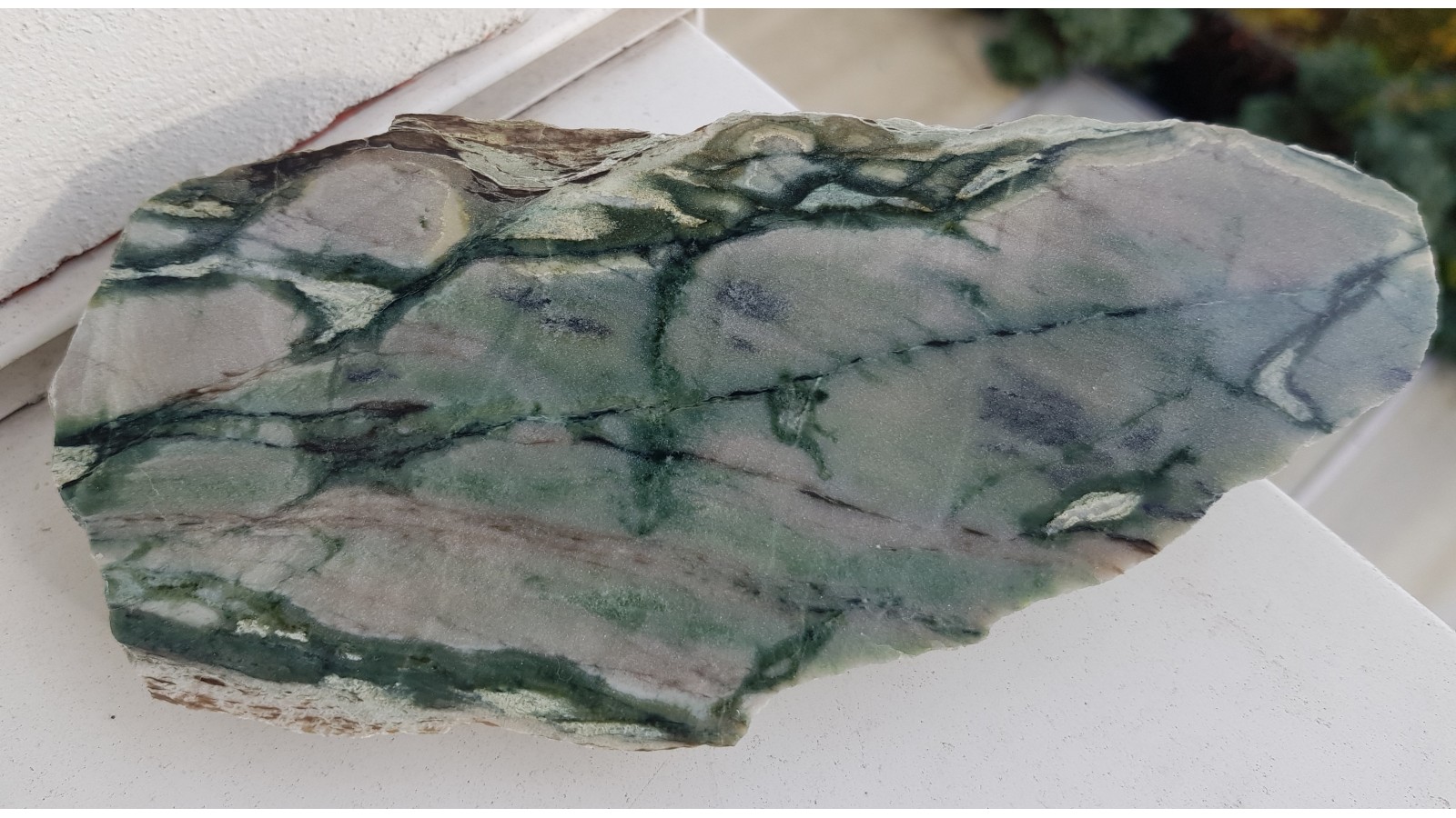 Barwny, pejzażowy dolomit z Rędzin k. Kamiennej Góry o wyjątkowym deseniu. Bardzo estetyczny. Okaz polerowany jednostronnie, strona przeciwna naturalna, nie cięta. Polecam.