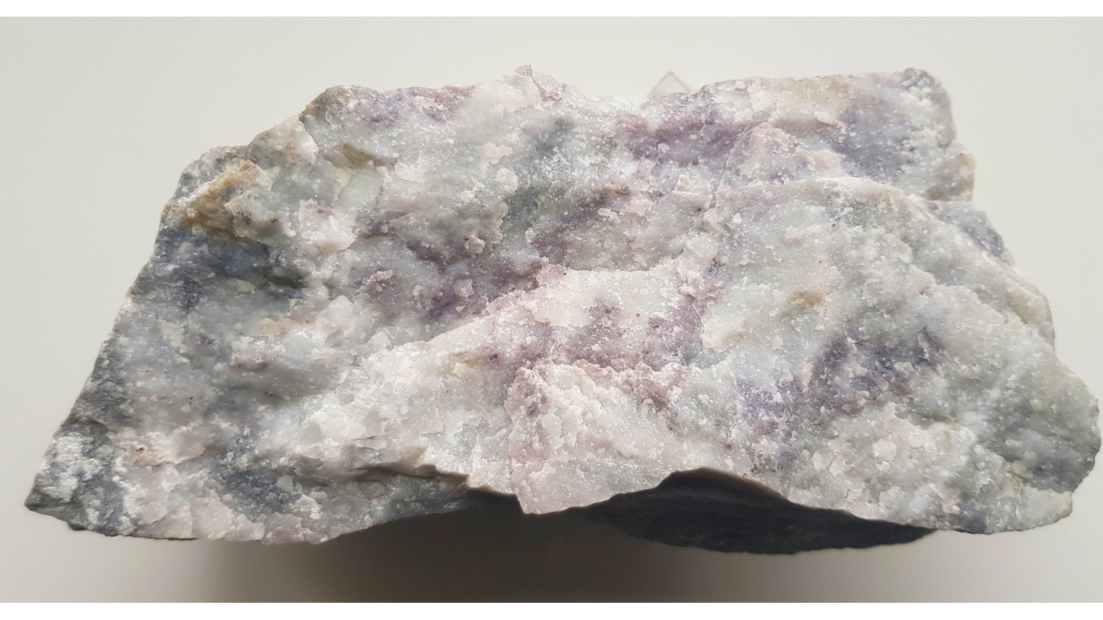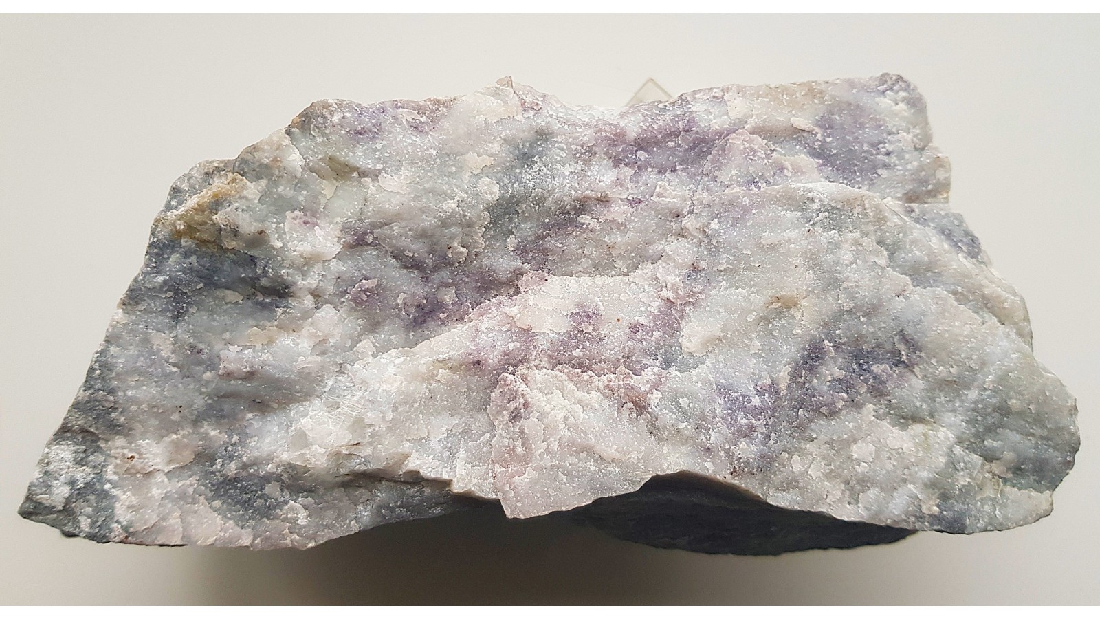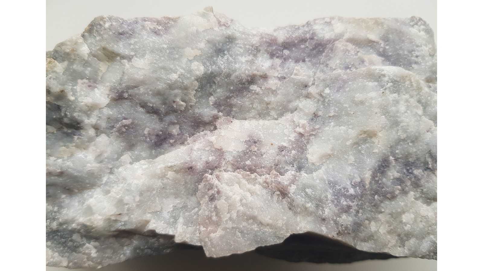 Okaz marmuru dolomitowego z małymi kryształkami przeświecających fioletowych spienli właściwych (Mg, Al). Ciekawostka mineralogiczna z Sudetów. Jedyne opisane miejsce występowania spineli właściwych in situ w Sudetach (Przegląd Geologiczny 10/2019). Strefy dolomitu ze spinelami wyraźnie fioletowe, spinele liczne, małe, ze szklistym połyskiem, czasami cały niewielki osobnik. Wyjątkowa rzadkość. Polecam.