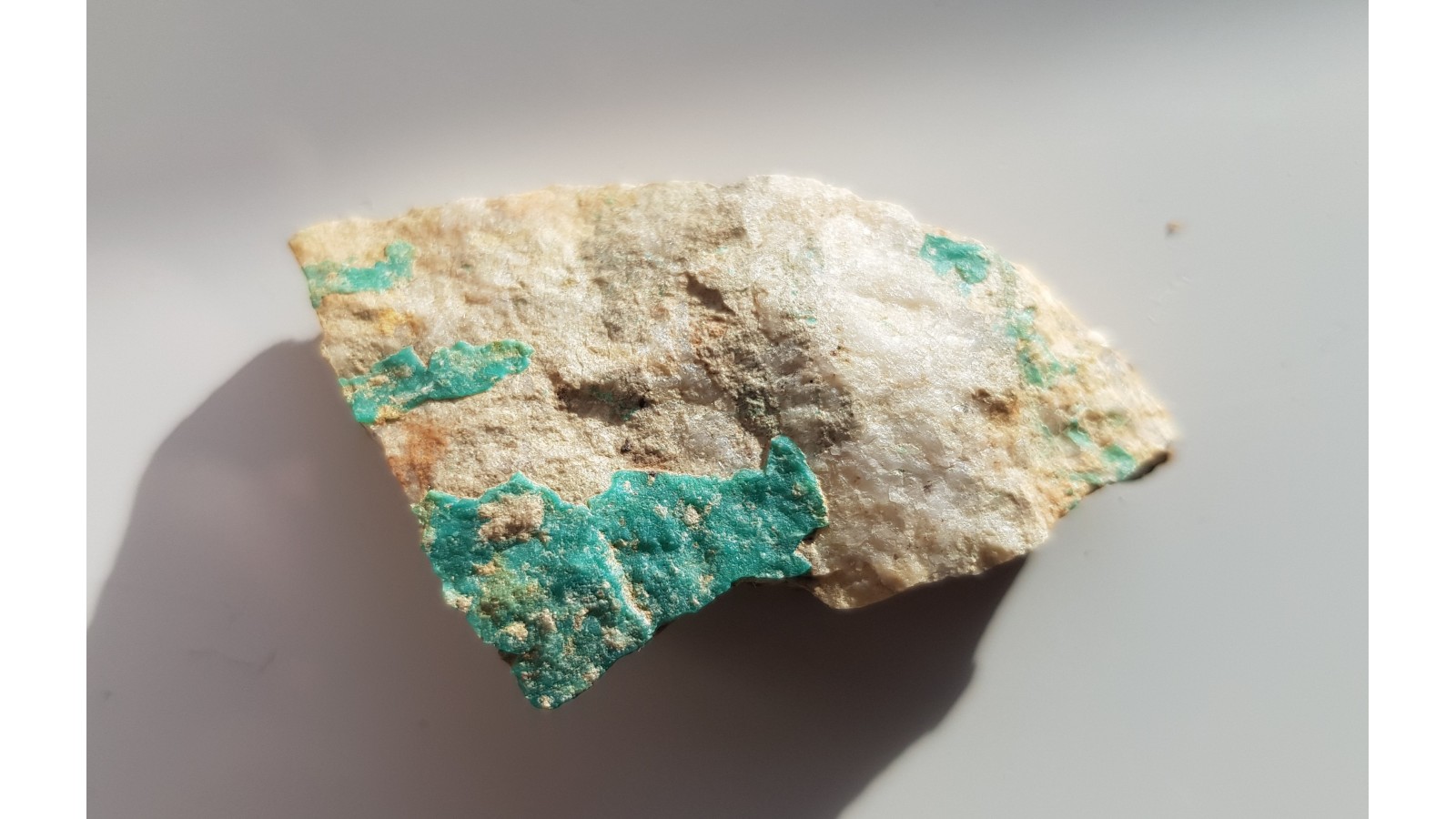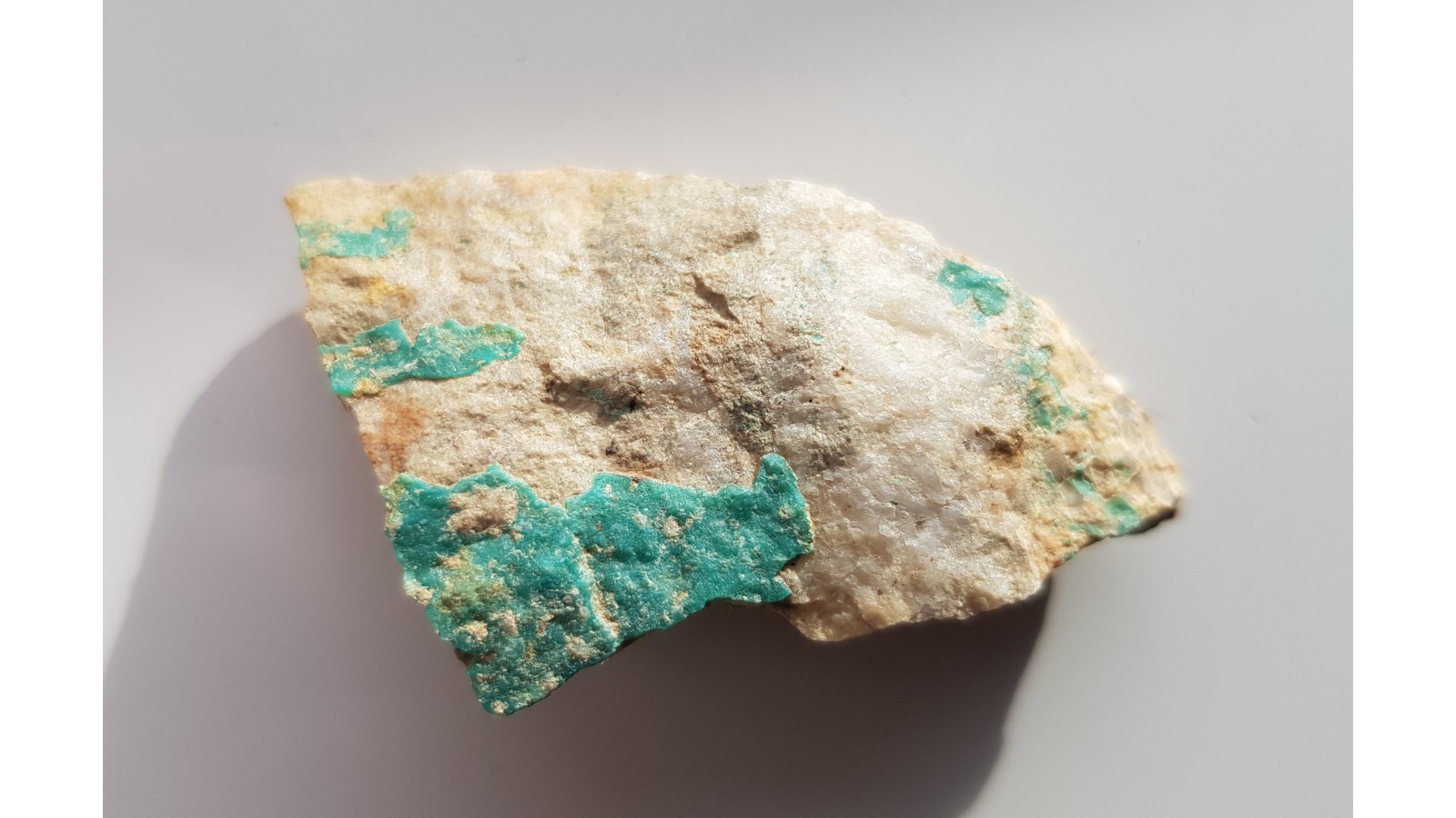 Powłoka turkusu z żyły kwarcowej tnącej granity w okolicach Sadów k. Sobótki. Mało znane stanowisko. Polecam.