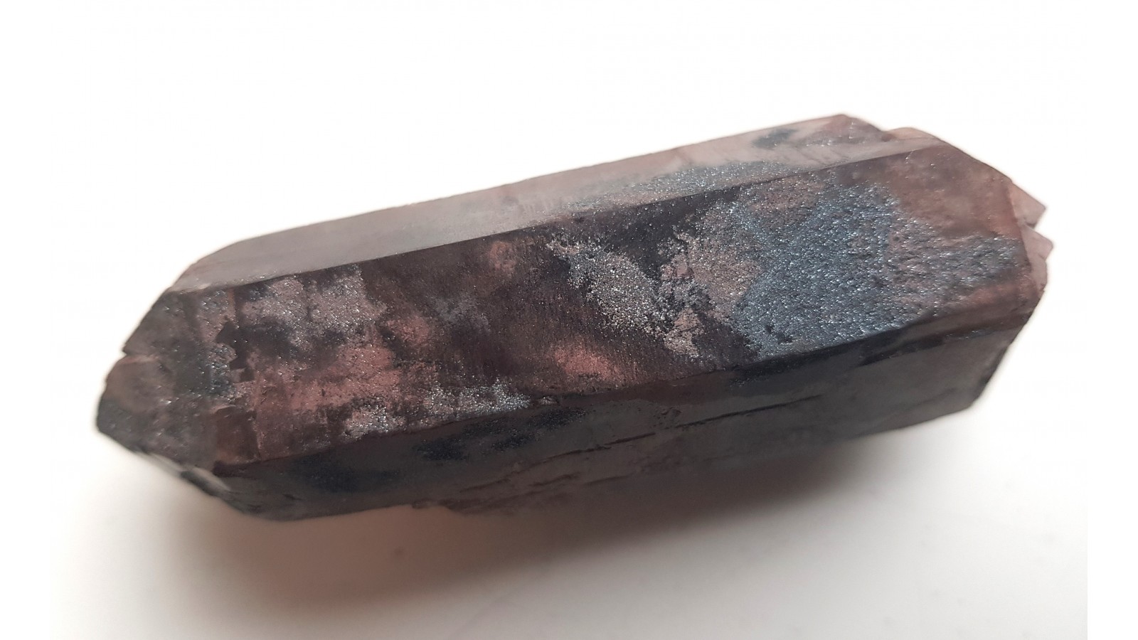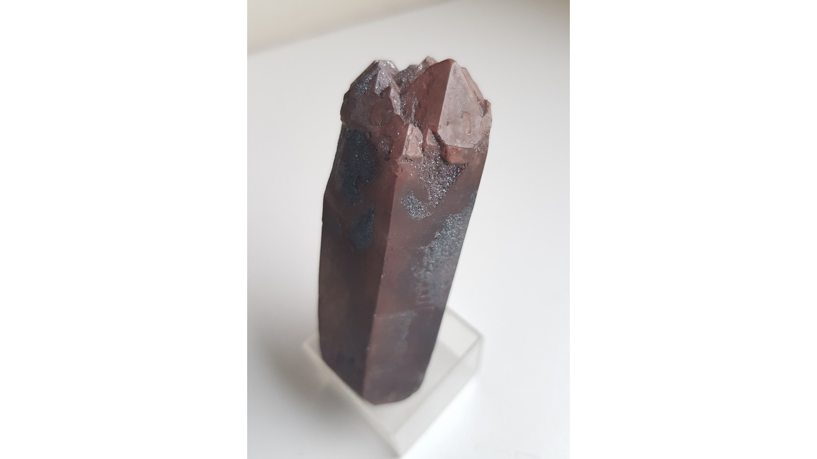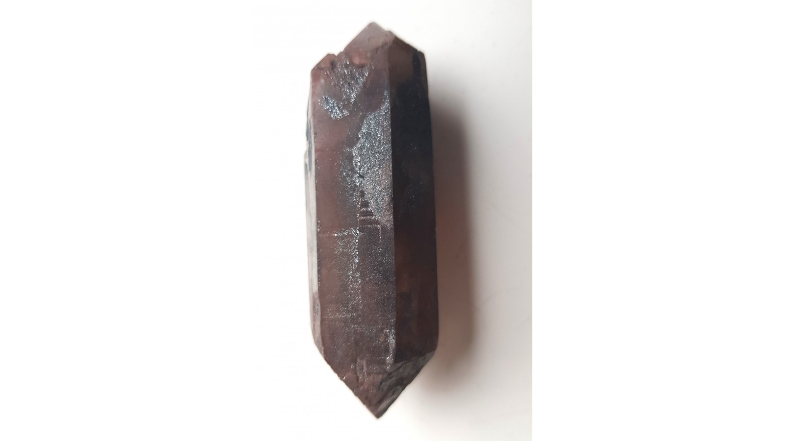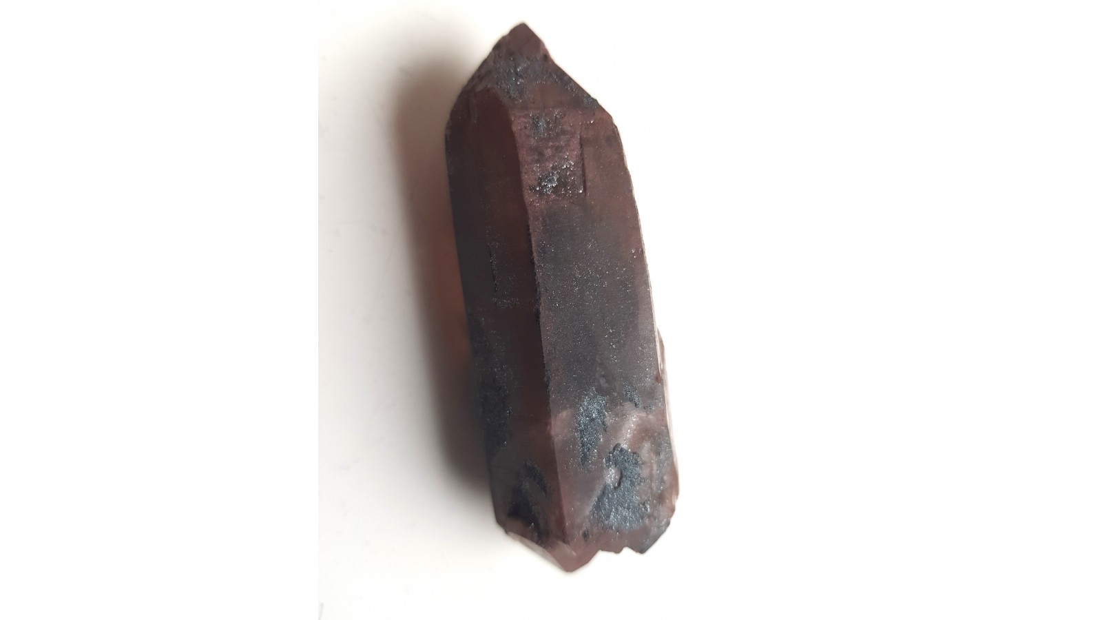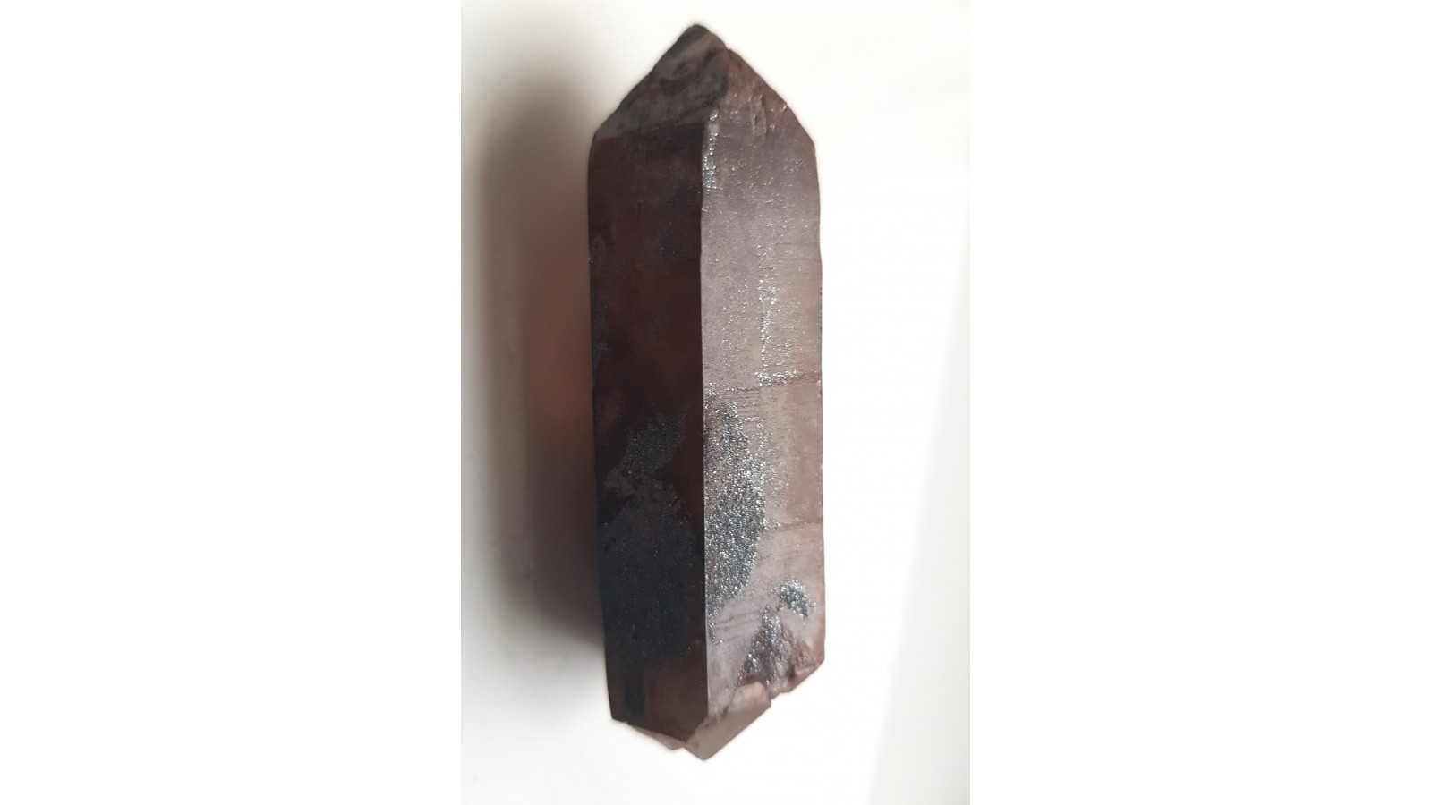 Bardzo ładny, nieuszkodzony i zakończony obustronnie kryształ kwarcu dymnego z hematytem z Maciejowej k. Jeleniej Góry. Polecam.