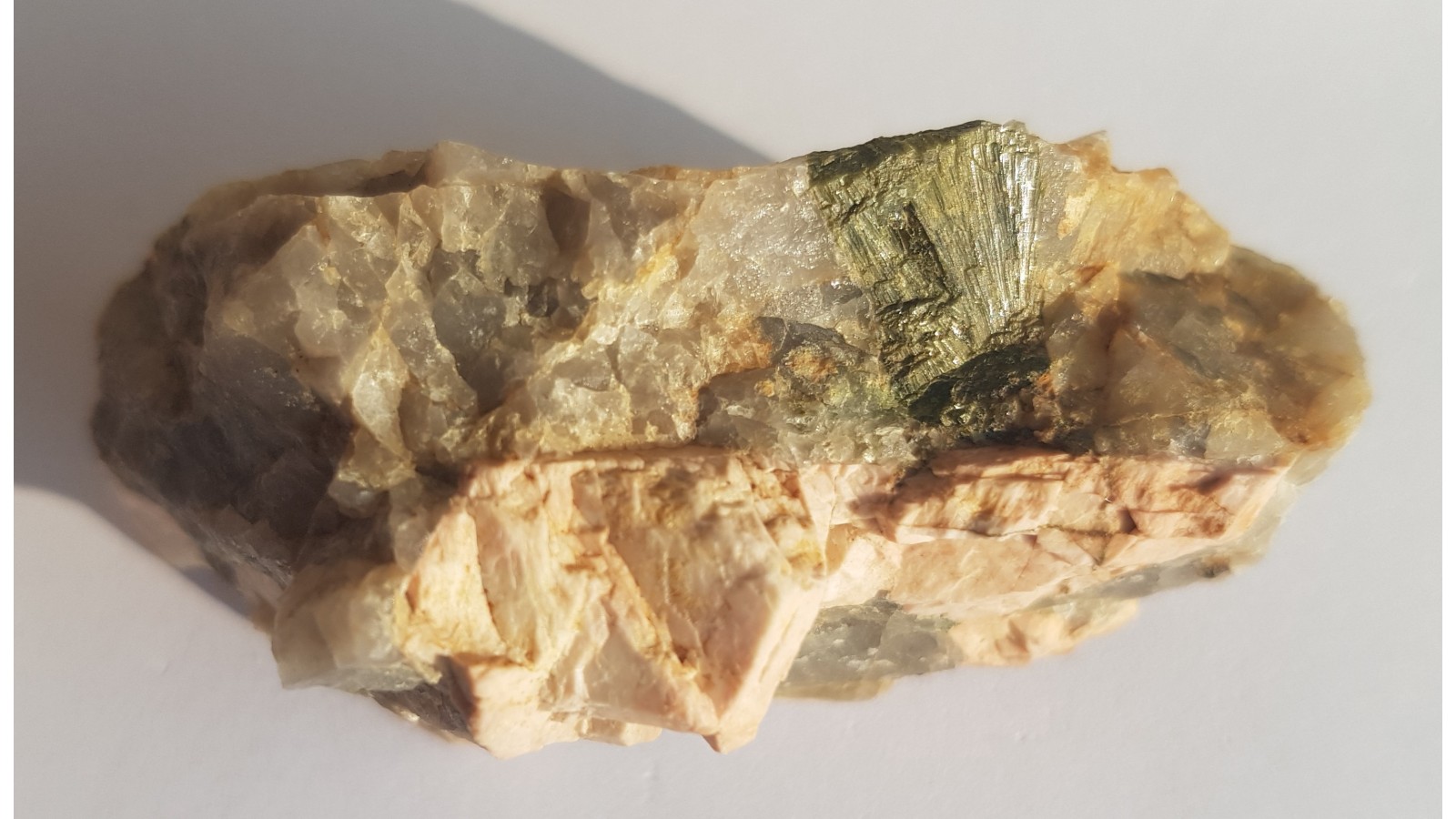 Epidot w postaci radialnej wiązki kryształów w pegmatycie z Jeleniej Góry - Cieplic. Epidoty są w pegmatytach masywu granitowego Karkonoszy minerałem relatywnie rzadkim. Polecam.