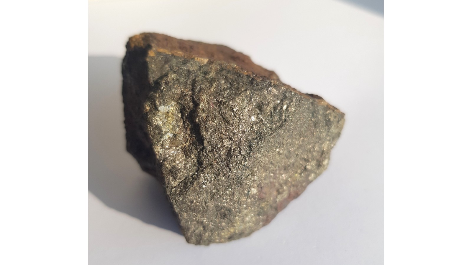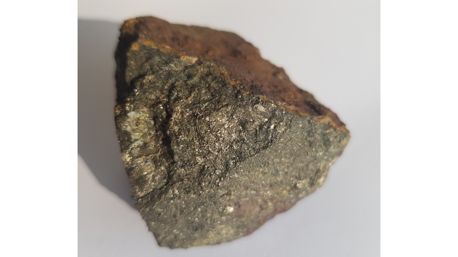 Okaz pirotynu o wyrazistej, tombakowej barwie z Miedzianki (Rudawy Janowickie). Masywna bryłka. Okaz bez obróbki. Polecam.