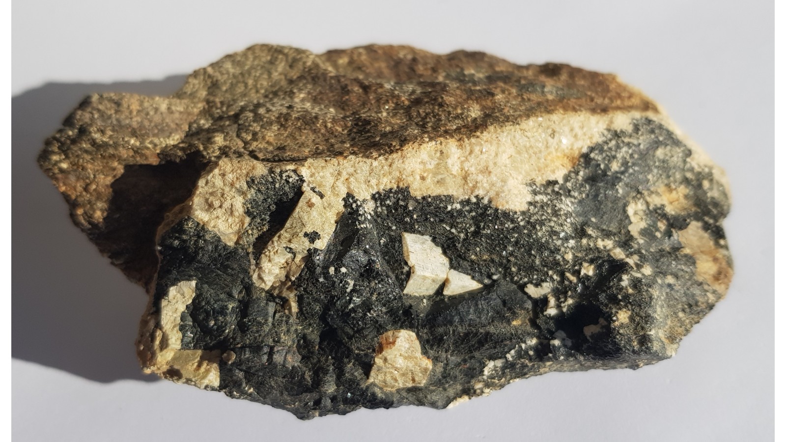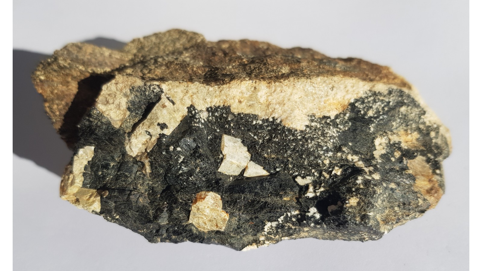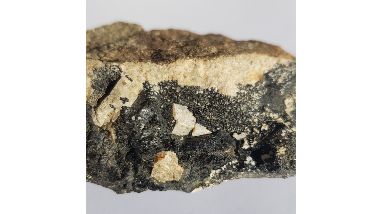 Apatite crystals in black tourmaline from Sudetes (Poland)