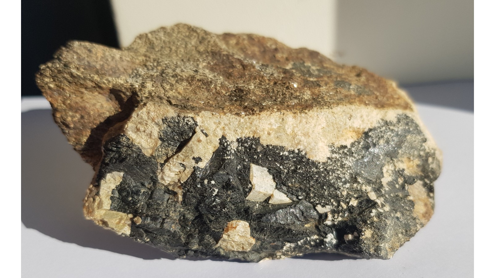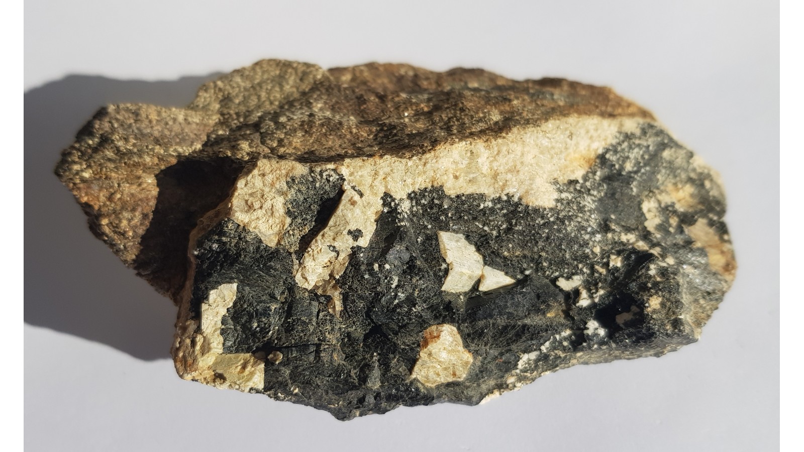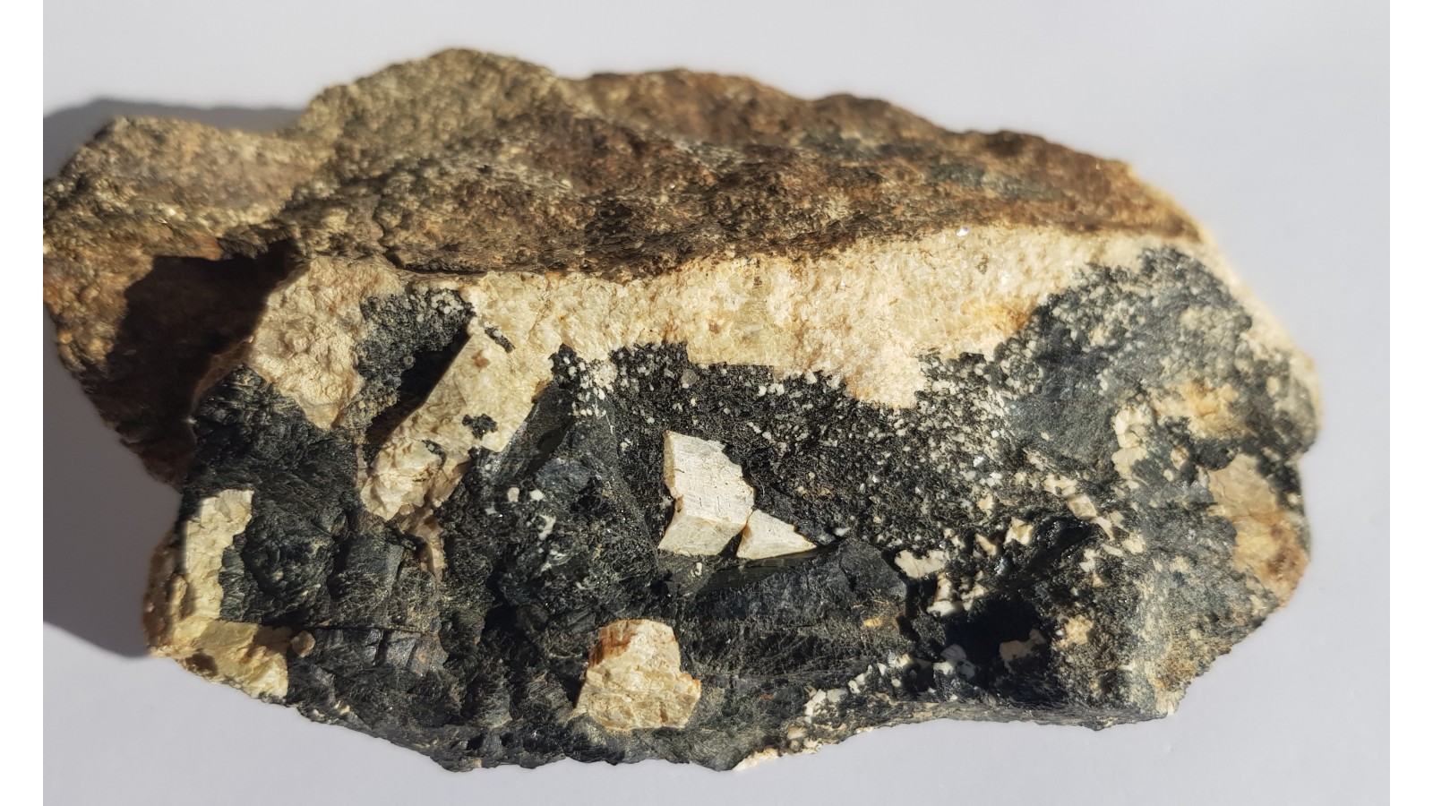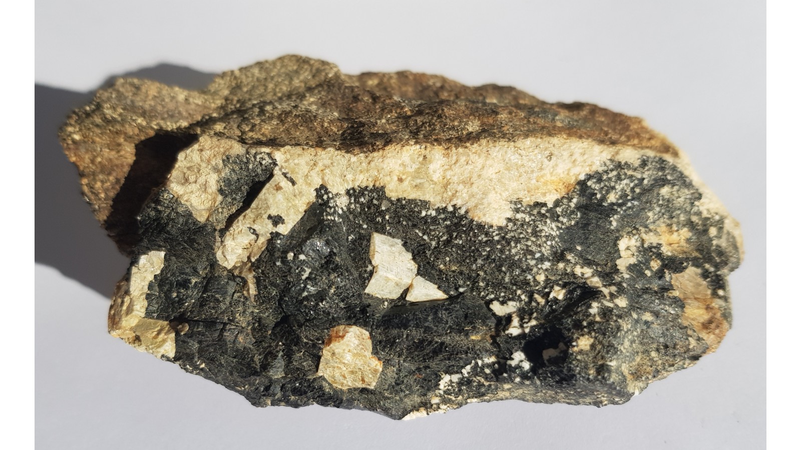 Apatite crystals in black tourmaline from Sudetes (Poland)
