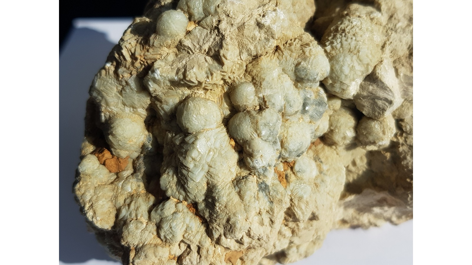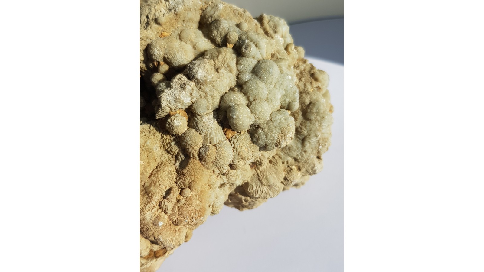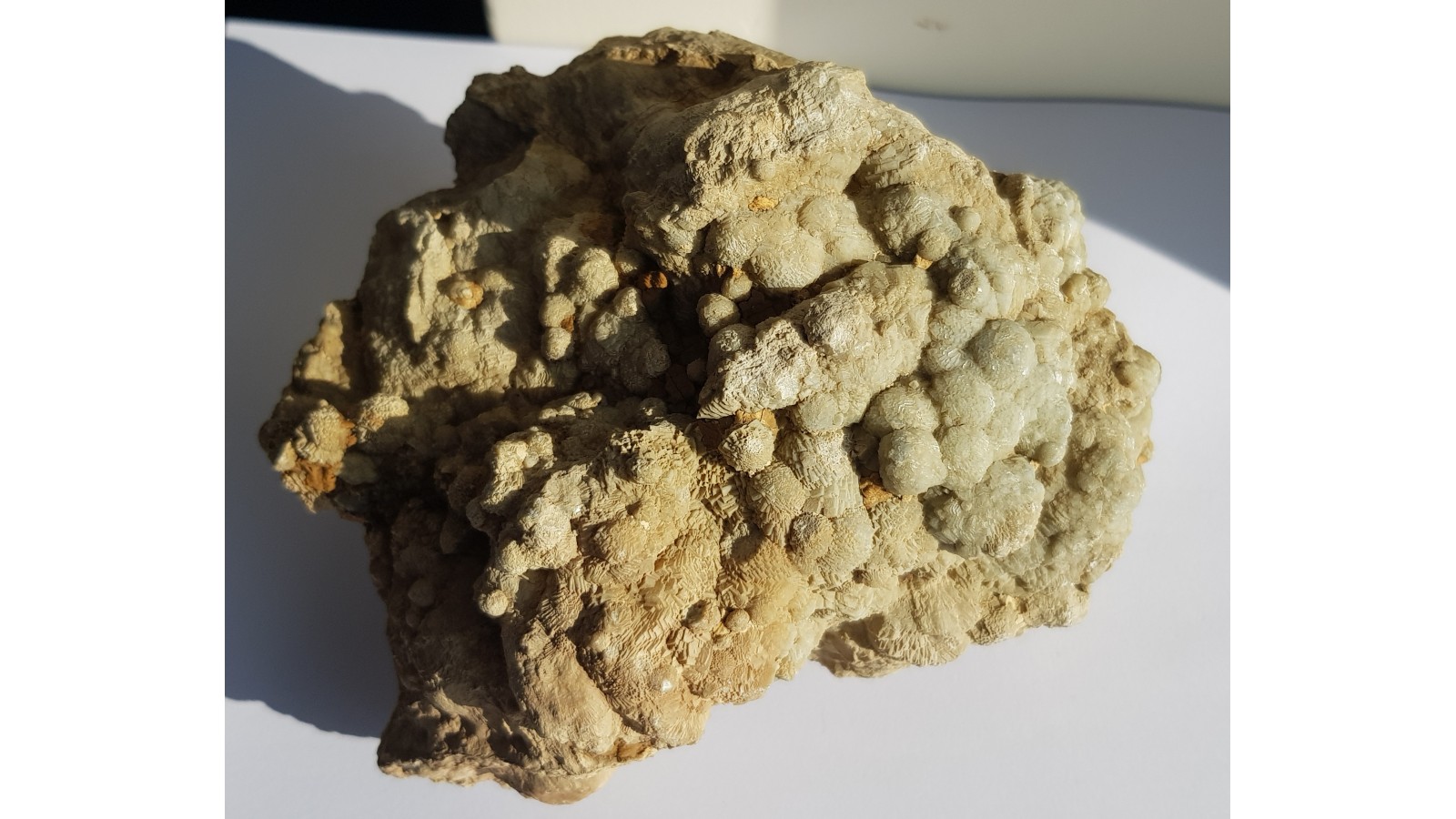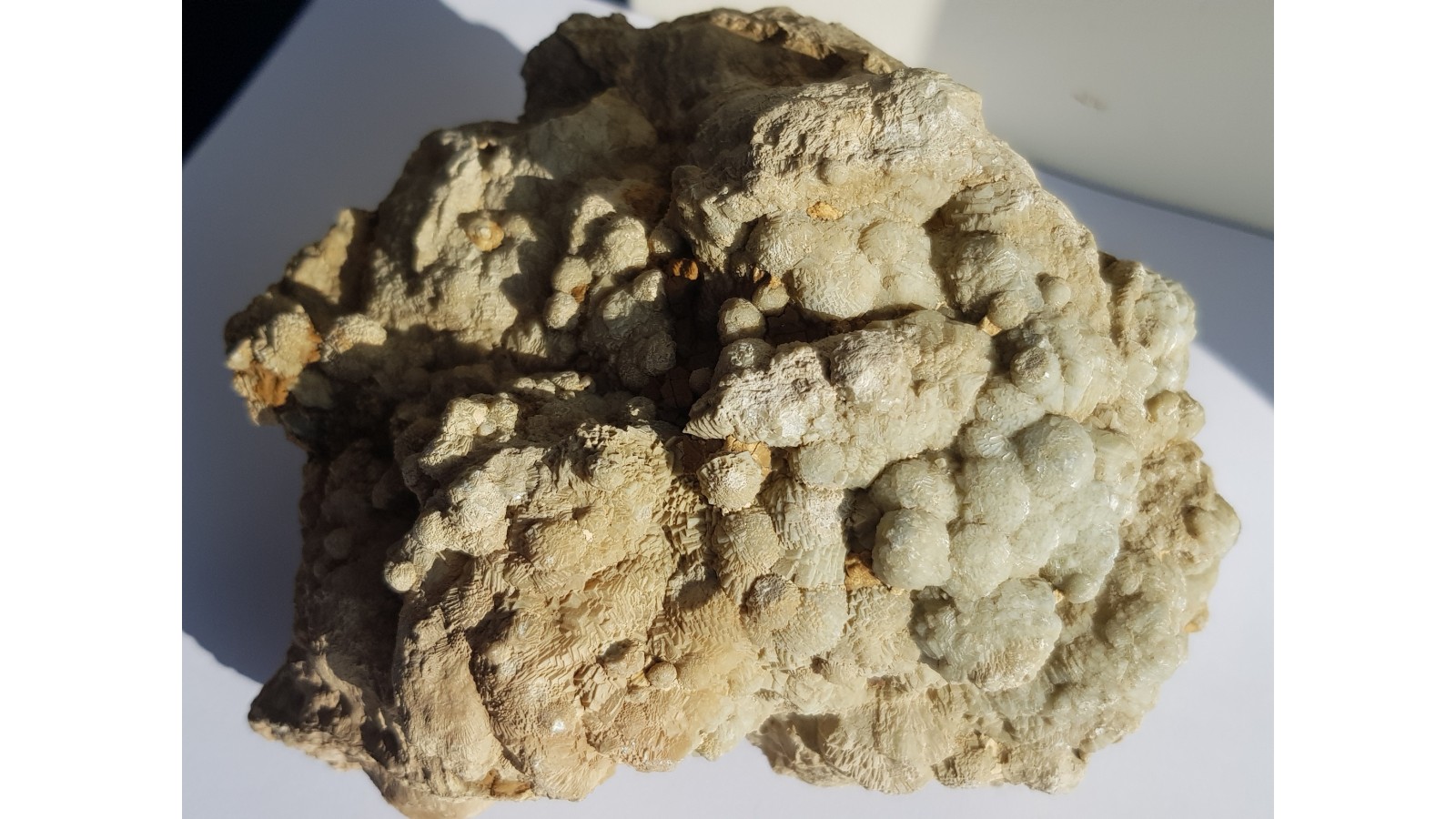 Wyjątkowy okaz aragonitu-kalcytu z Grochowej k. Ząbkowic Śląskich. Skupienia nerkowate, groniaste składające się z czytelnych kryształów. Spektakularny okaz. Lekkie zabarwienie zielonkawe. Wyjątkowo dekoracyjna forma. Polecam.