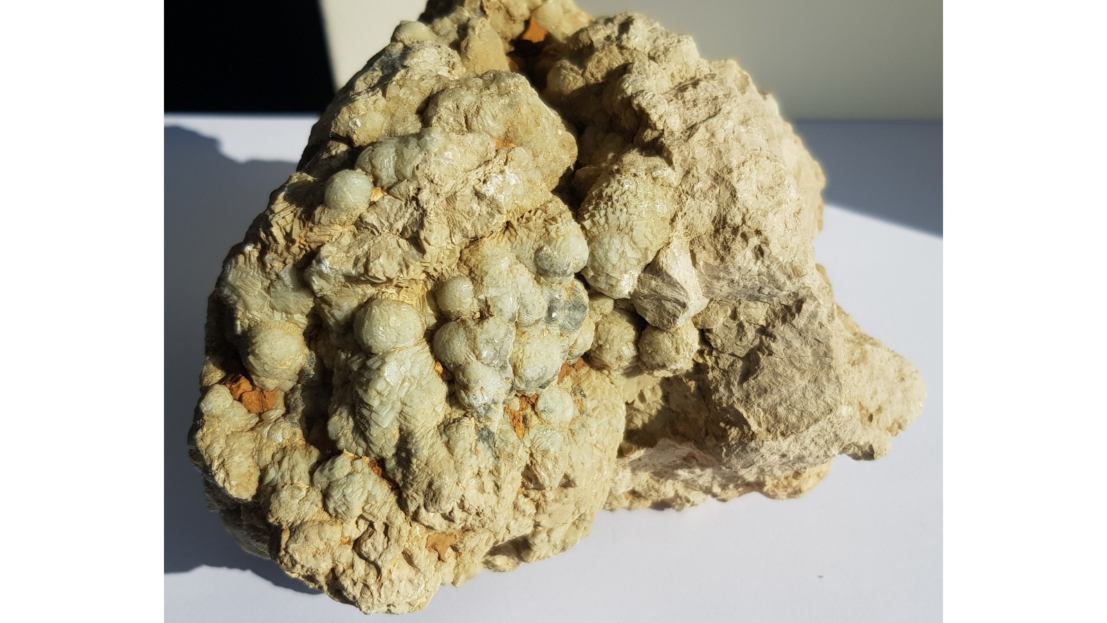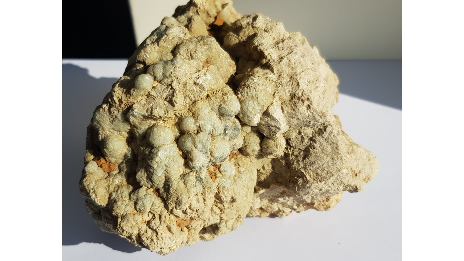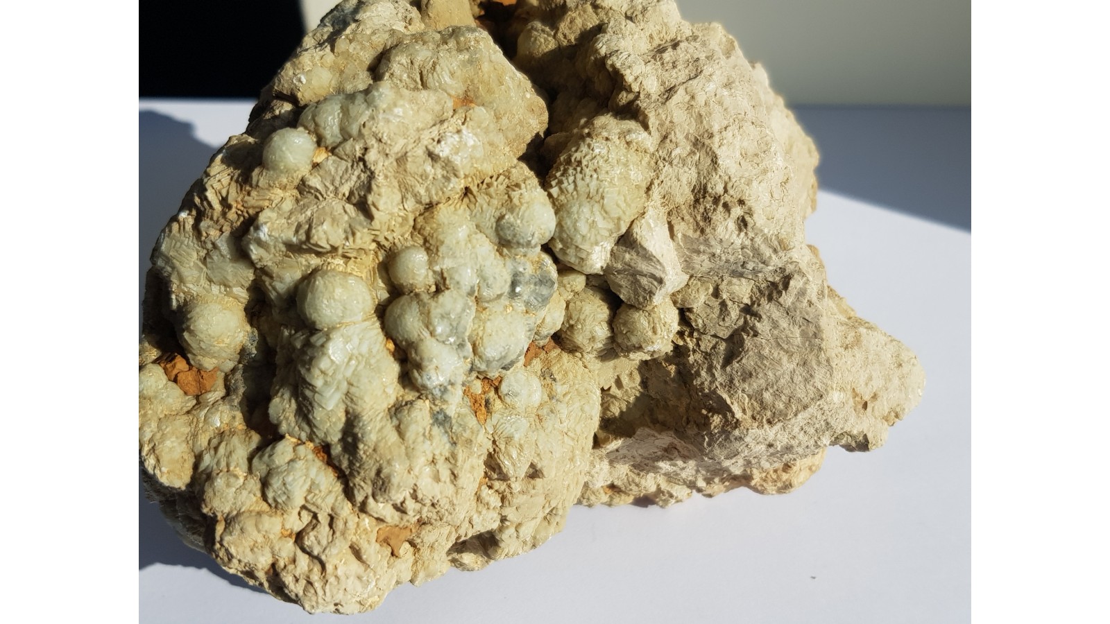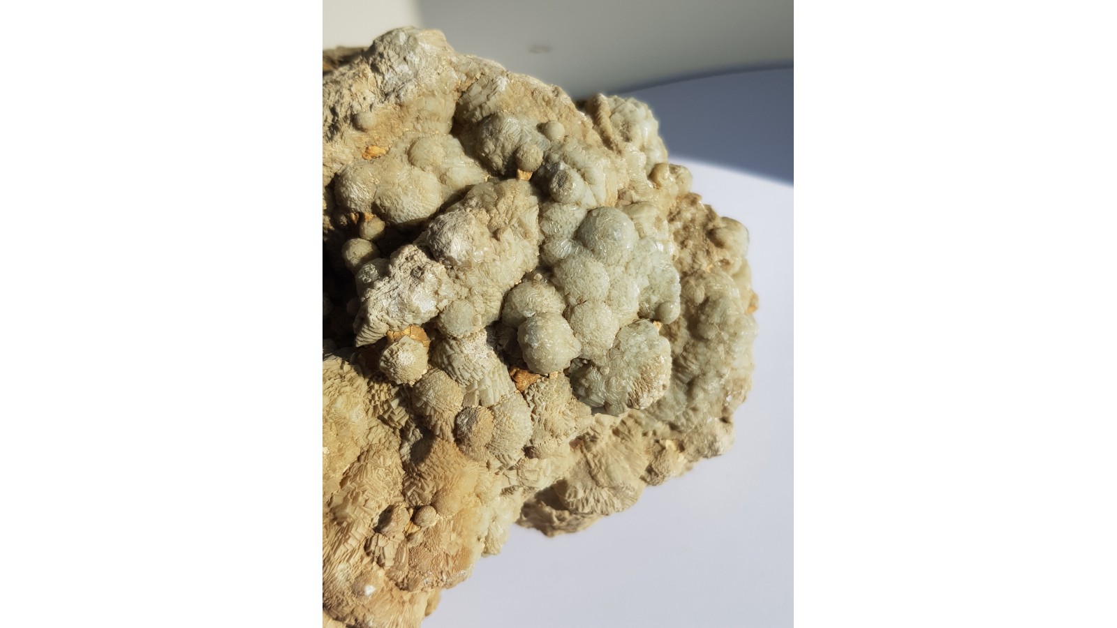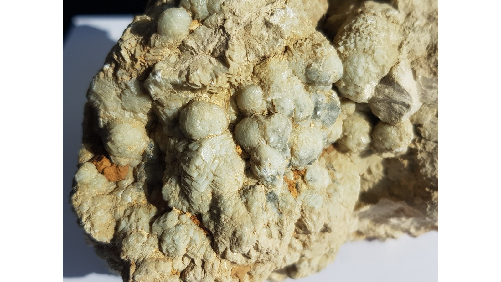 Wyjątkowy okaz aragonitu-kalcytu z Grochowej k. Ząbkowic Śląskich. Skupienia nerkowate, groniaste składające się z czytelnych kryształów. Spektakularny okaz. Lekkie zabarwienie zielonkawe. Wyjątkowo dekoracyjna forma. Polecam.