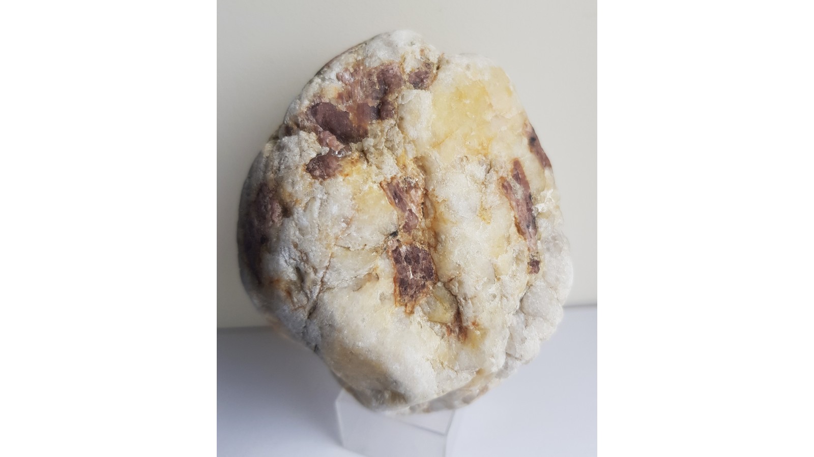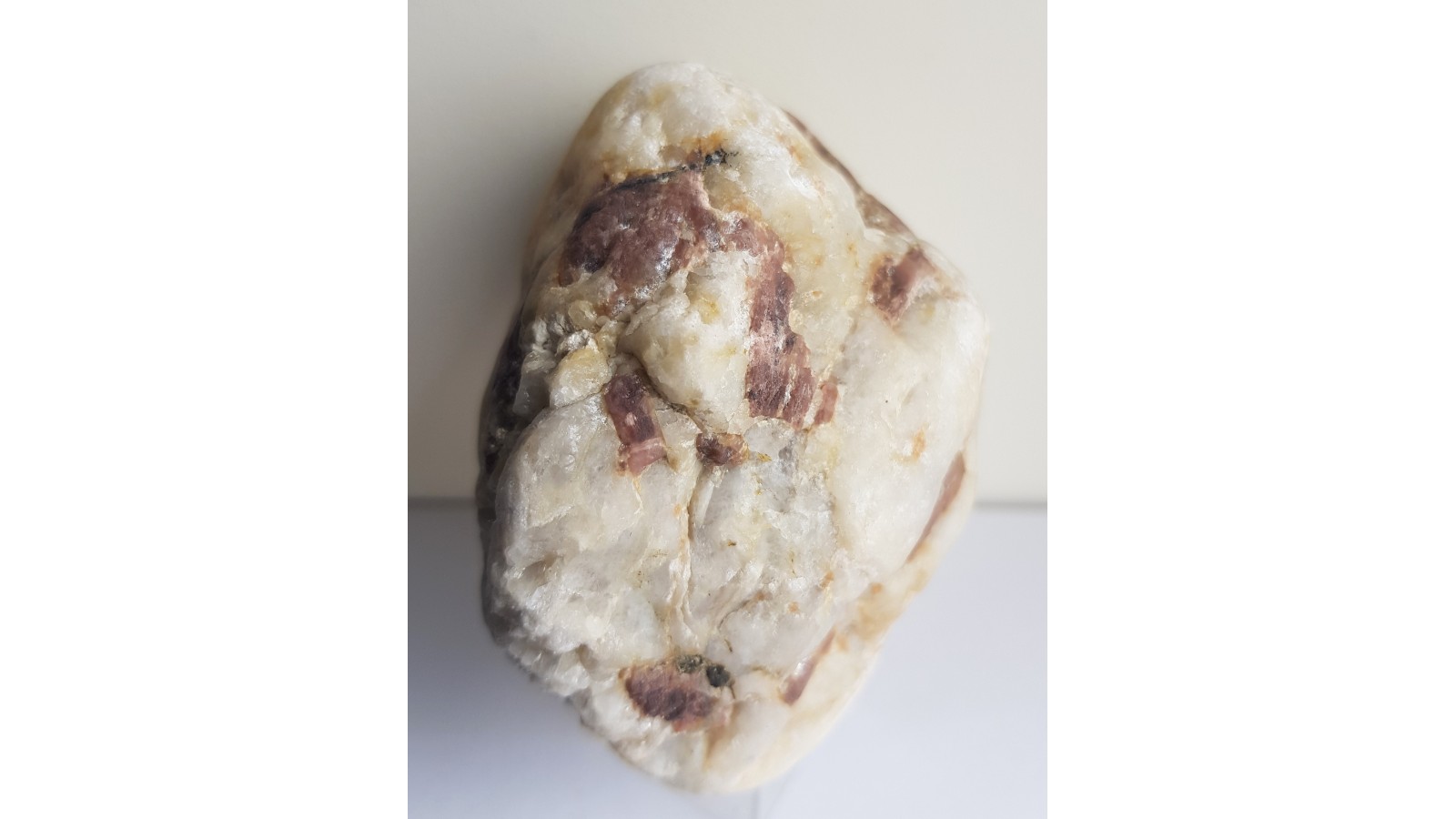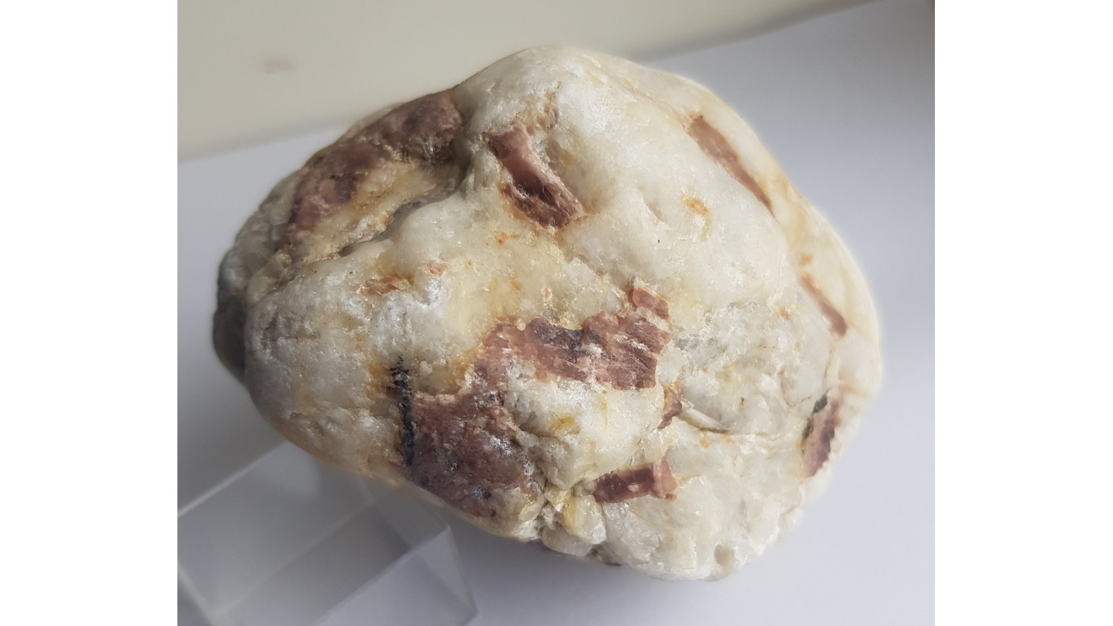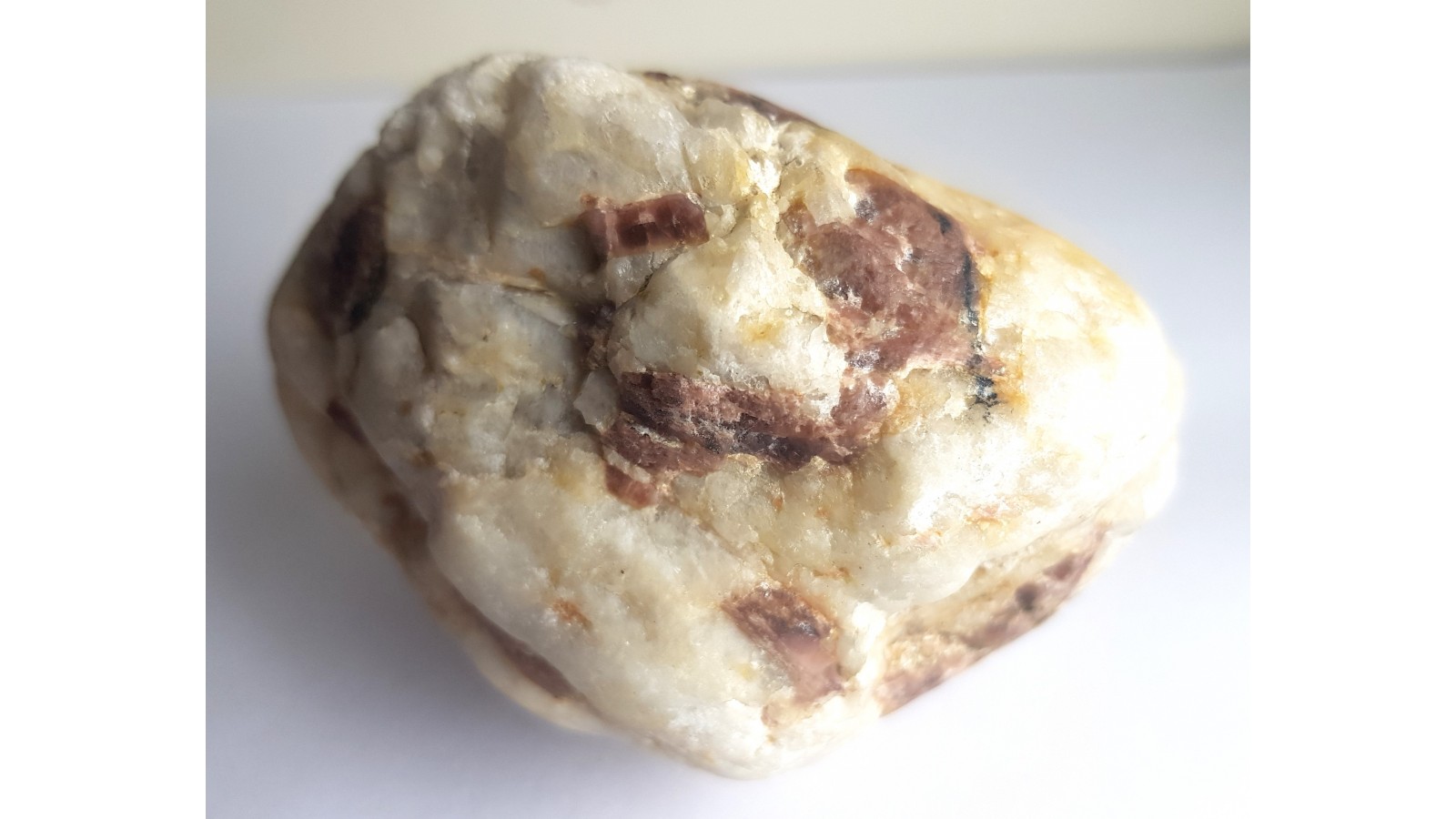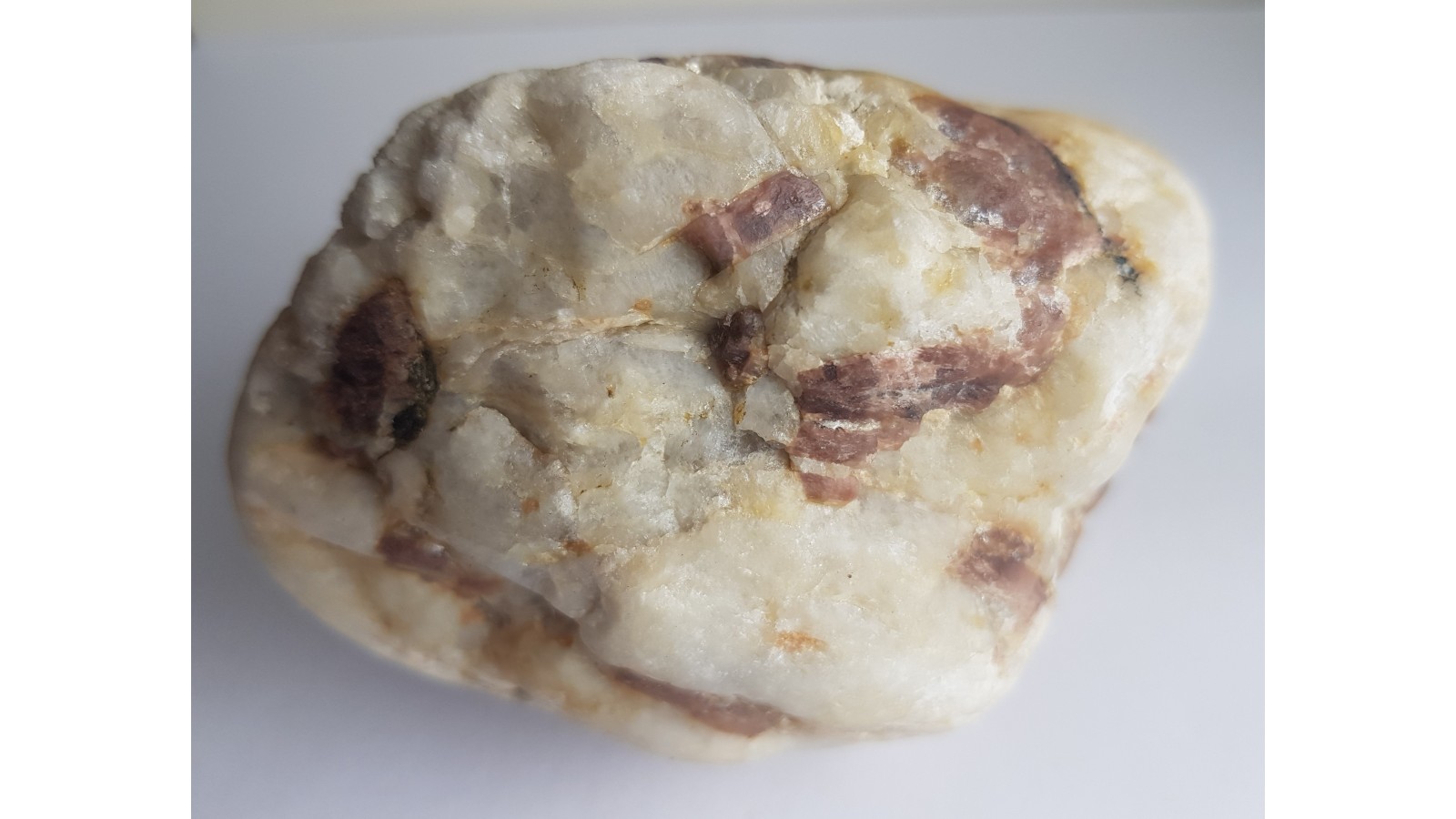 Pink andalusite crystals in white quartz pebble from East Sudetes (Poland)
