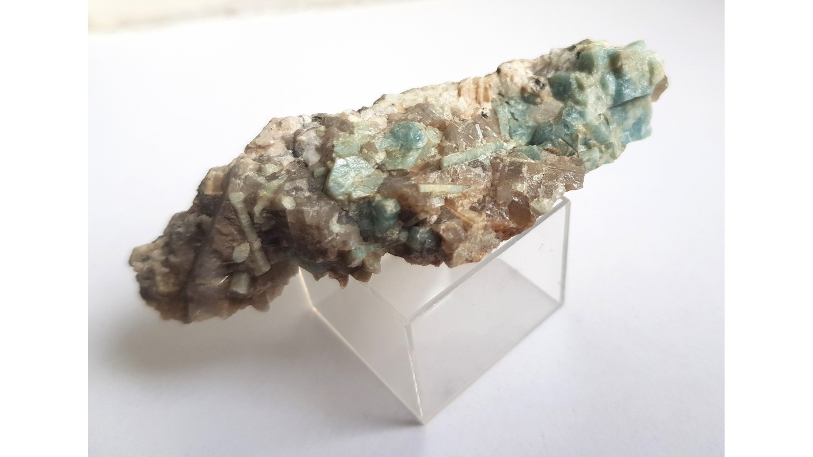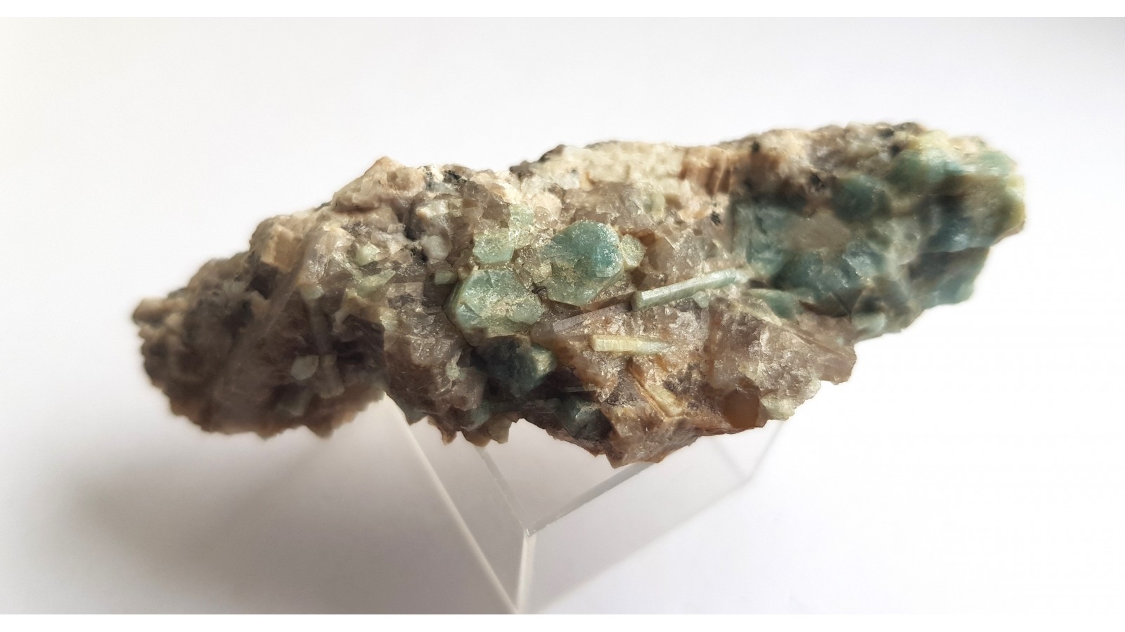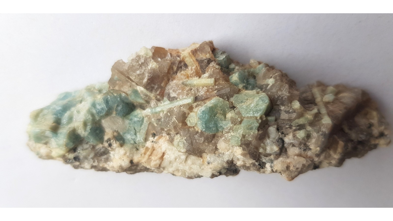 Kryształy akwamarynu w pegmatycie z okolic Szklarskiej Poręby. Raczej niewielki okaz, ale estetyczny, do kolekcji ok. Rzadkość mineralogiczna, okazy rzadko oferowane na rynku. Lokalizacja wyeksploatowana. Polecam.