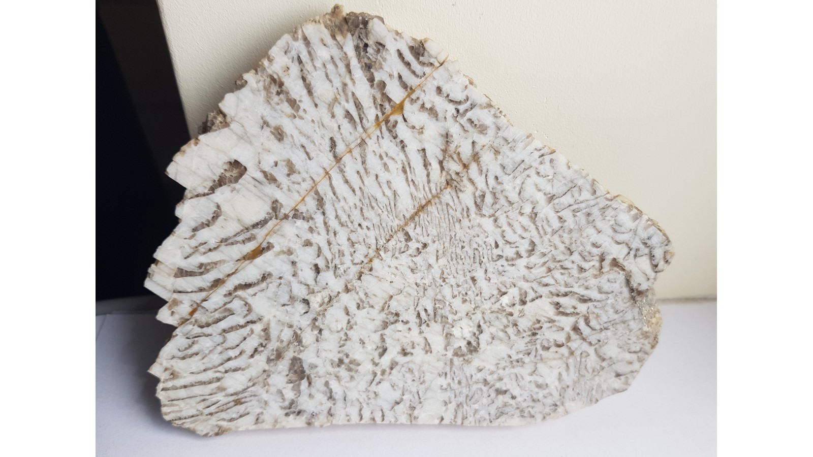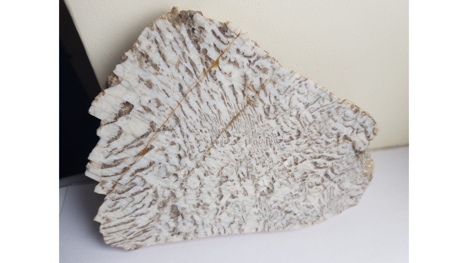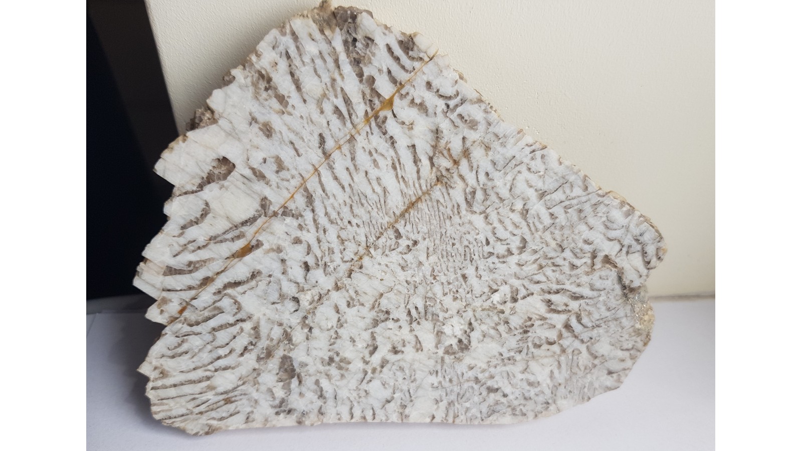 Polerowany jednostronnie, wyrazisty okaz kamienia hebrajskiego (granitu napisowego) z Piławy Grn. w bloku sowiogórskim. Piękny okaz do kolekcji kamieni ozdobnych Sudetów. Polecam.
