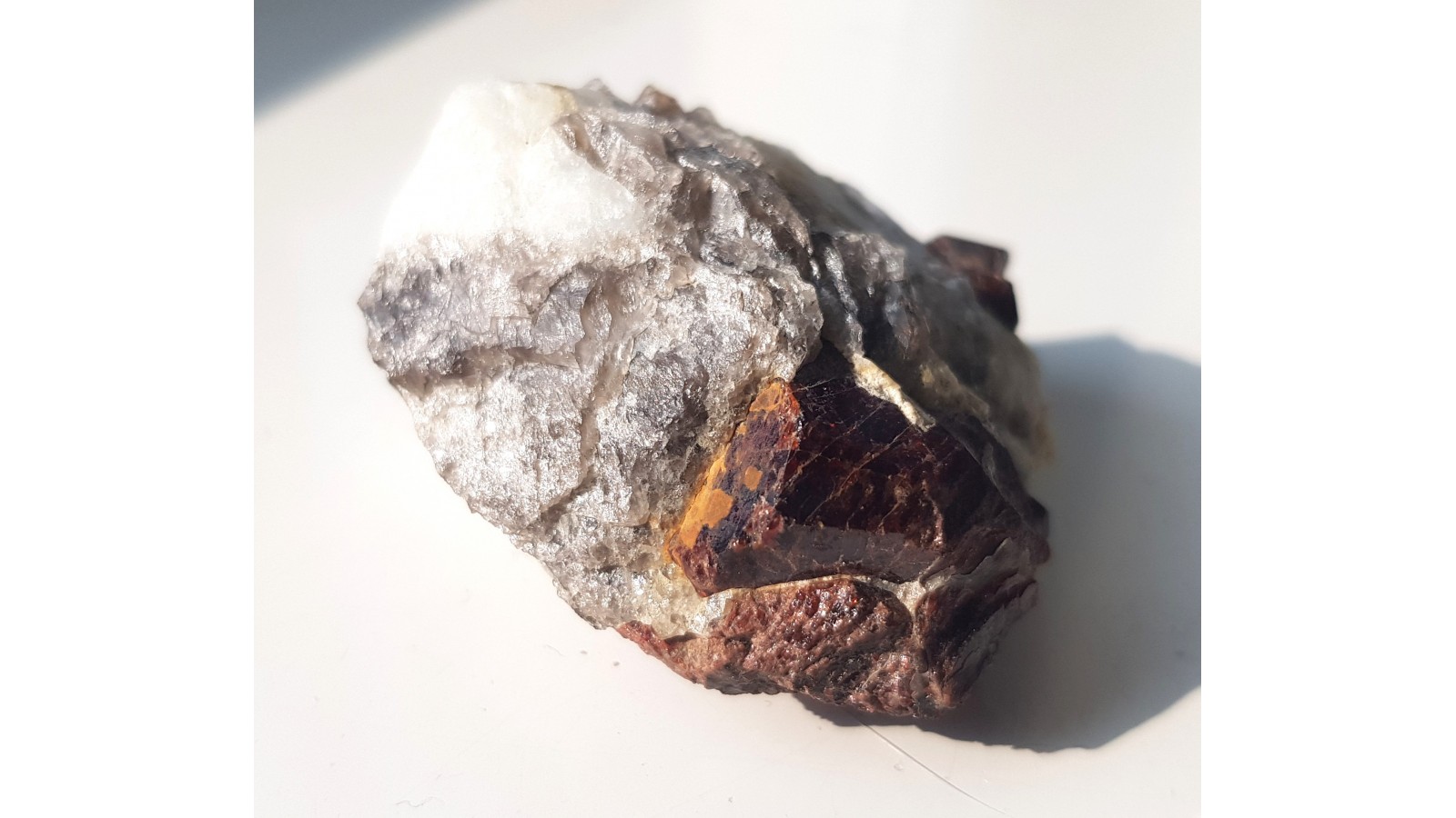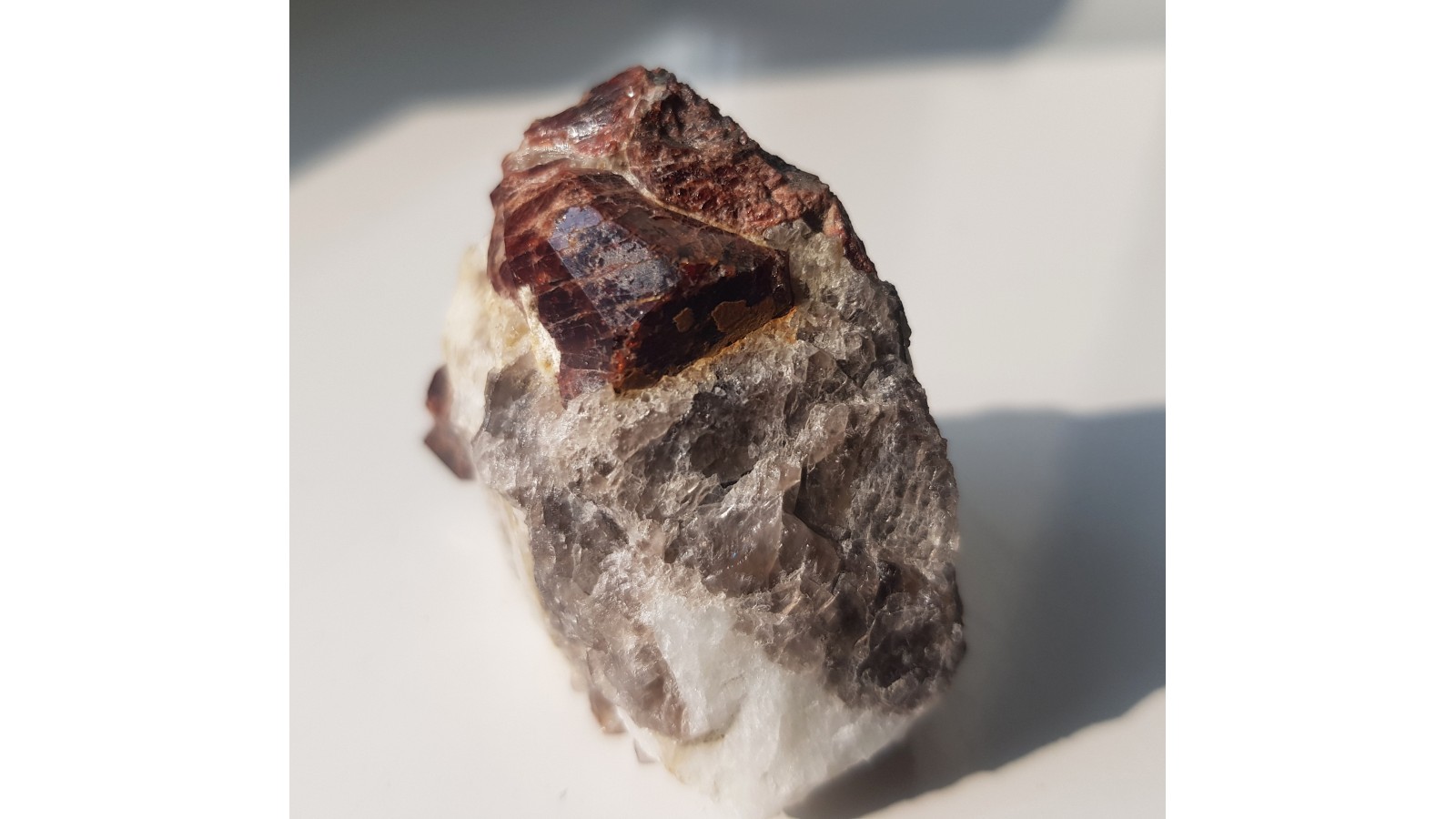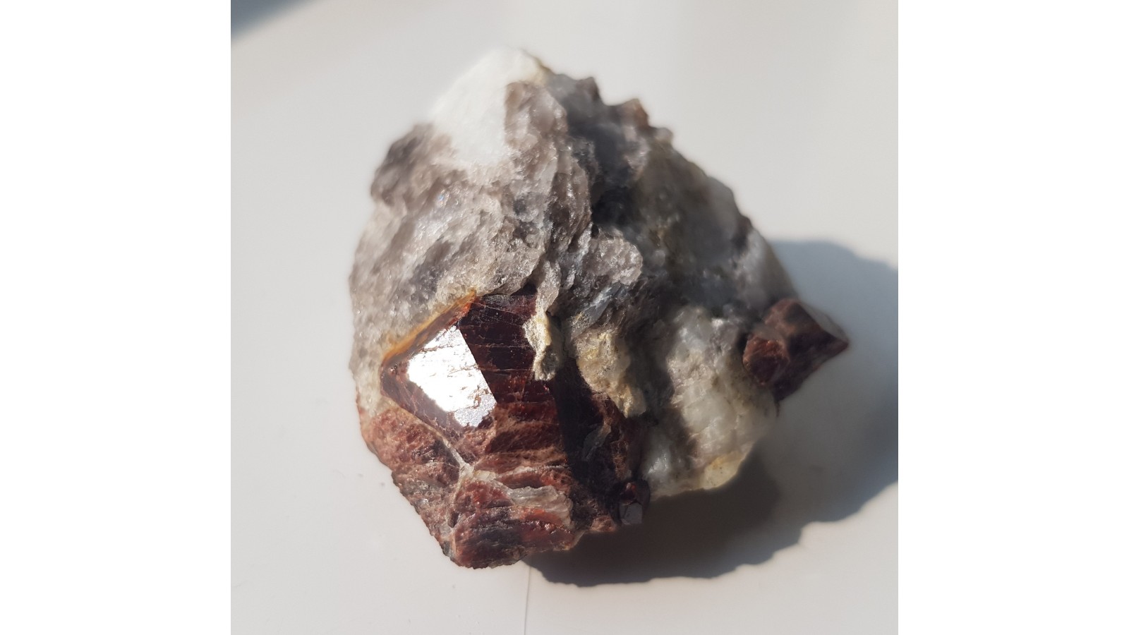 Duży kryształ granatu, pięknie wykształcony, błyszczące ściany, widać czerwoną barwę w pegmatycie z Piławy Grn. Nadaje się do kolekcji. Polecam.