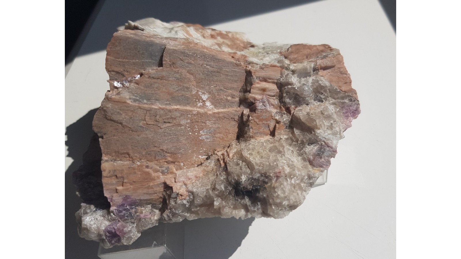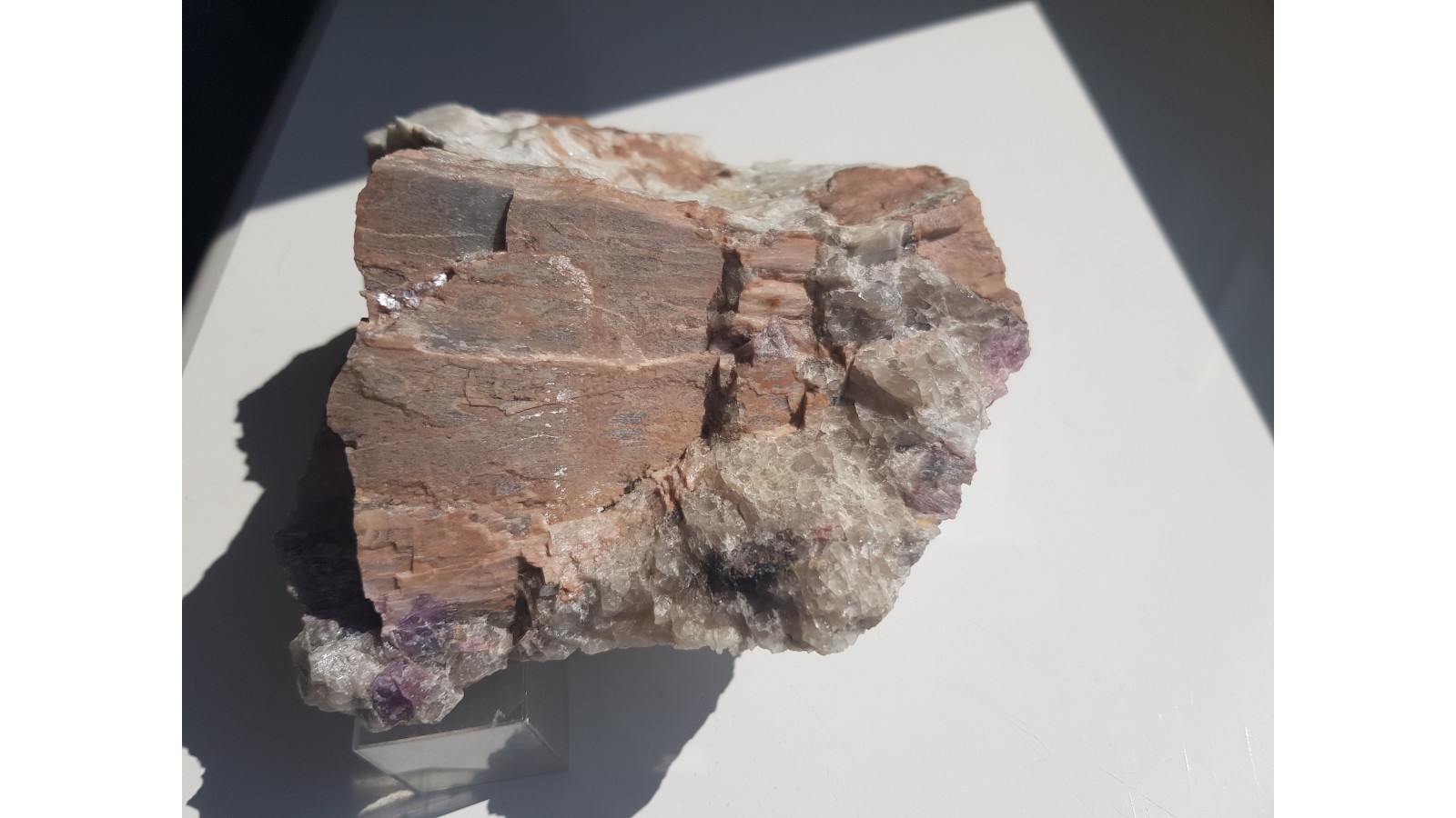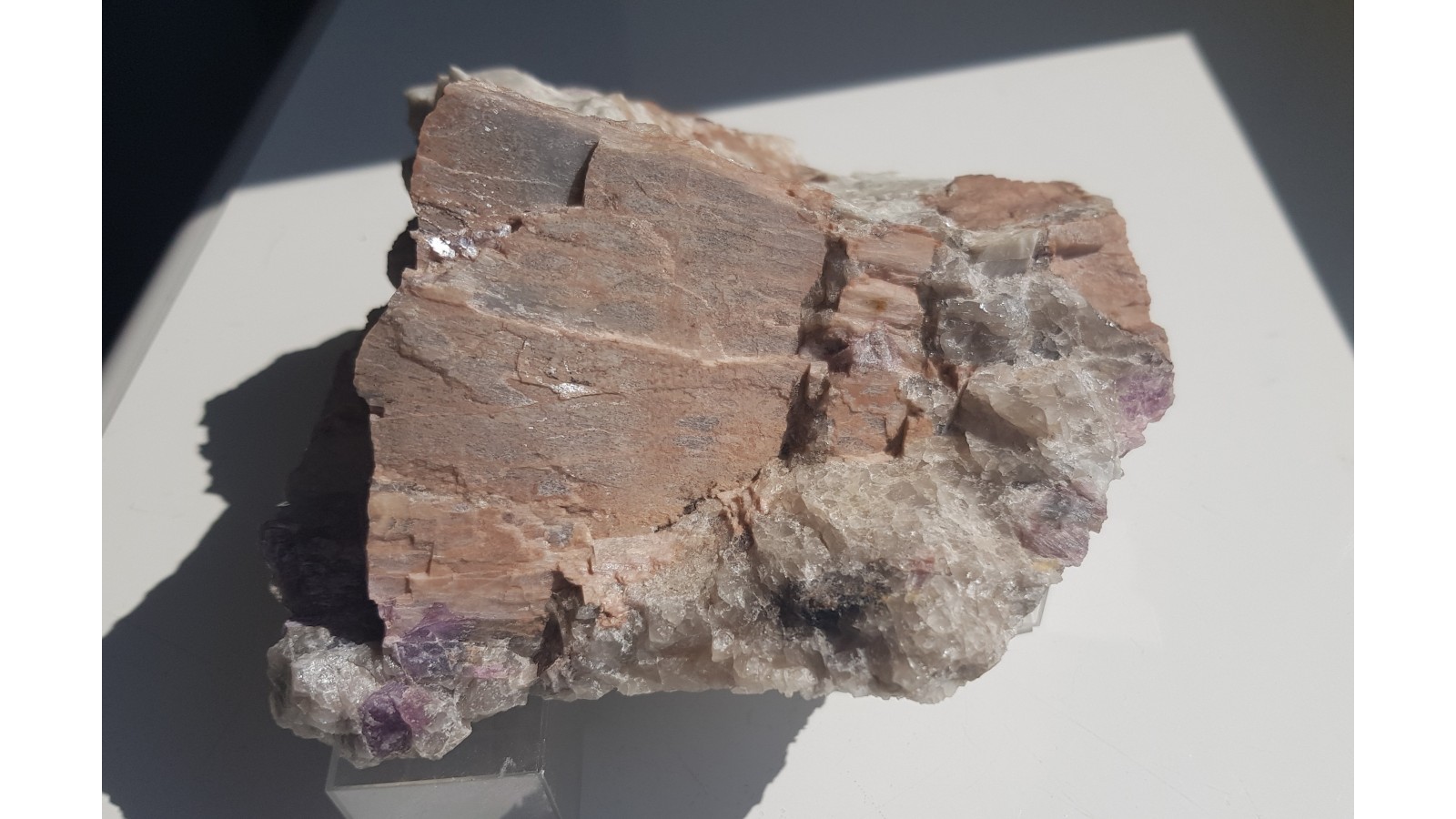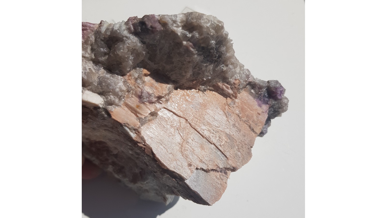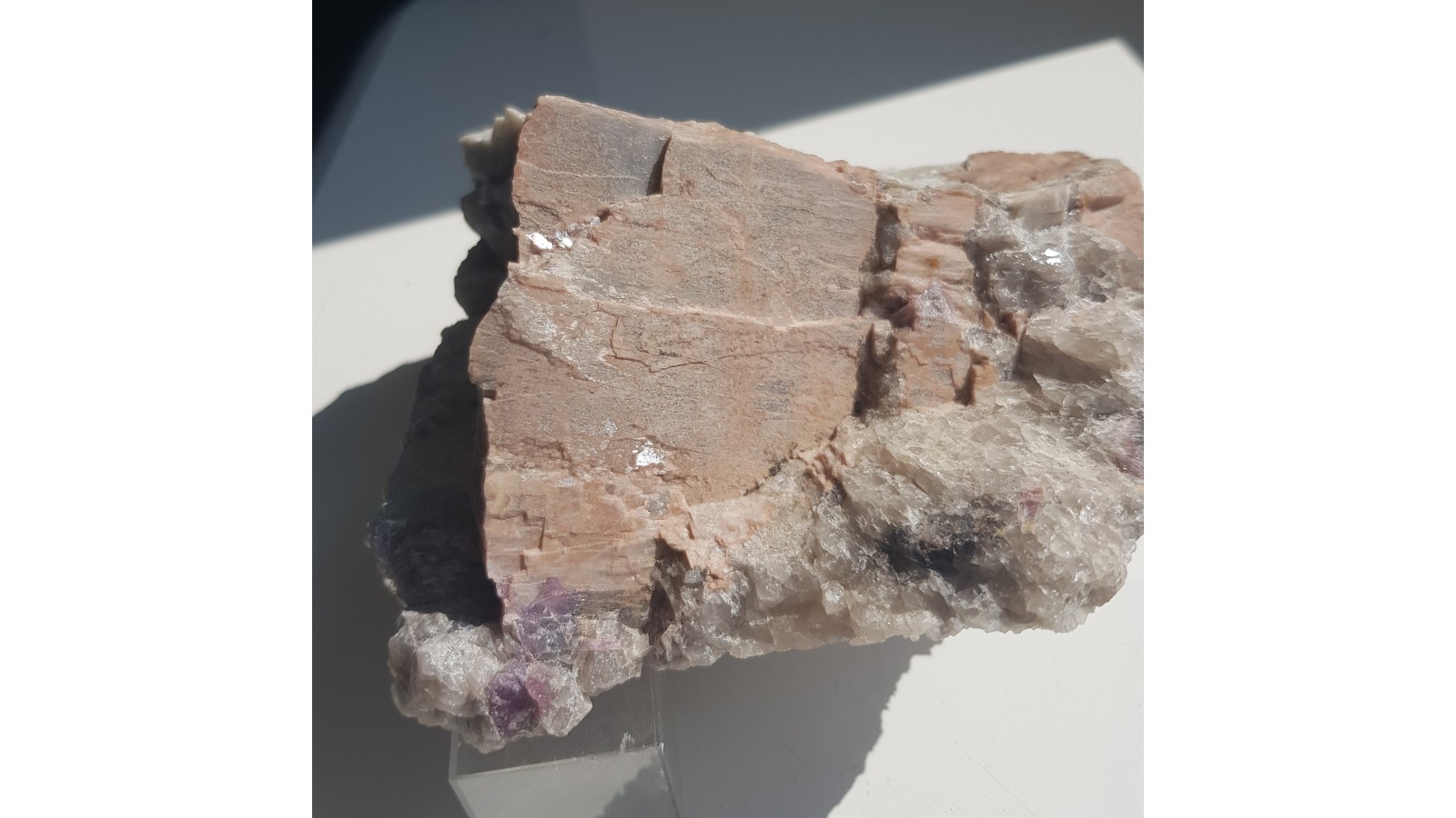 Wyjątkowy, wielki kryształ spodumenu z pegmatytu litowego z Piławy Górnej w bloku sowiogórskim. Na jednej ze ścian perłowy połysk. Spodumen tworzył centralną część pegmatytu "Julianna" w kamieniołomie migmatytów. Obecnie już niedostępny. Unikat. Polecam.