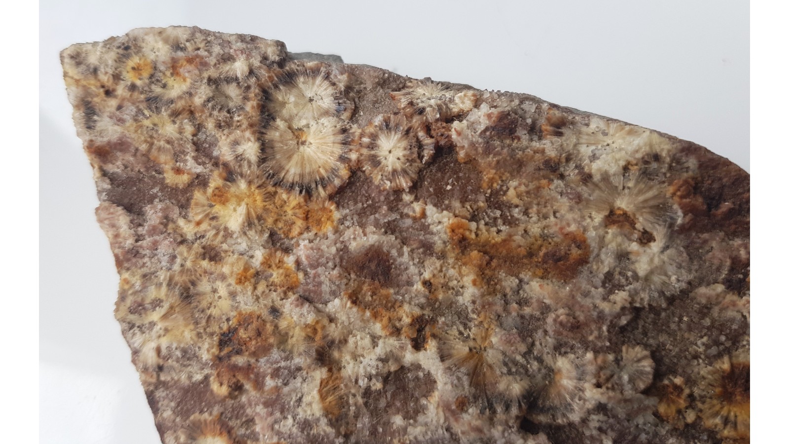 Okaz bardzo ładnie wybarwionego wavellitu. Duże skupienia brązowych kryształów na kambryjskim kwarcycie. Polecam.