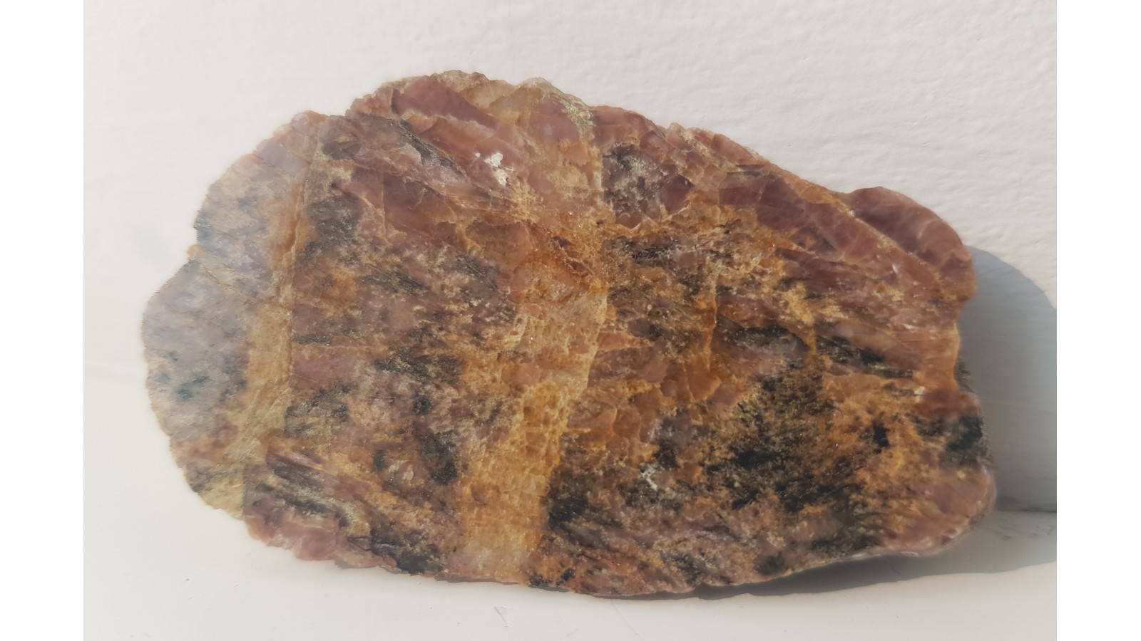 Polerowany okaz andaluzytu z Głuchołaz. Wyrazista różowa barwa andaluzytu. Nieopisywane dotąd okazy z polskich Sudetów Wschodnich. Połówka niewielkiego otoczaka, strona przeciwna naturalna. Polecam.