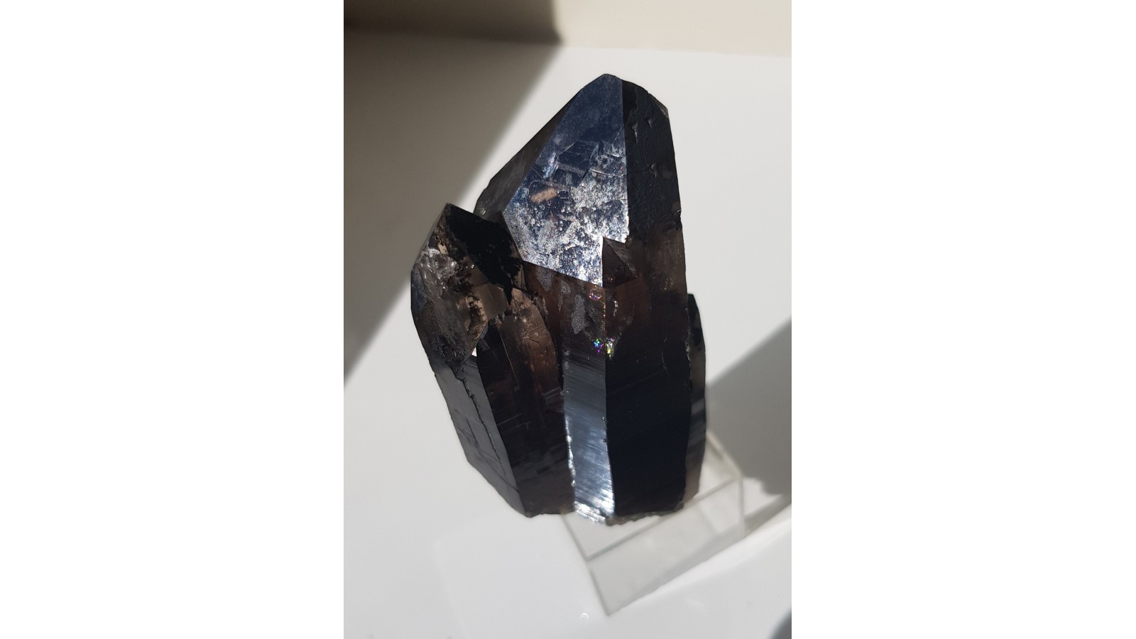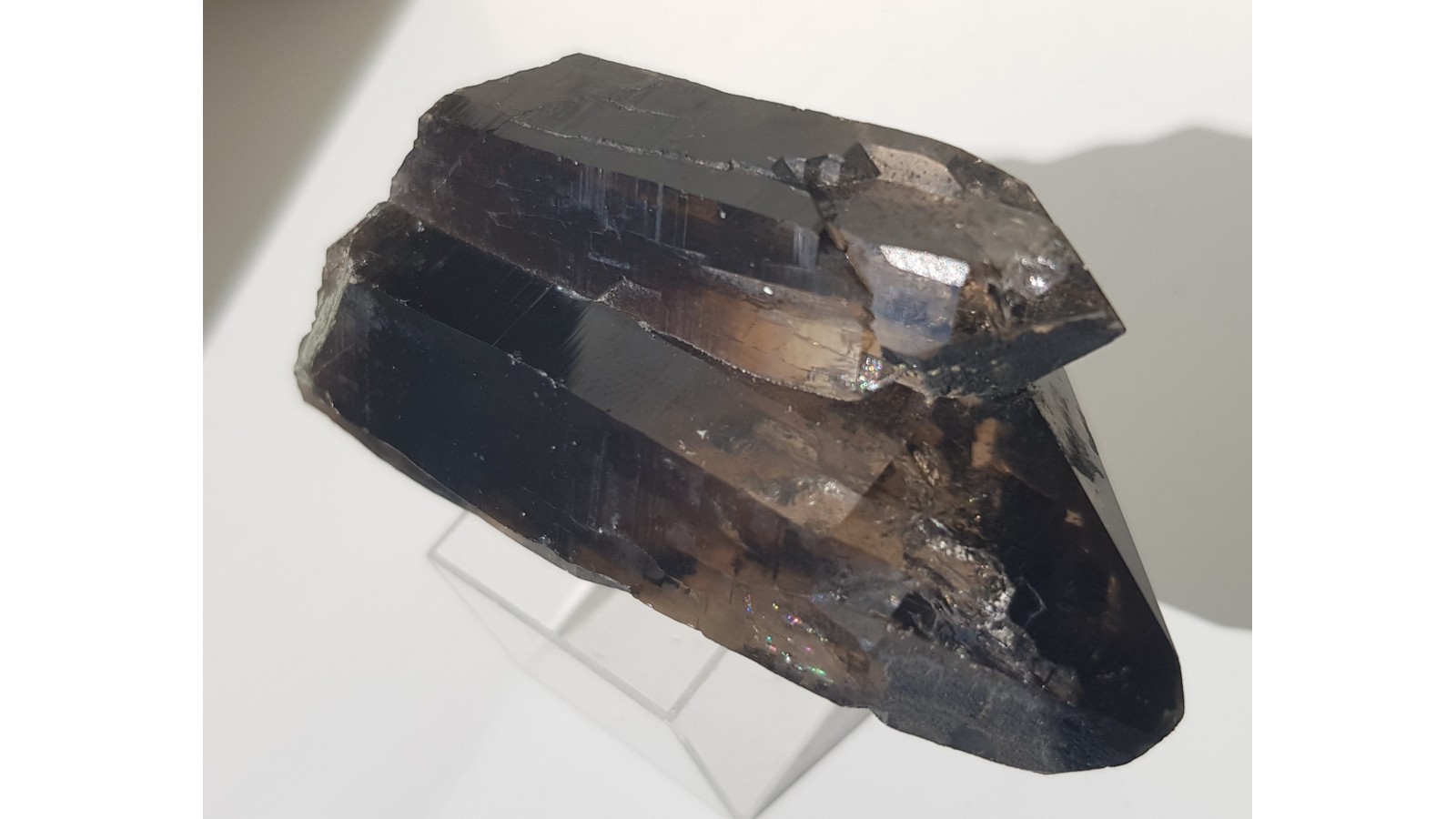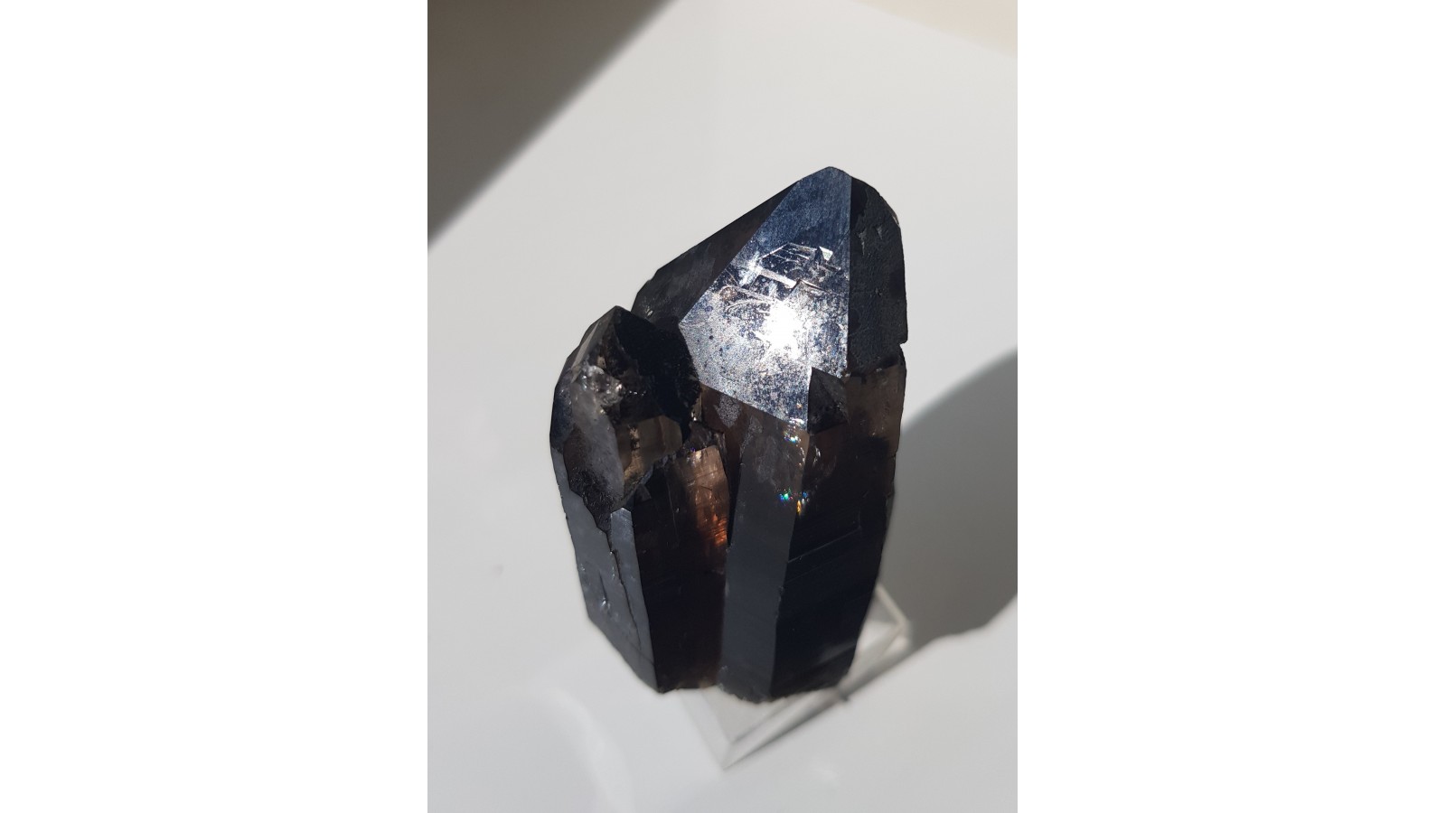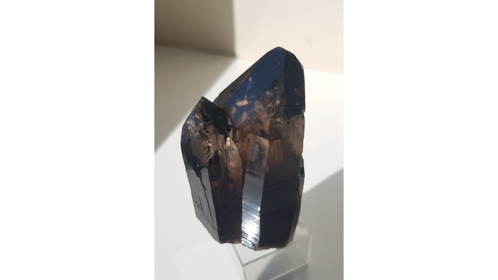 Nieuszkodzony, bardzo estetyczny zrost dwóch kwarców dymnych ze Strzegomia. Doskonała przezroczystość i bardzo ładna brązowa barwa. Polecam.