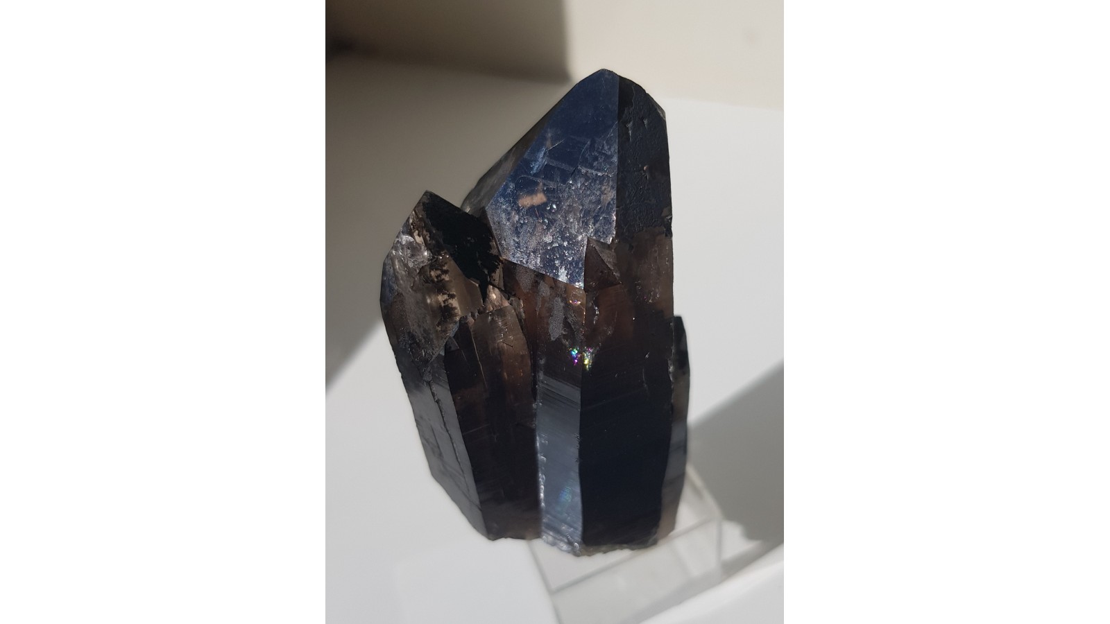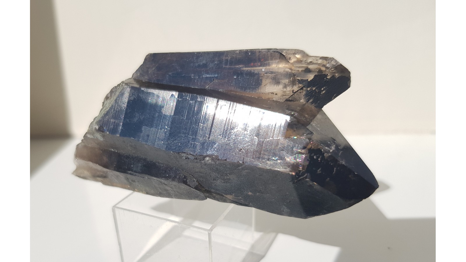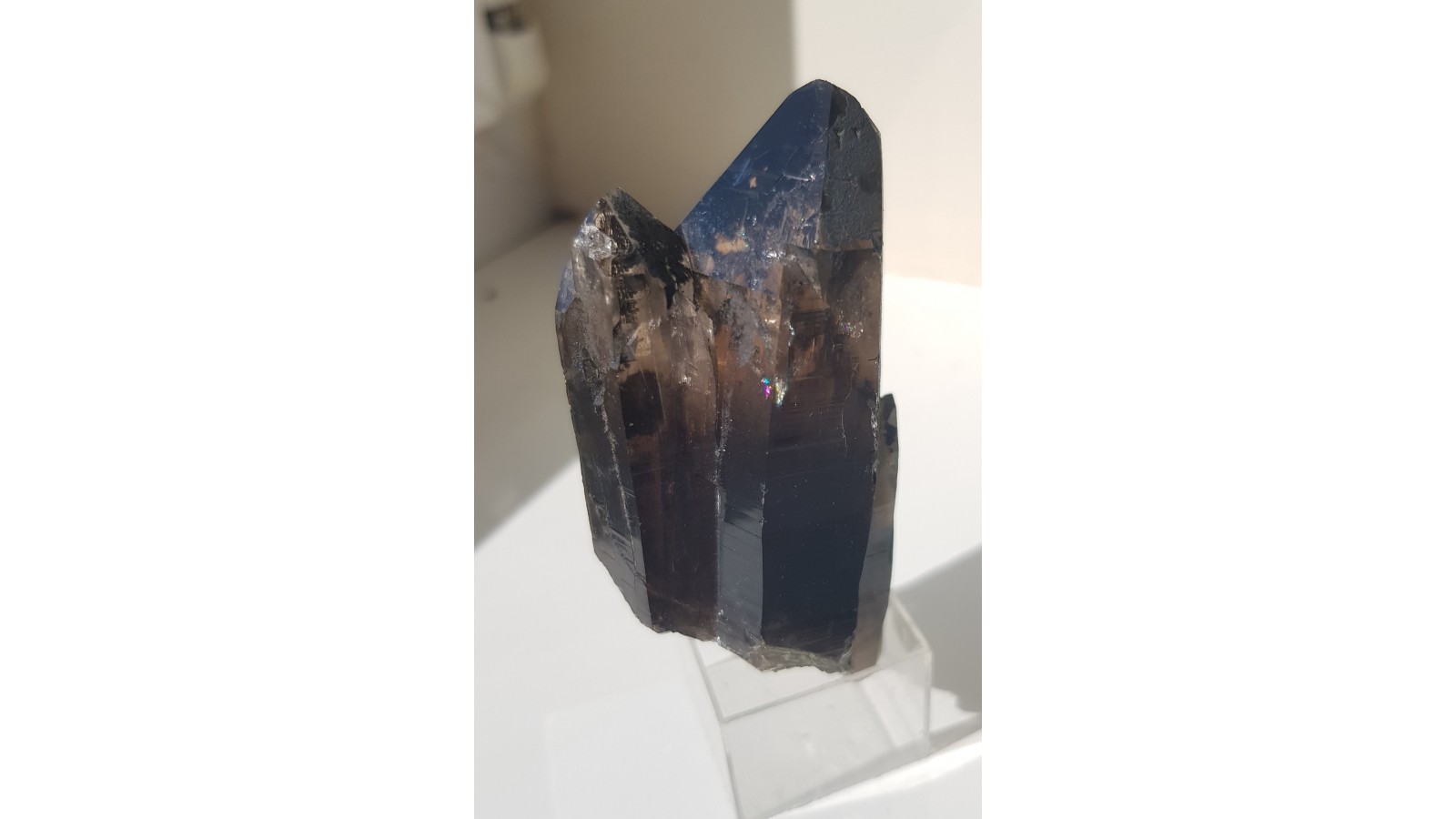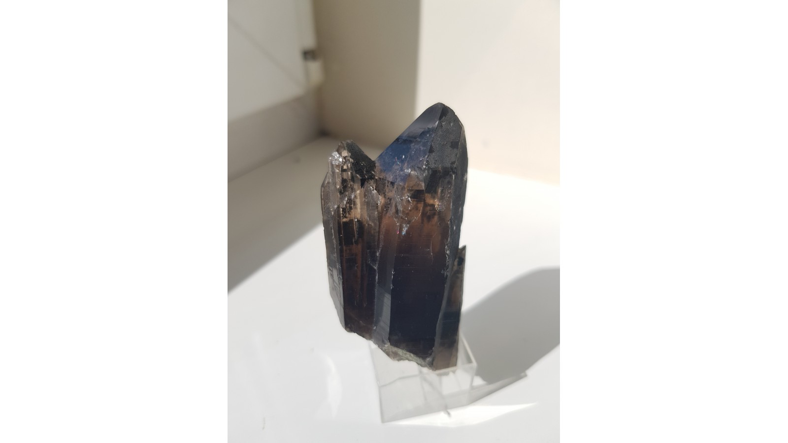 Nieuszkodzony, bardzo estetyczny zrost dwóch kwarców dymnych ze Strzegomia. Doskonała przezroczystość i bardzo ładna brązowa barwa. Polecam.