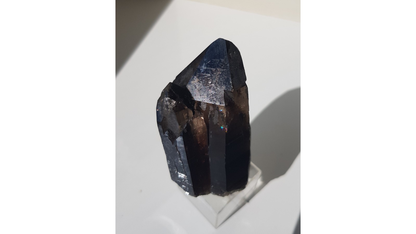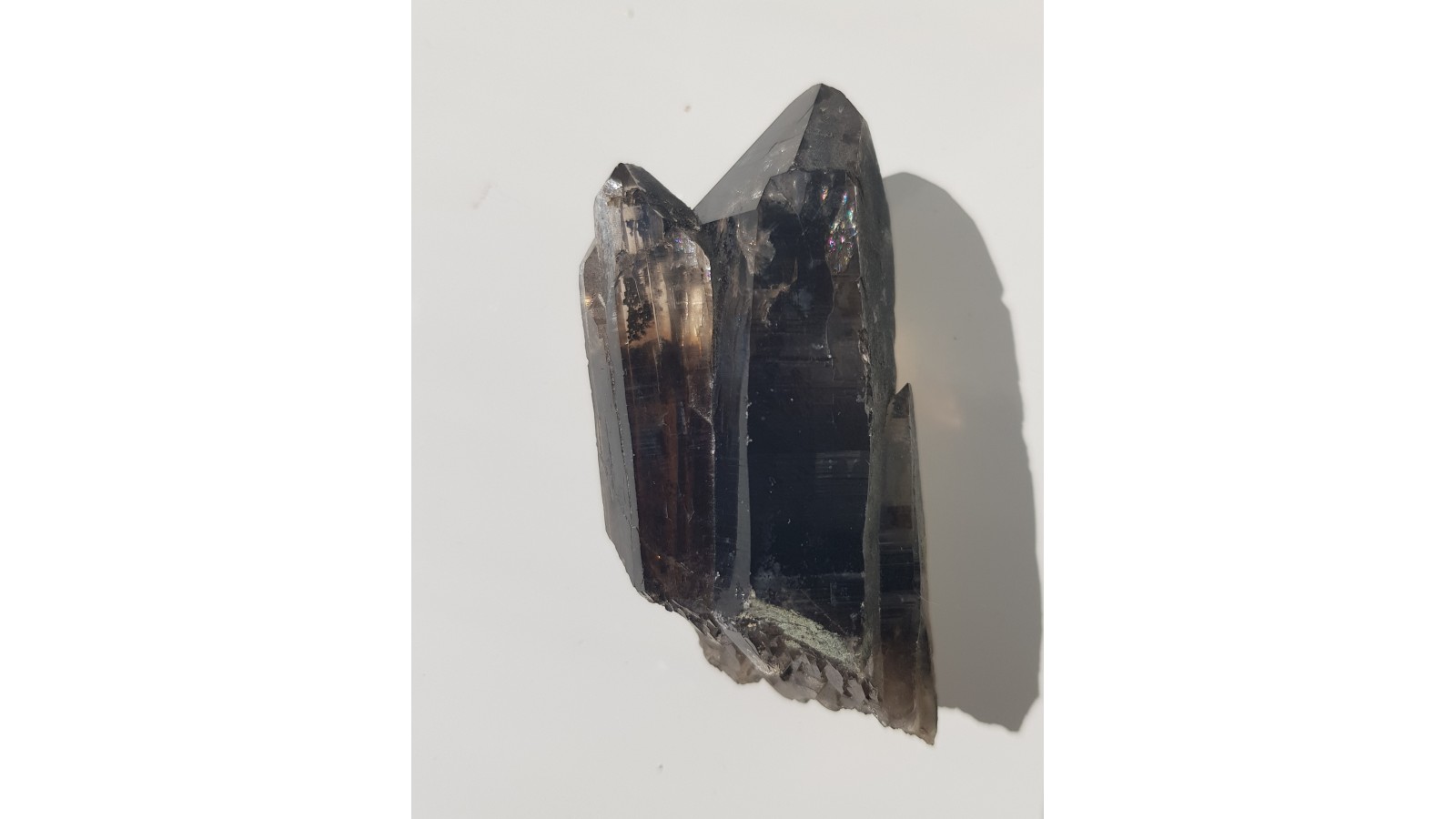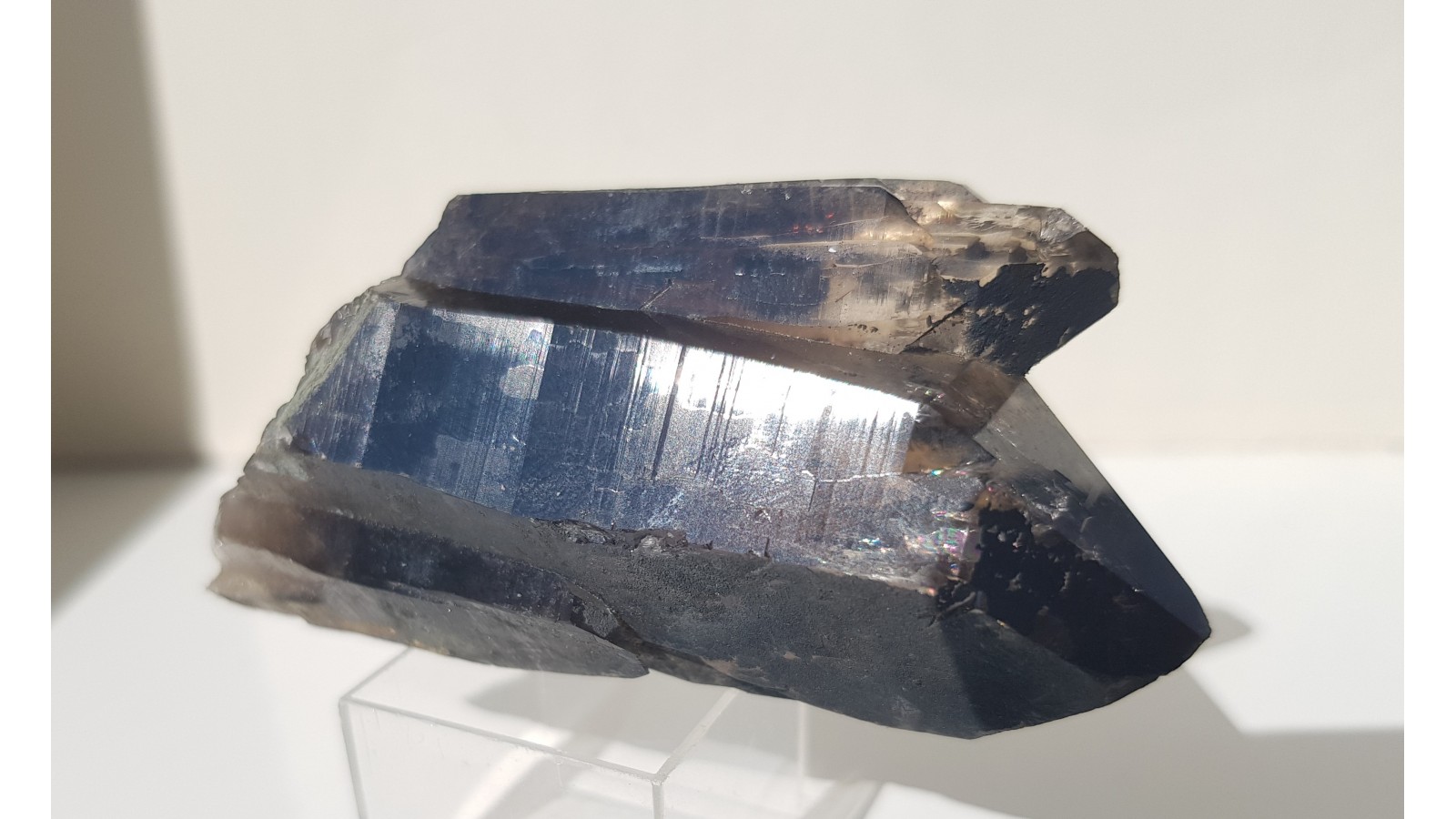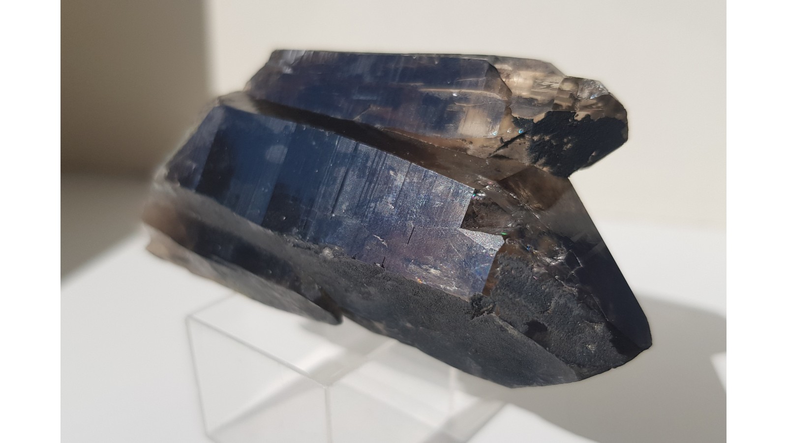Nieuszkodzony, bardzo estetyczny zrost dwóch kwarców dymnych ze Strzegomia. Doskonała przezroczystość i bardzo ładna brązowa barwa. Polecam.