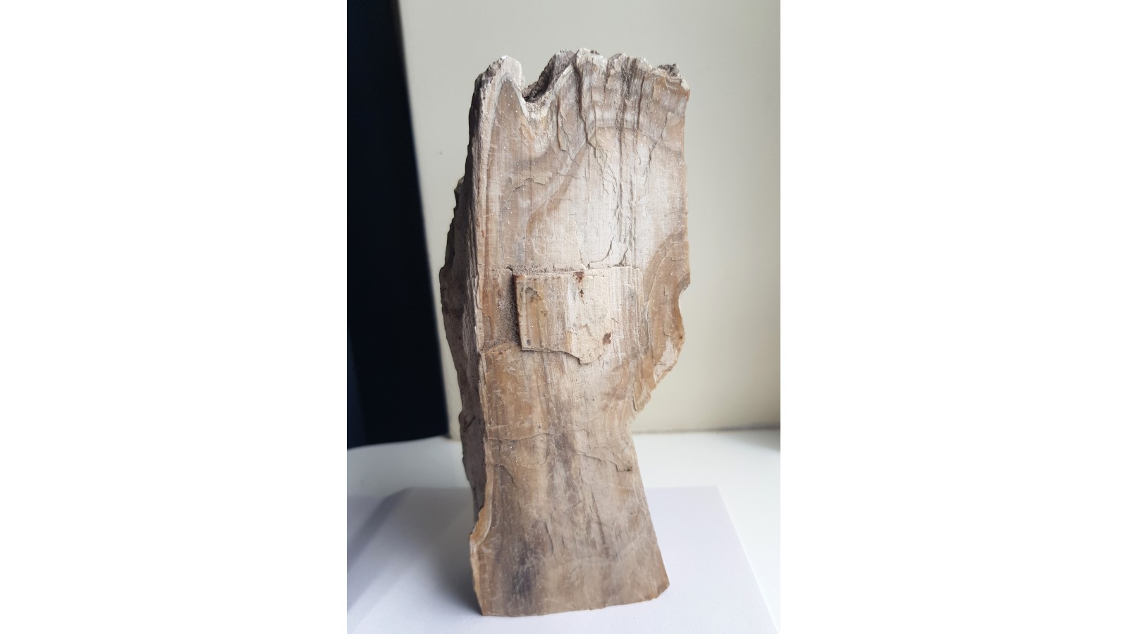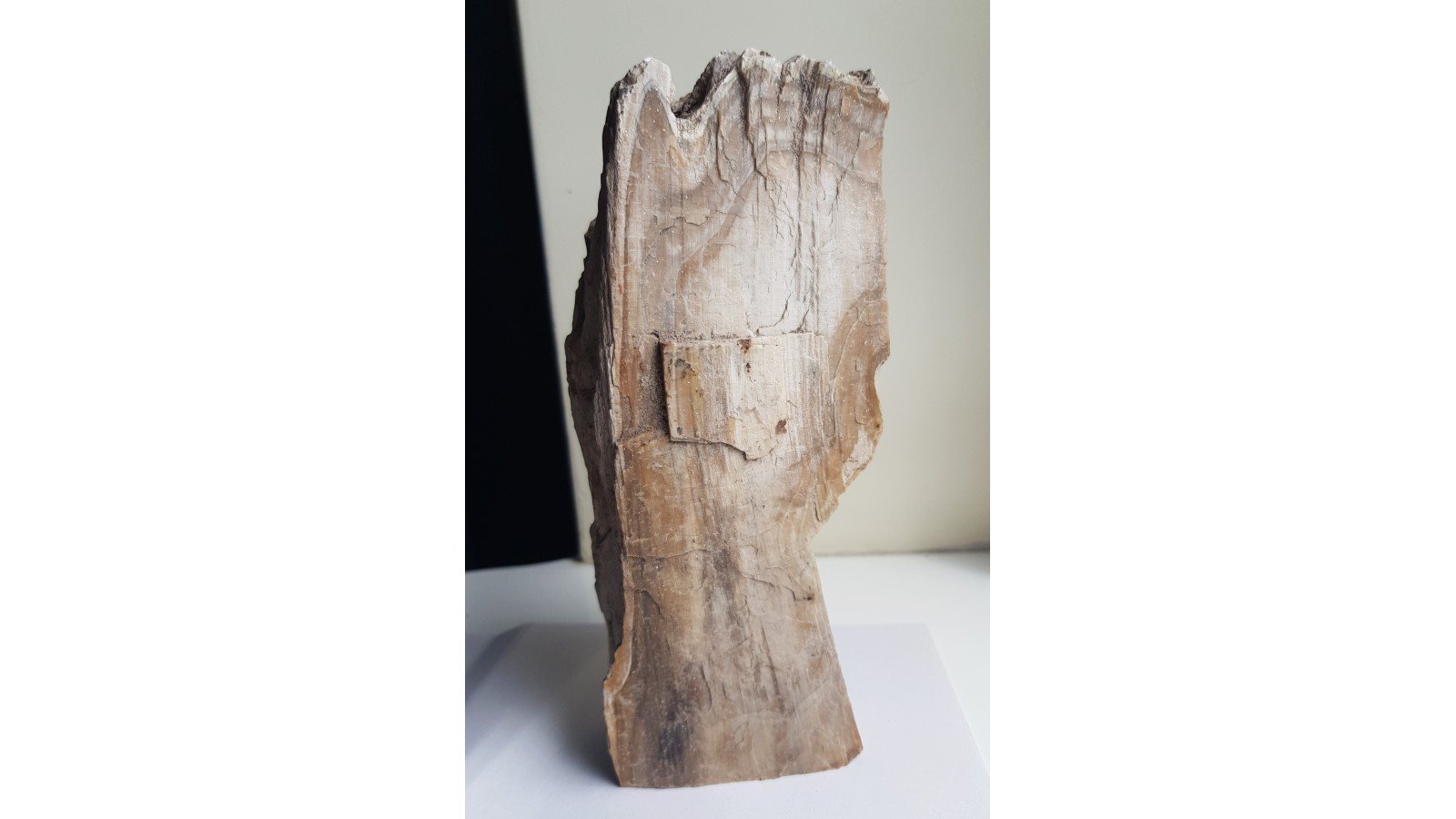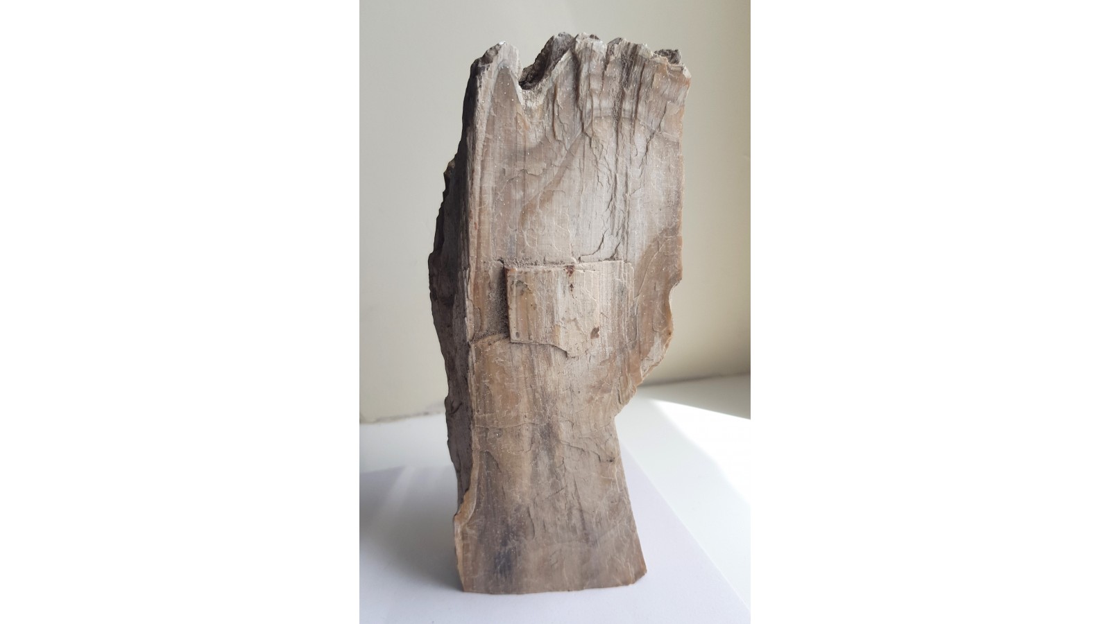 Okaz mioceńskiego drewna skrzemieniałego z Roztocza. Podstawa docięta dla lepszej ekspozycji. Ładny, kontrastowy okaz. Naturalnie wygładzony. Polecam.