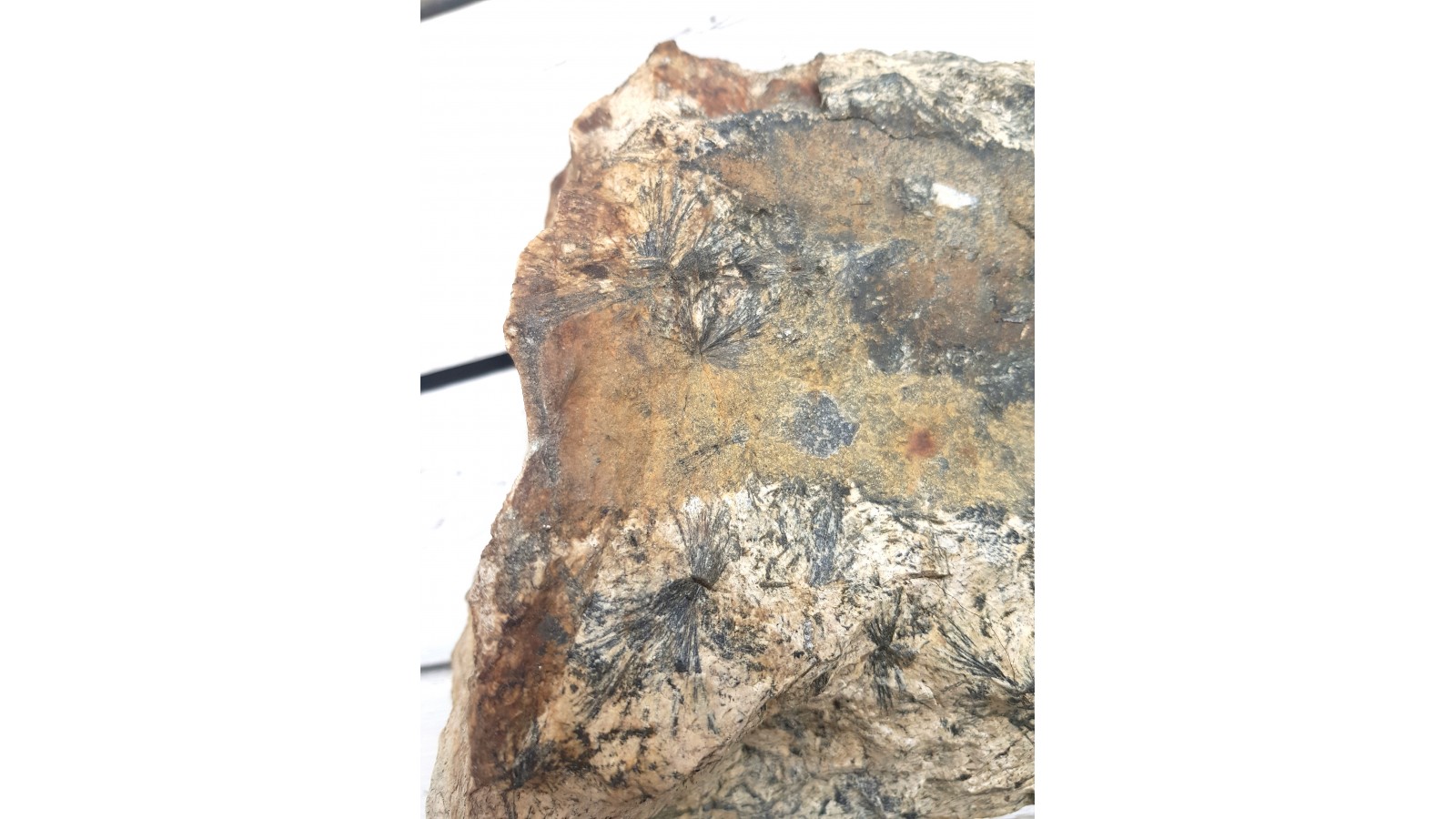 Duży okaz skały ze słońcami gedrytowymi. Najlepsze miejsce występowania gedrytu na świecie. Polecam.