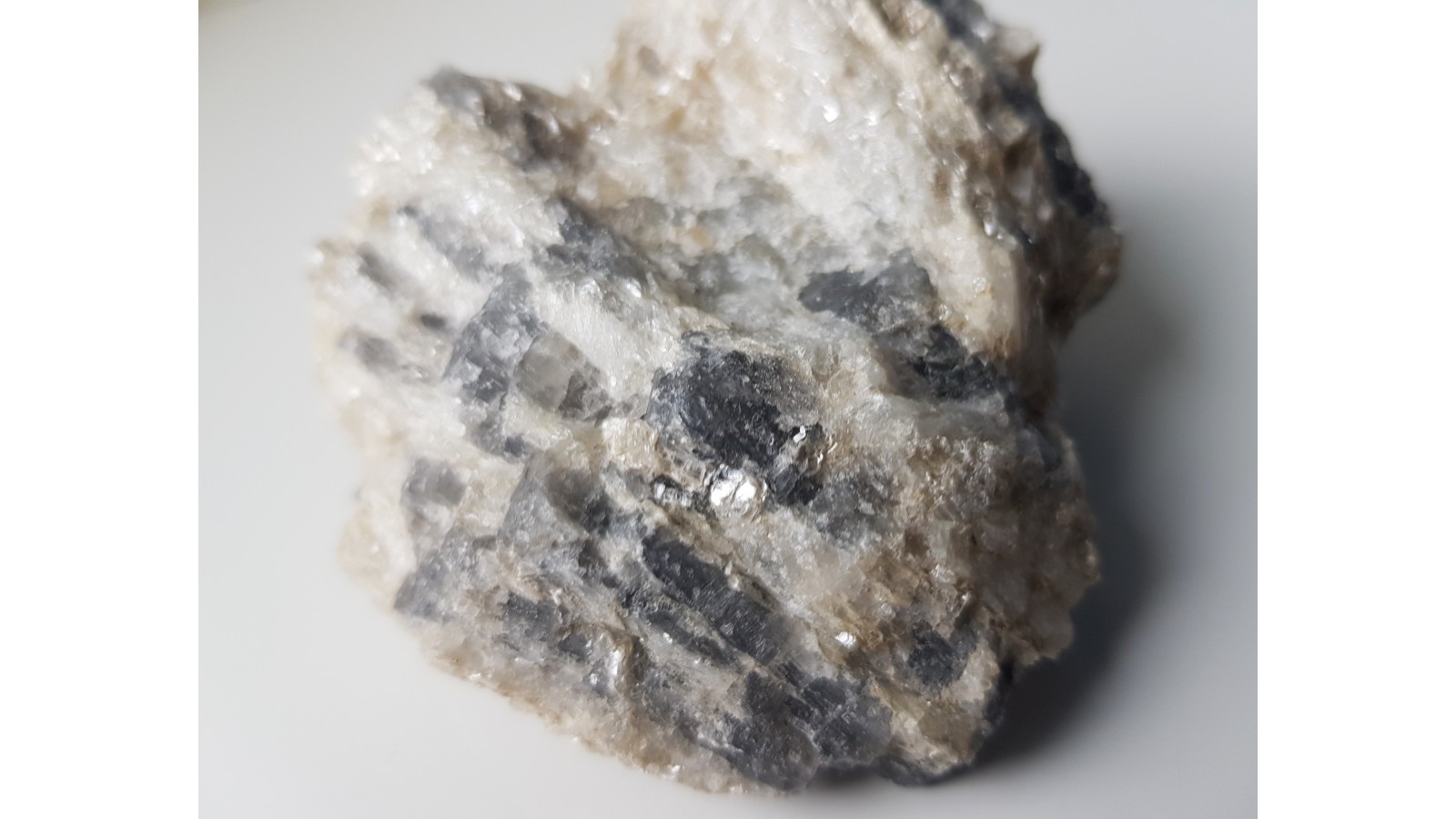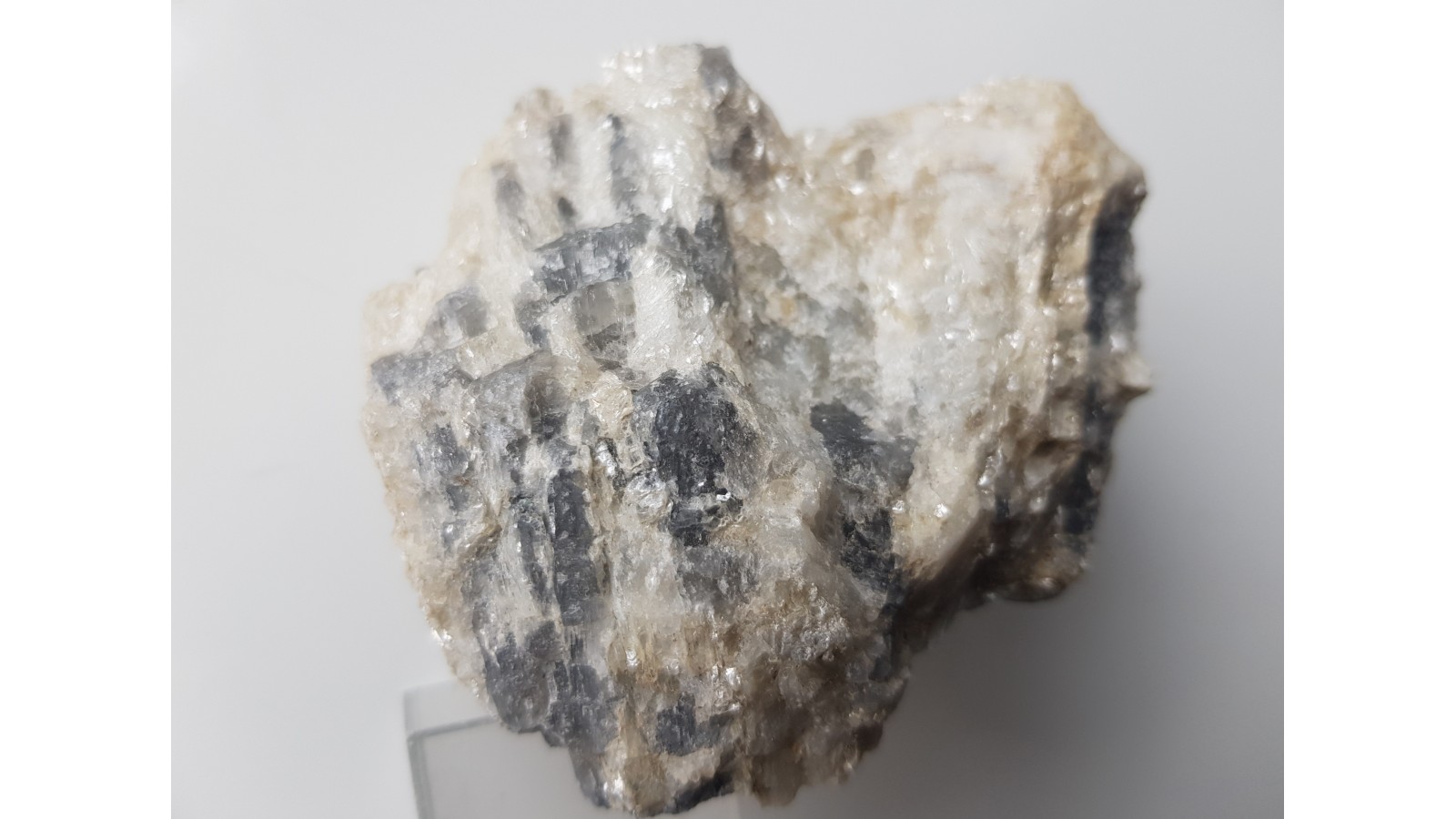 Bardzo rzadki boranokrzemian z grupy kornerupinu w postaci wrośniętych w skałę macierzystą kryształów barwy szaroniebieskawej. Skupienie wachlarzowe, promieniste kryształów. Kryształy przeświecające o połysku szklistym. Niezwykle rzadki minerał w dużych skupieniach krystalicznych. Powstaje w warunkach metamorfizmu facji granulitowej z osadów pelitowych bogatych w bor. Okaz z Hasseli, Gavleborg, Szwecja. Polecam.