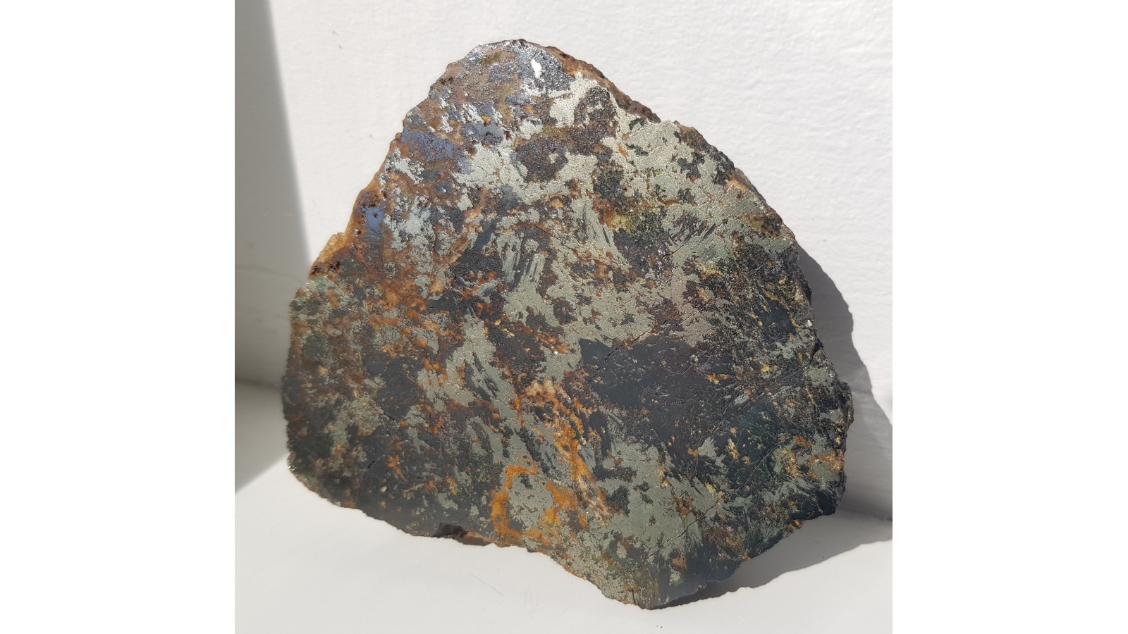 Polerowany okaz rudy sfalerytowo-pirytowej z Miedzianki k. Janowic Wlk. Bardzo estetyczny, masywny. Doskonały poler. Strona przeciwna naturalna. Polecam.