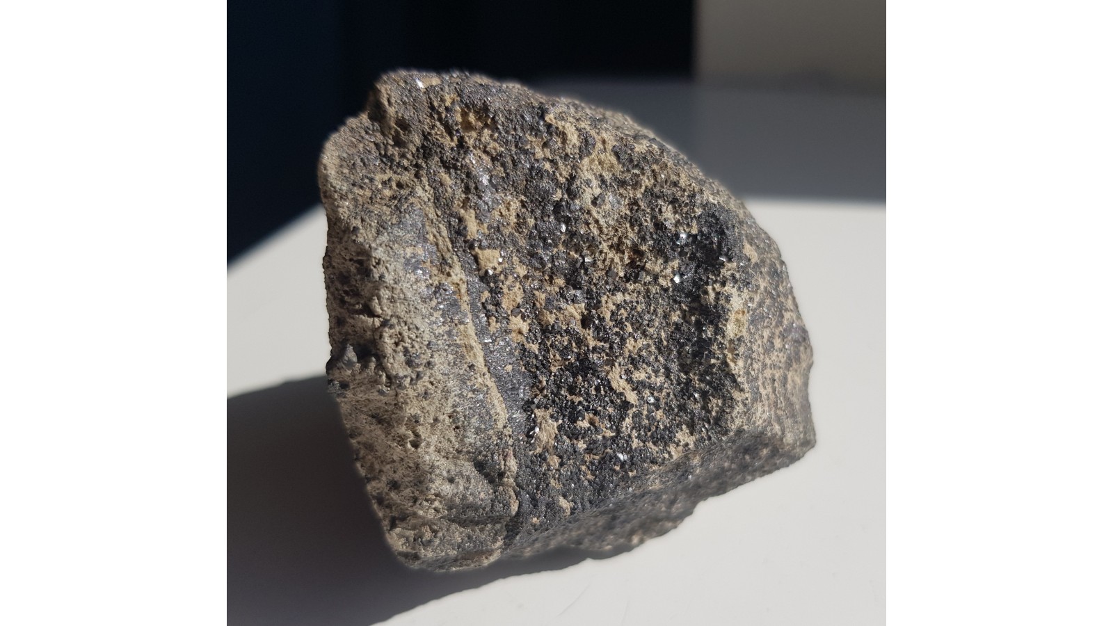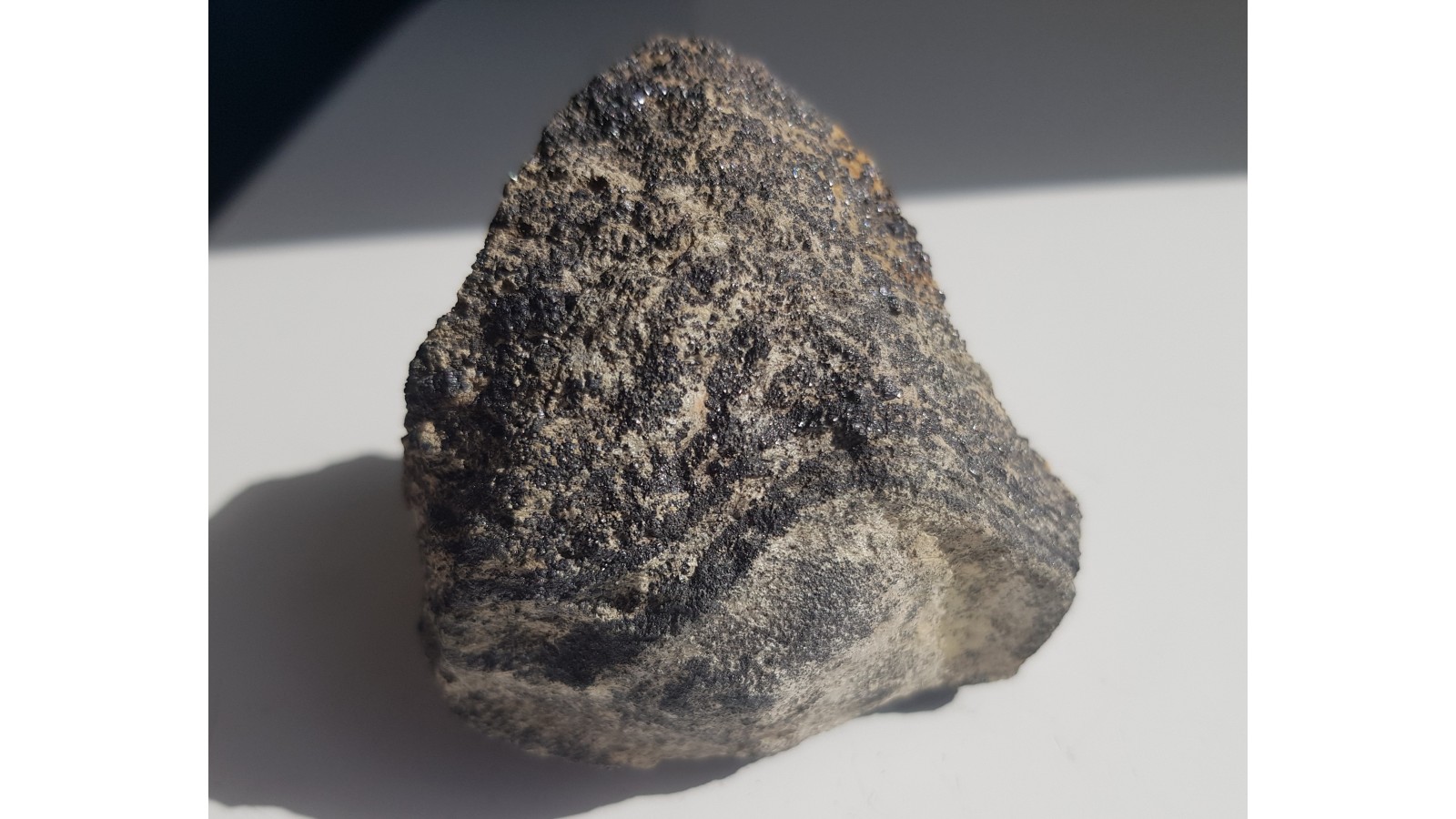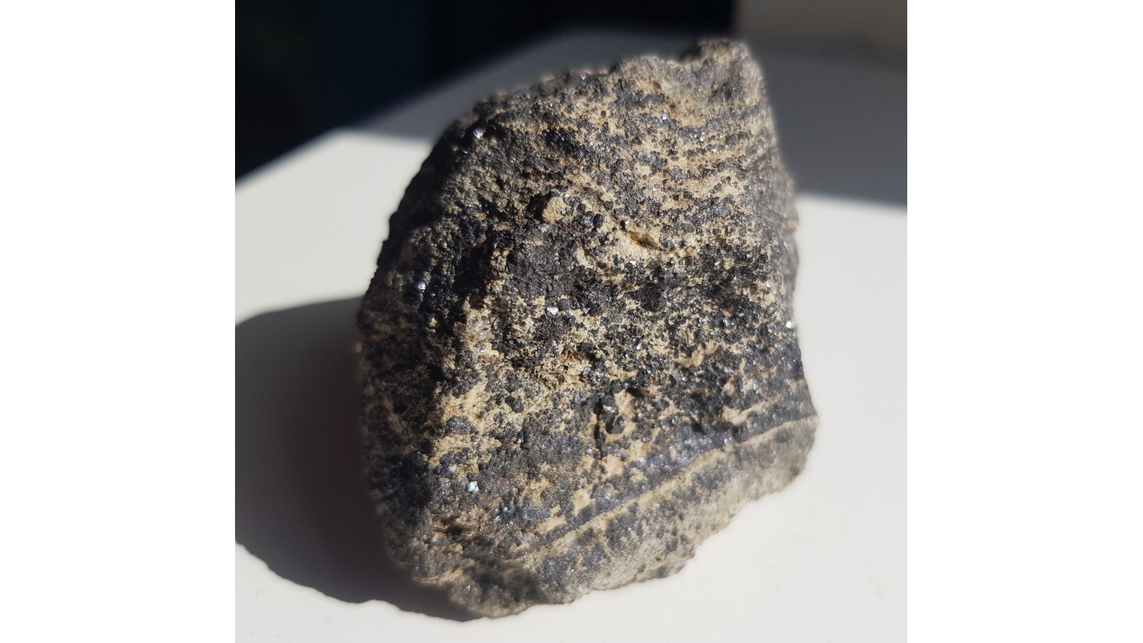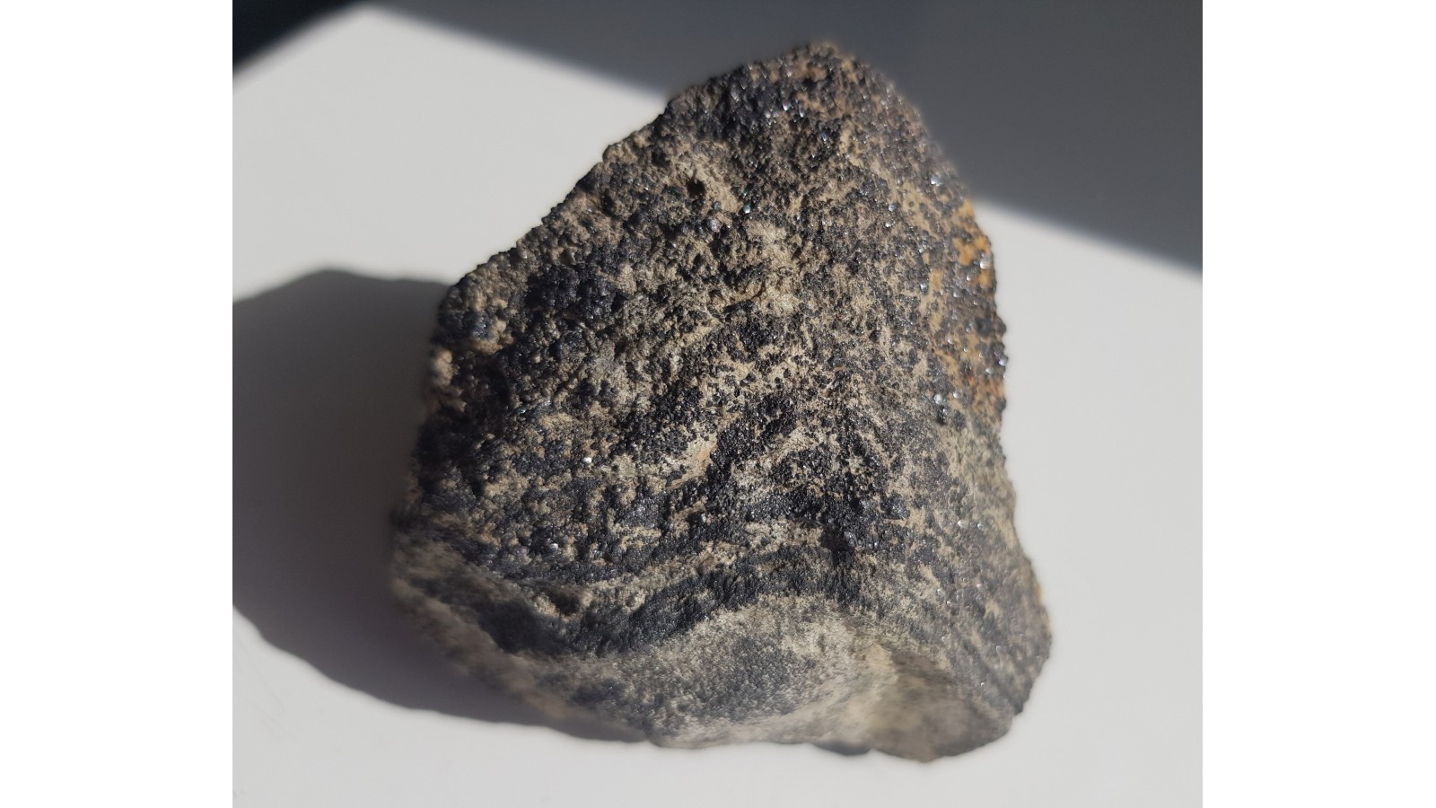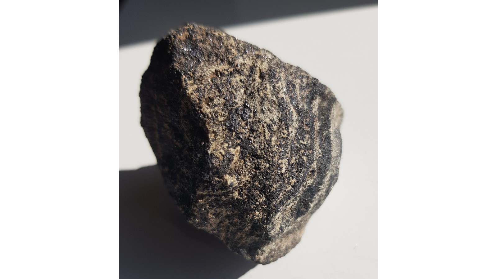 Masywny okaz rudy magnetytowej o wyrazistym wykształceniu wstęgowym, skorupowym z Miedzianki k. Janowic Wlk. Ciekawy, estetyczny okaz średniej wielkości. Polecam.