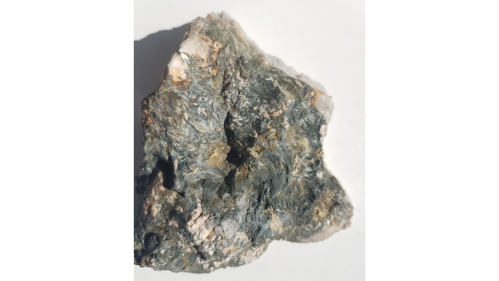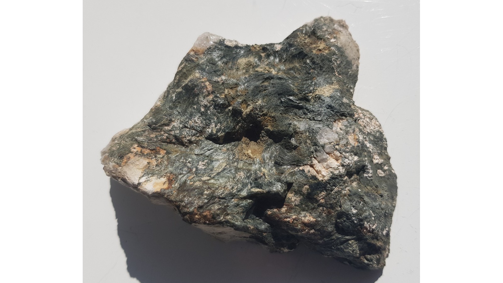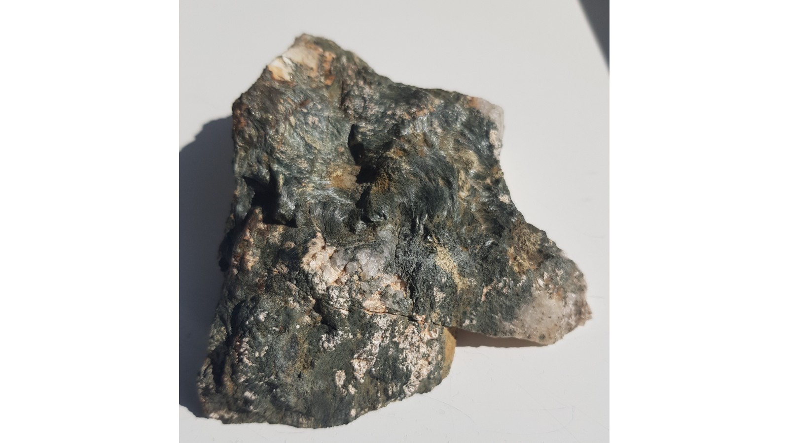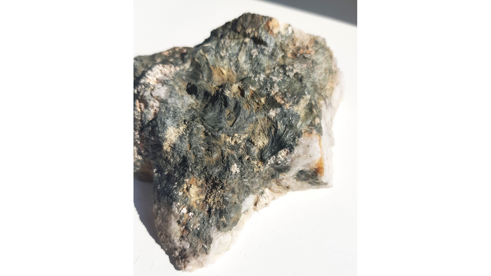 Piękny okaz wachlarzowo wykształconych skupień amfiboli z Kotliny k. Świeradowa Zdroju pochodzący dokładnie ze strefy kontaktowej leukogranitów oraz łupków chlorytowych Pasma Kamienieckiego. Okaz bez obróbki z dociętą podstawą. Polecam.