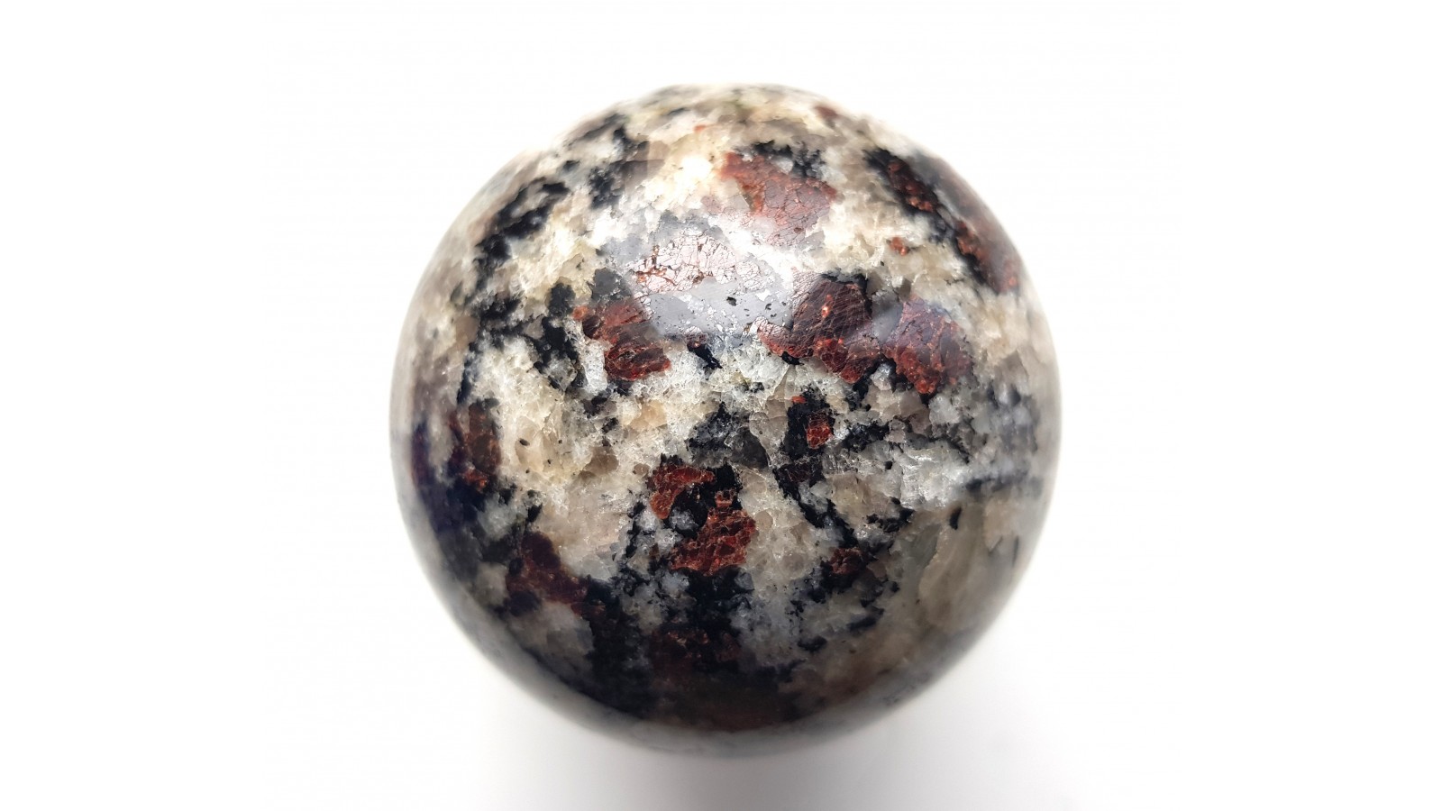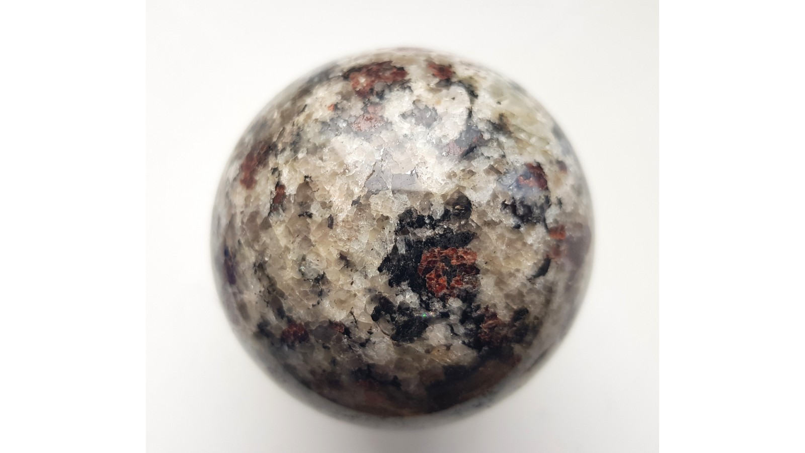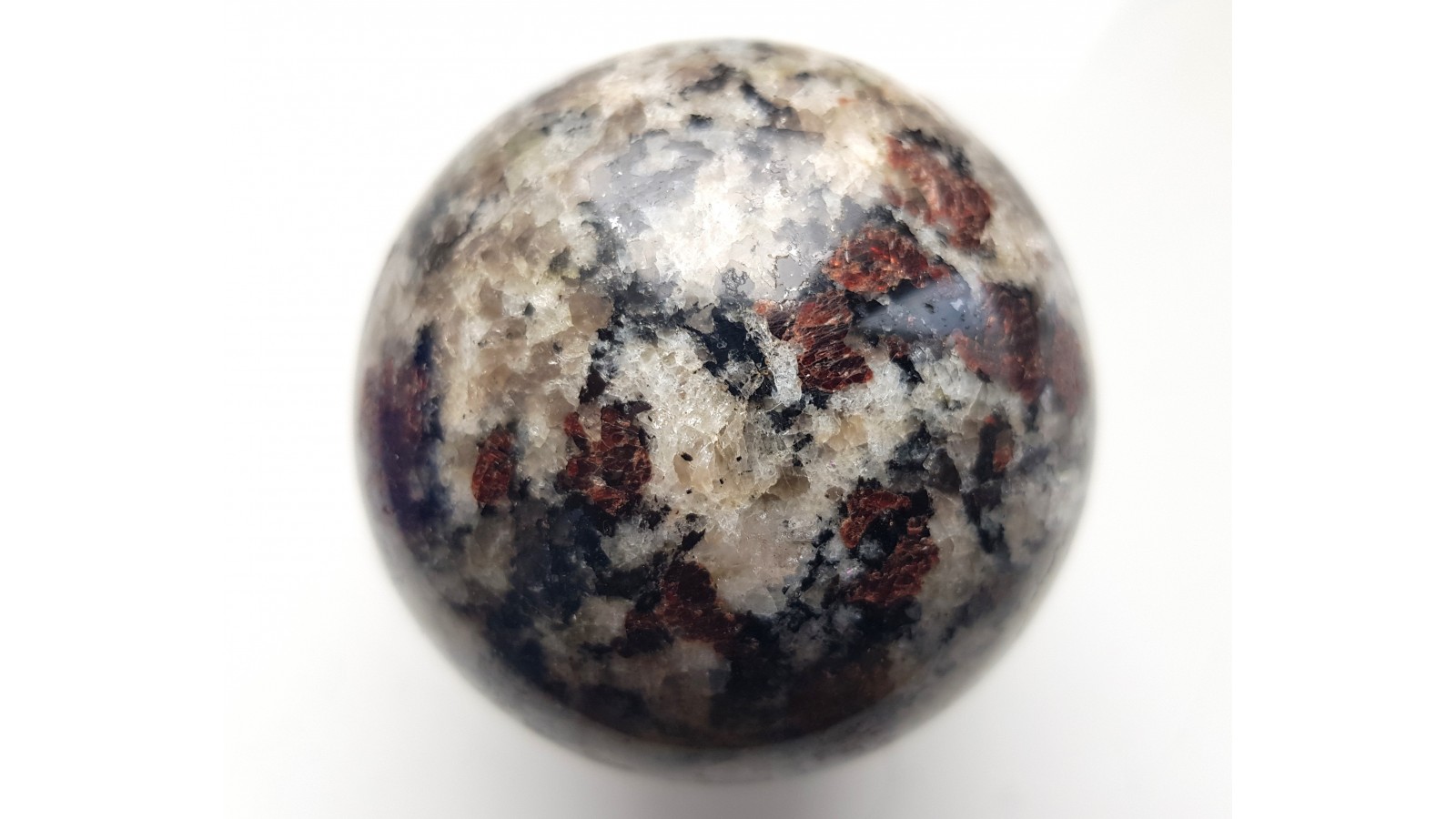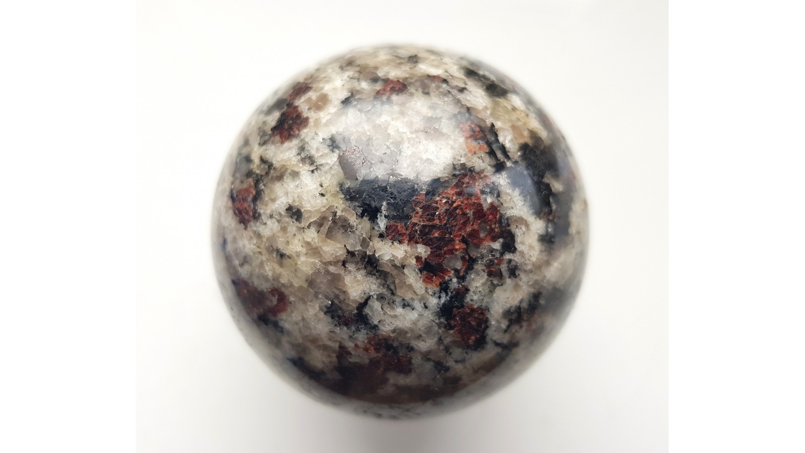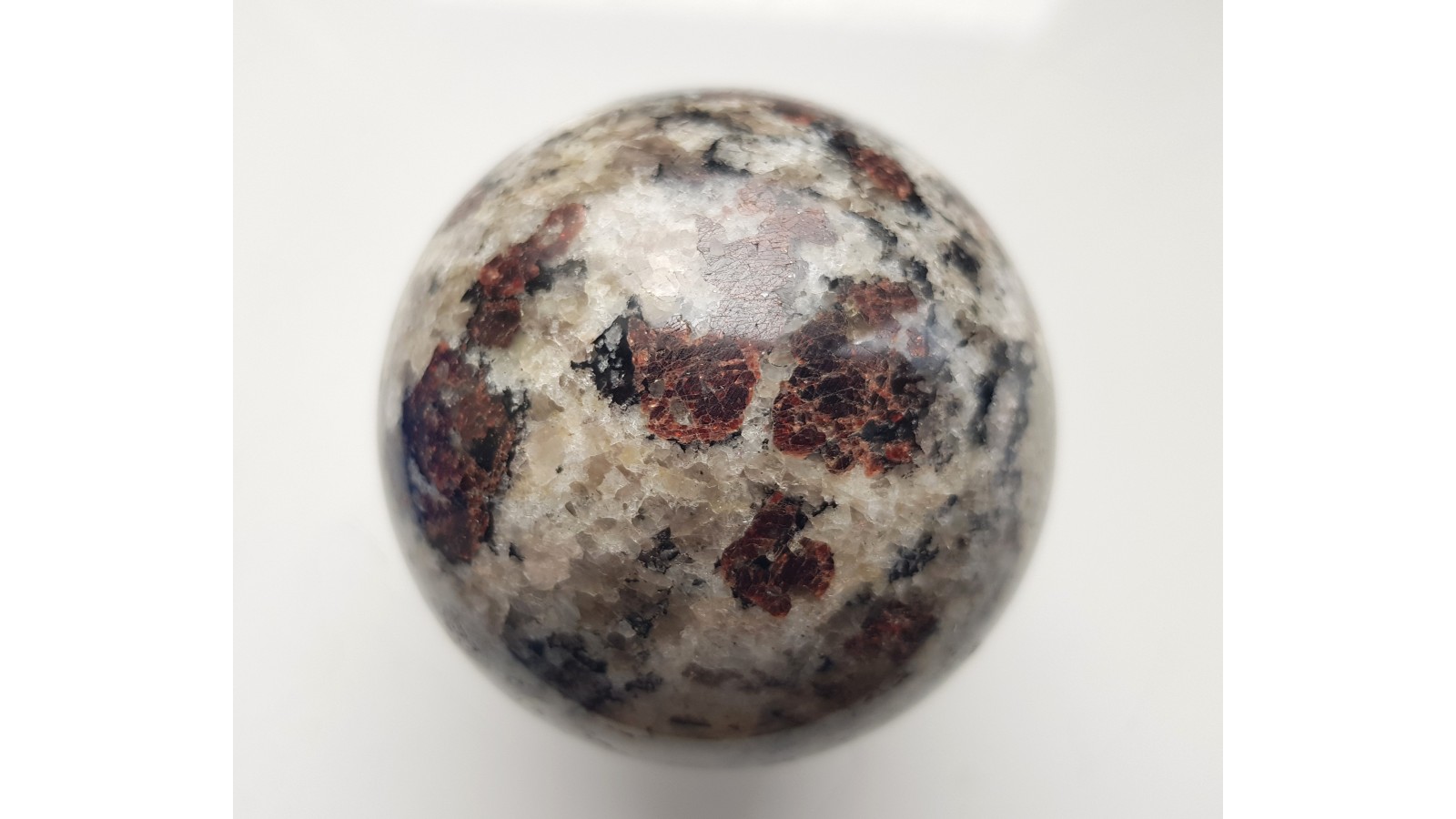 Sphere made of garnet bearing, light granulite from Inarijarvi vicinity in Finland