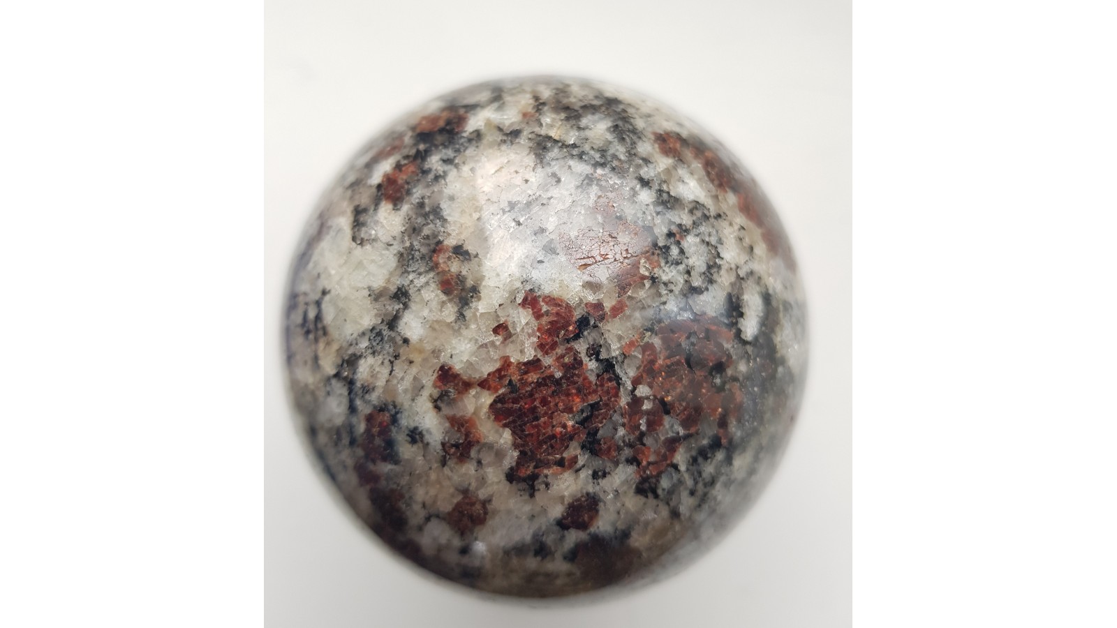 Sphere made of garnet bearing, light granulite from Inarijarvi vicinity in Finland