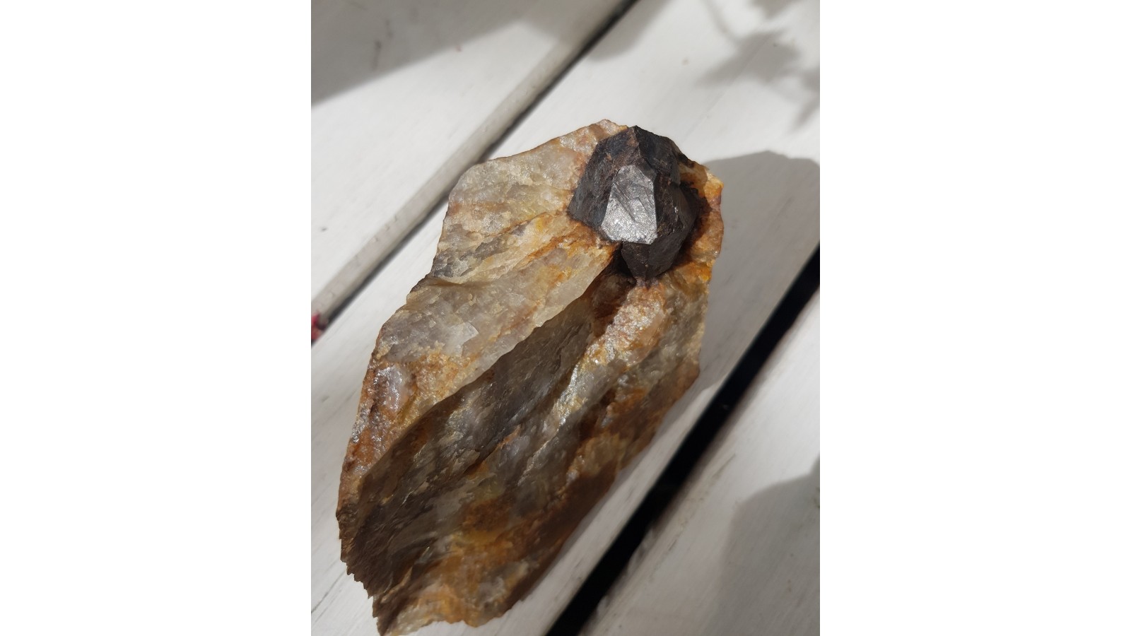 Duży, idealnie wykształcony granat w kwarcu z Gór Sowich