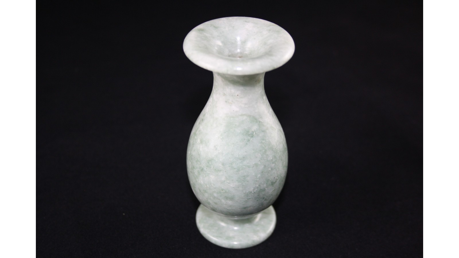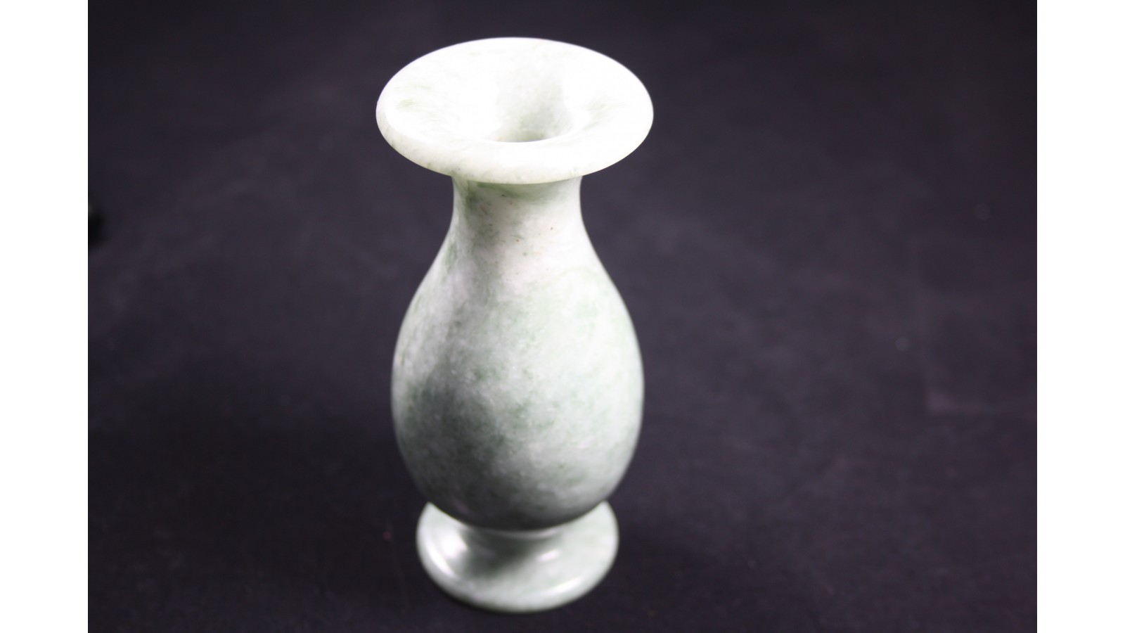 Wazonik wykonany z prawdziwego jadeitu koloru jasnozielonego z wyraźnymi zielonymi smugami i widoczną krystalizacją minerałów z grupy piroksenów, do jakich zalicza się jadeit. W odóżnieniu od większości produktów z tzw. żadu (jade), które nie są minerałem jadeitem, ten wazonik jest wykonany z bardzo wysoko cenionego wśród znawców naturalnego jadeitu. Nie jest barwiony ani w żaden inny sposób sztucznie traktowany w celu podwyższenia jego walorów ozdobnych. Obiekt wykonany przed kilkudziesięciu laty w Chinach i stamtąd osobiście sprowadzony. Bez żadnych ubytków, pęknięć czy uszczerbków.