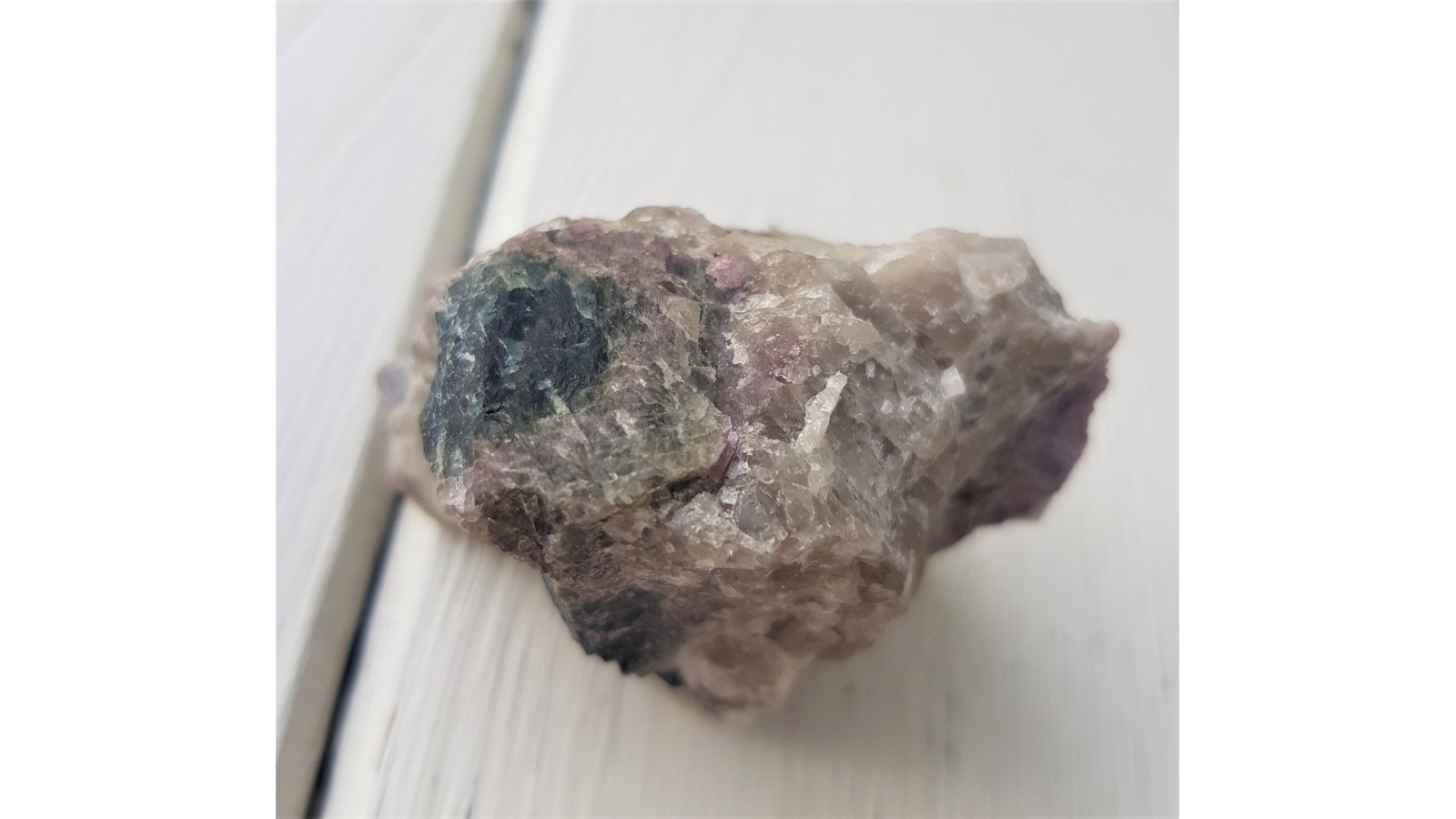 Okaz barwnego elbaitu (turmalin litowy) z Piławy Górnej w Górach Sowich. Na przekroju widoczne jest strefowe zabarwienie - czerwone na zewnątrz i zielonoszare wewnątrz kryształu. Rzadkość mineralogiczna z dotychczas jedynego znanego w polskich Sudetach stanowiska turmalinów litowych.