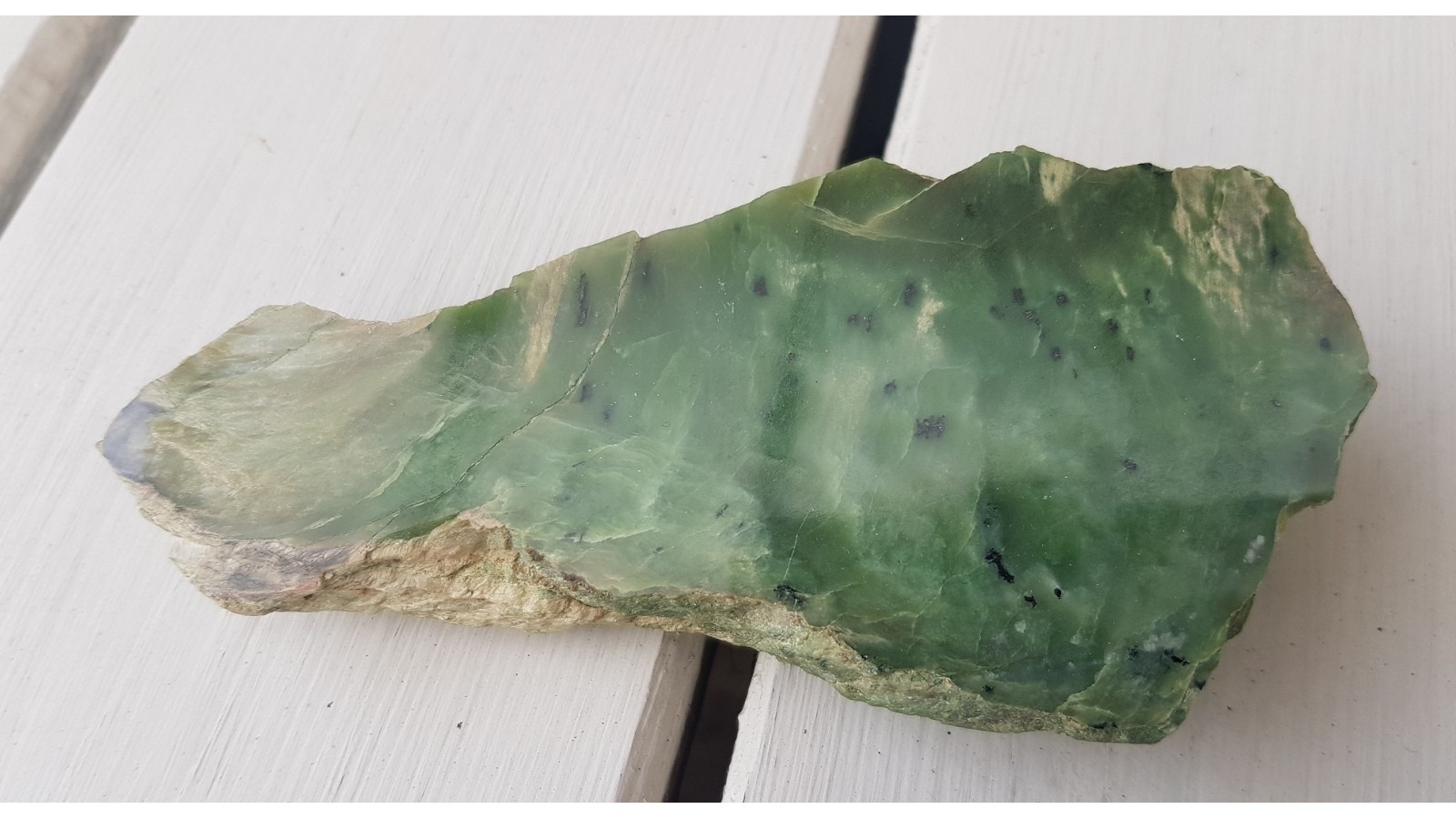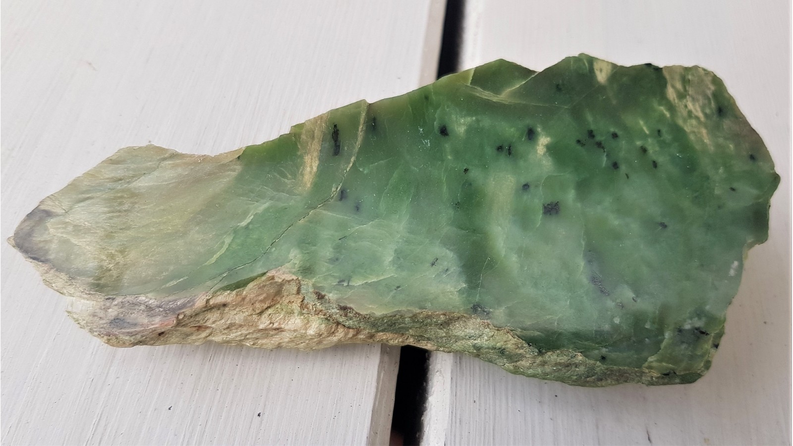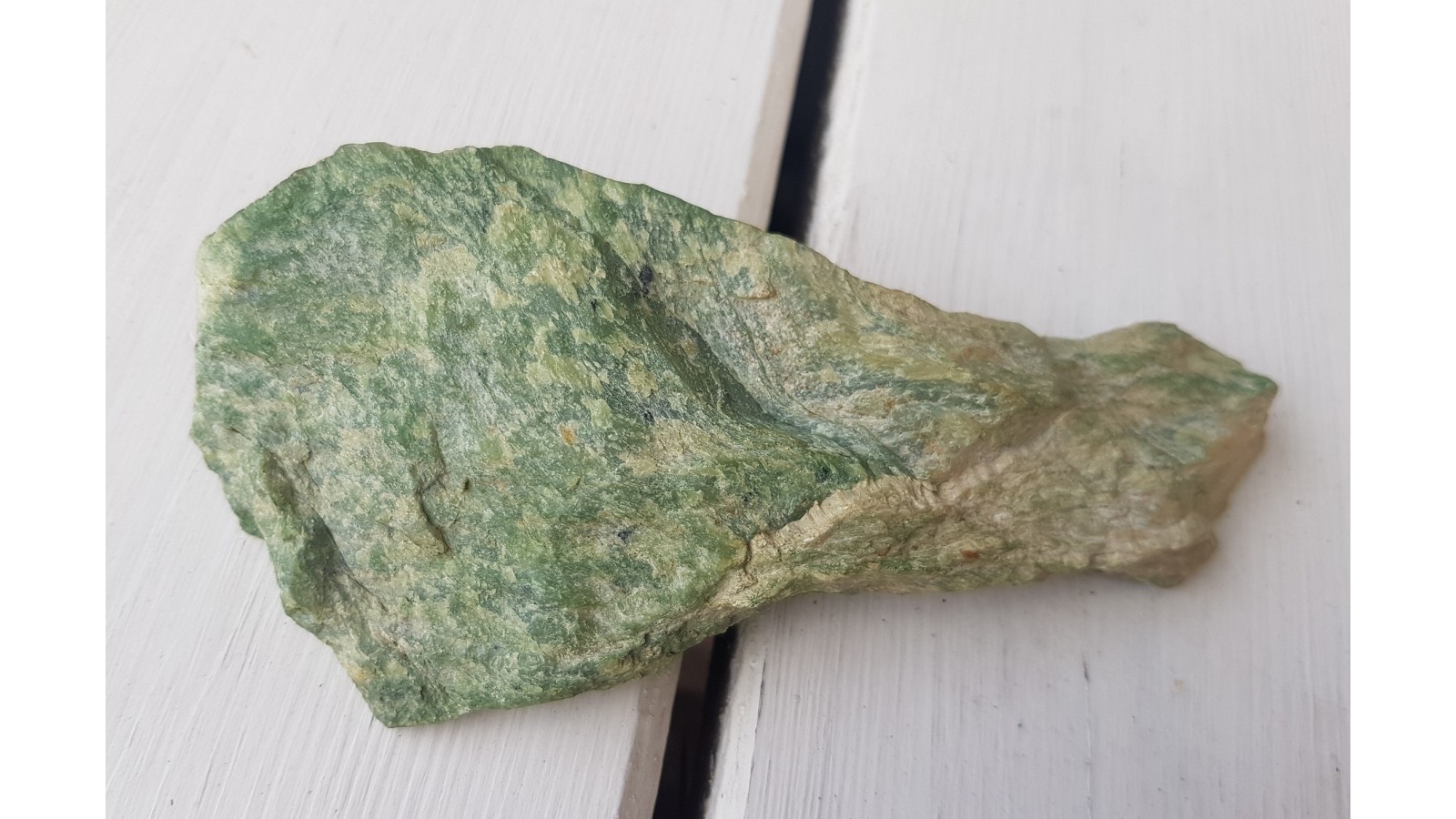 Oferujemy okaz nefrytu pochodzący z kamieniołomu serpentynitu w Nasławicach na Dolnym Śląsku. Jest to nietypowa lokalizacja, odkryta relatywnie niedawno w 2008 roku (Łobos K.,.Sachanbiński M, Pawlik T., Nefryt z Nasławic na Dolnym Śląsku, Przegląd Geologiczny, vol. 56, nr 11. 2008). Nefryt ten charakteryzuje się jaśniejszą niż w Jordanowie barwą. Piekny, kolekcjonerski okaz, świetna barwa, intensywnie jasnozielona. Prawdziwa rzadkość. Doskonały poler.