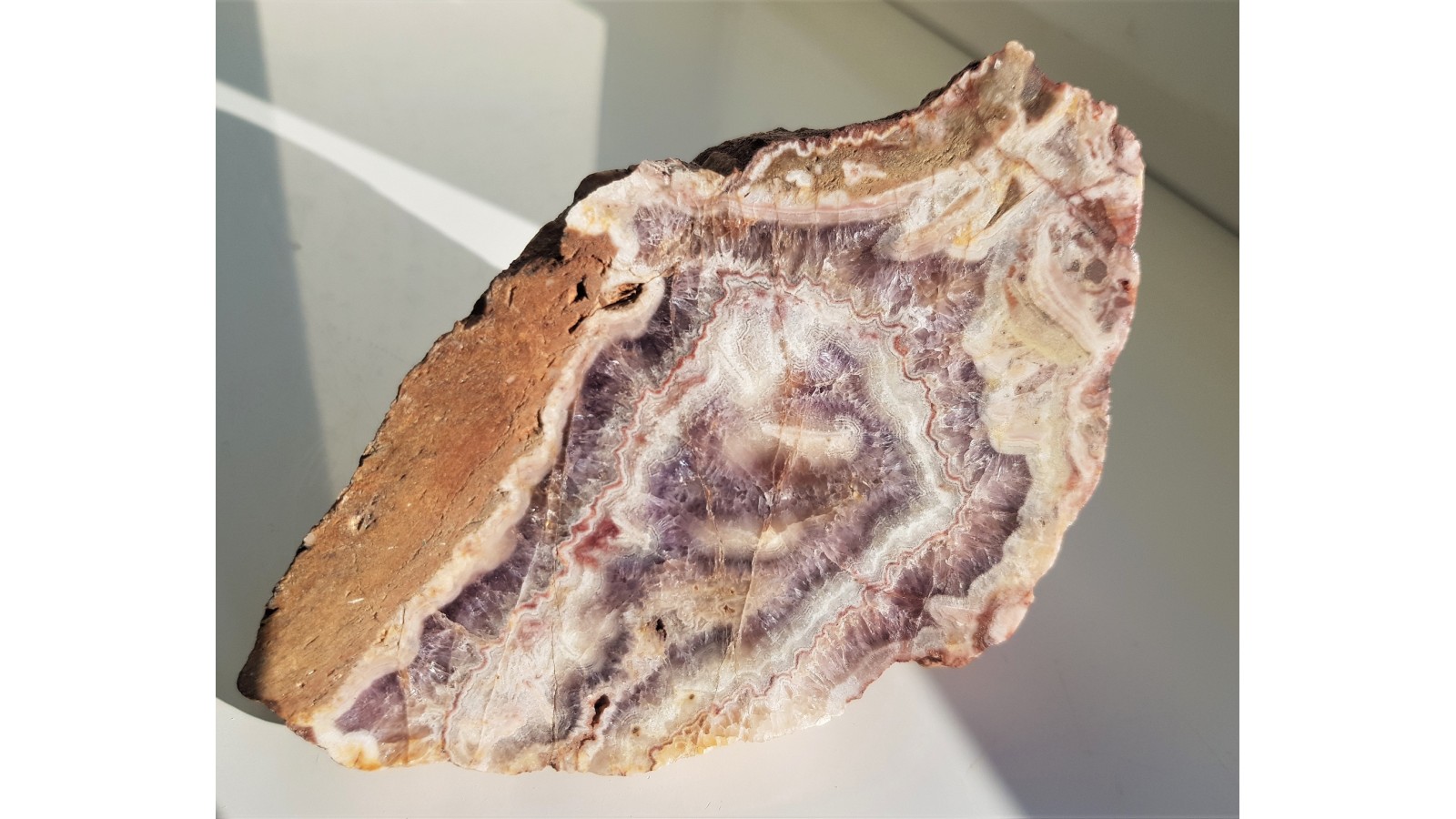 Ametyst z Kwietnik k. Bolkowa. W okazie także strefa agatowa. Świetny poler. Polecam.
