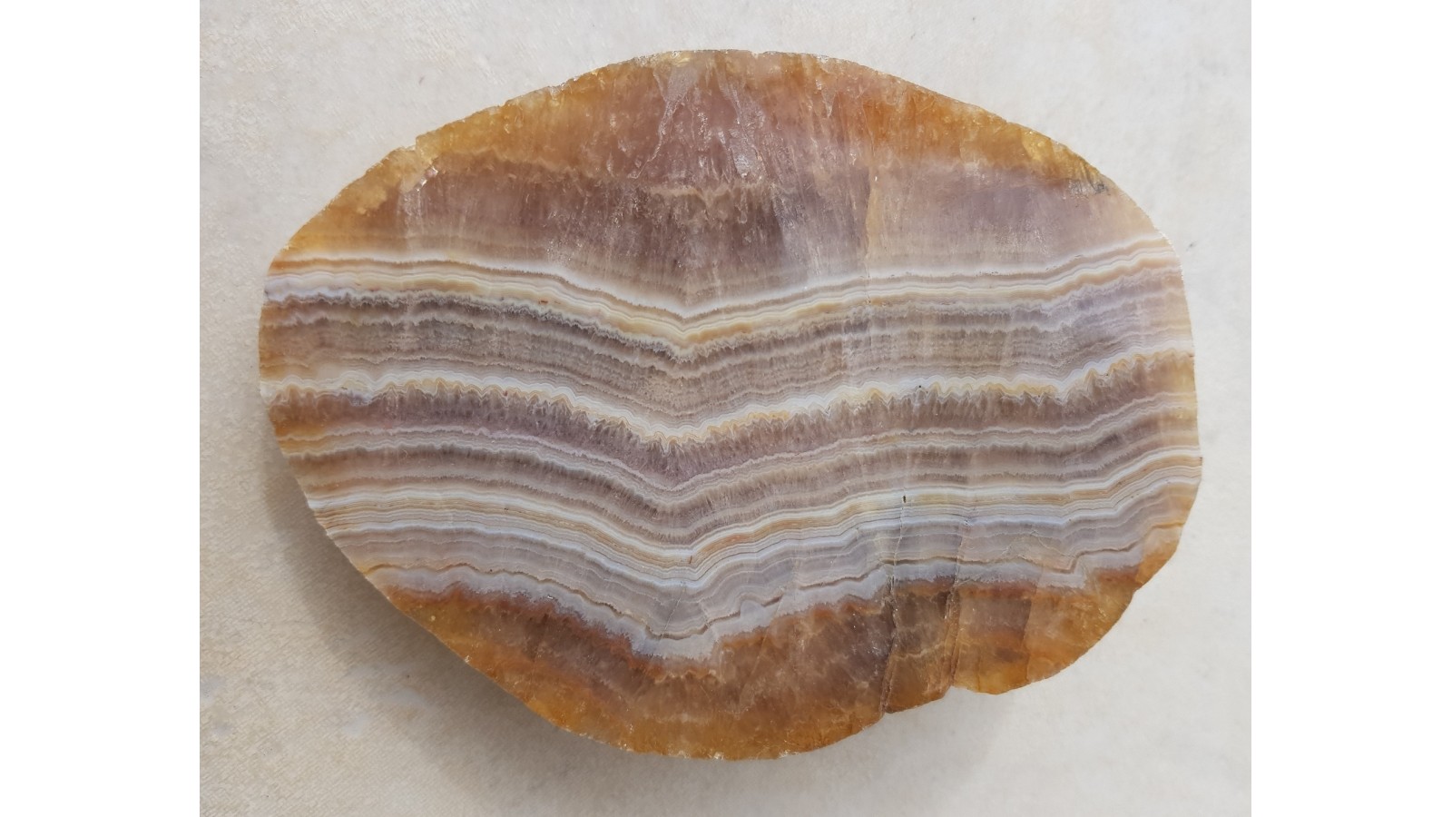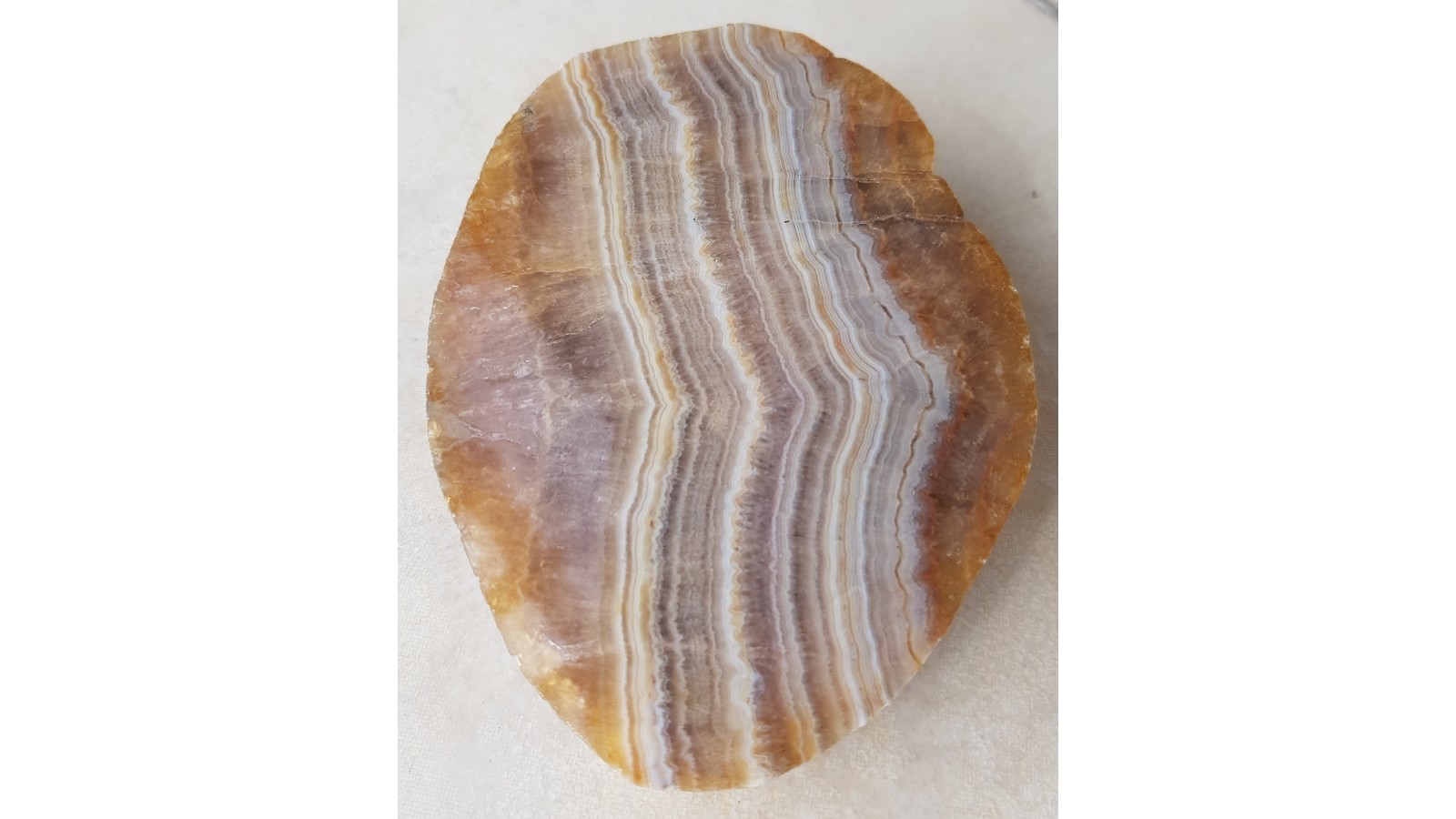 Wspaniały, duży, pastelowo zabarwiony agat z aluwiów Bobru w Sudetach. Okaz z pięknym polerem. Tył - naturalny otoczak. Niespękany, nieuszkodzony, cała forma.
