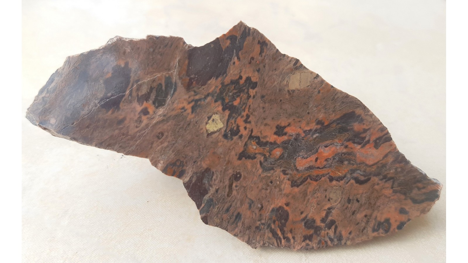 Keratofir z wyraźnymi teksturami fluidalnymi z Gór Kaczawskich. Zbliżona składem mineralnym do trachitu, zawierająca bogate w sód plagioklazy. Wiek najprawdopodobniej staropaleozoiczny. Skała intensywnie skrzemionkowana, doskonale się polerująca. Piękna barwa i deseń. Skała ozdobna.