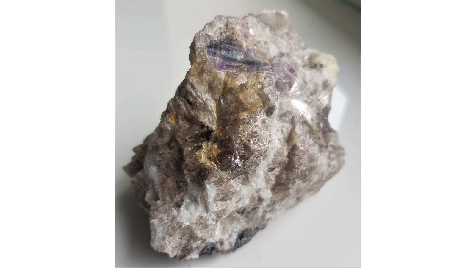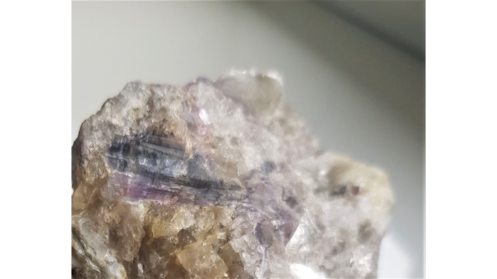 Okaz barwnego elbaitu (turmalin litowy) oraz żółtego berylu litowo-cezowego we fragmencie pegmatytu z Piławy Górnej w Górach Sowich, z żyły Julianna. Na przekroju widoczne jest strefowe zabarwienie - czerwone i zielonoszare. Rzadkość mineralogiczna z dotychczas jedynego znanego w polskich Sudetach stanowiska turmalinów litowych.