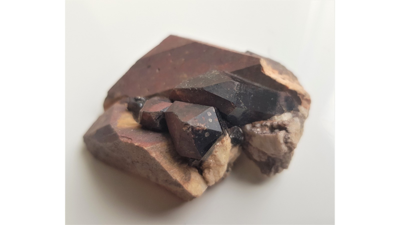 Morion crystals on feldspar from Karkonosze Mts. (Sudetes, Poland)