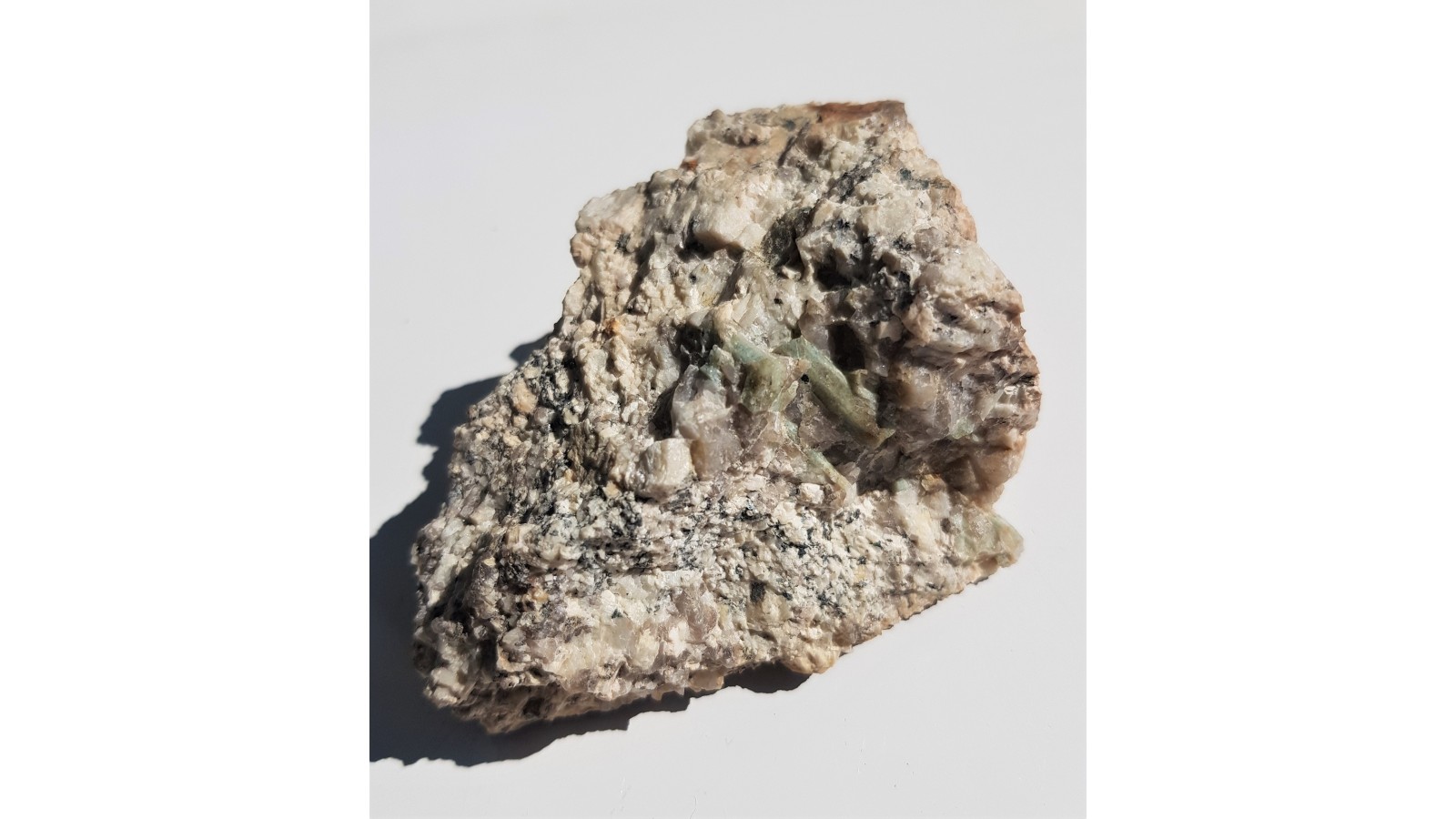 Kryształy akwamarynu (błękitny beryl) wrośnięte w pegmatyt z okolic Szklarskiej Poręby. Kryształy dobrze wykształcone, w skale macierzystej. Na stronie odwrotnej także kryształy akwamarynu. Ciekawostka mineralogiczna z Karkonoszy.