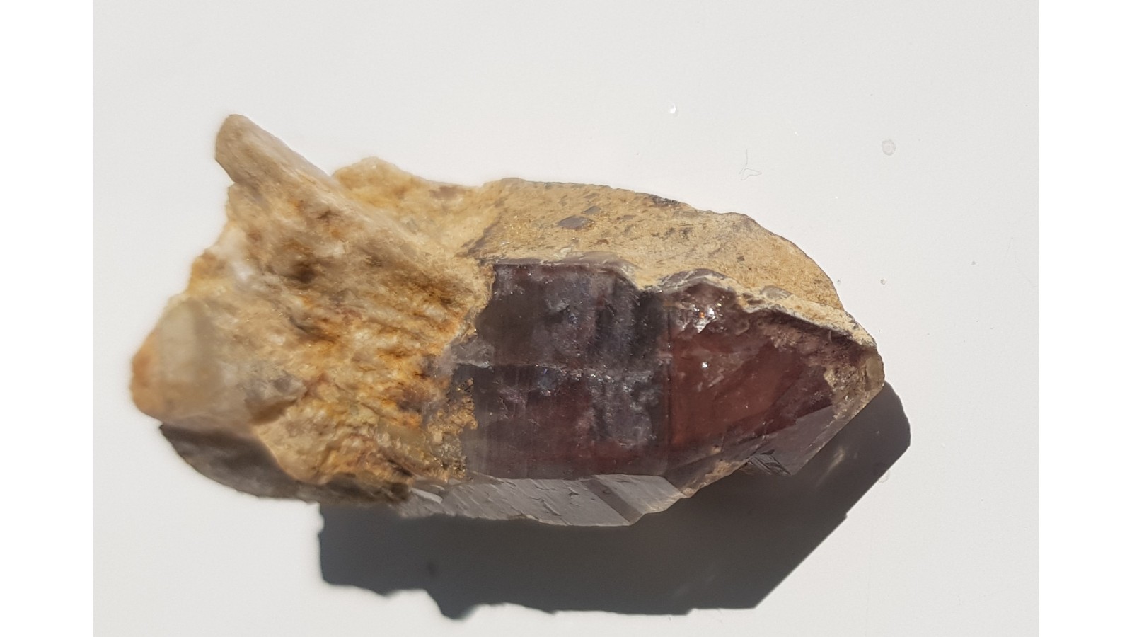 Bardzo ładny, nieuszkodzony i zakończony kryształ kwarcu żelazistego ze słynnego znaleziska w Wojanowie k. Jeleniej Góry. Okazy te są bardzo cenione z uwagi na piękny kolory spowodowany narastaniem czerwonego hematytu na jednej z generacji (wewnątrz) kryształów kwarcu.