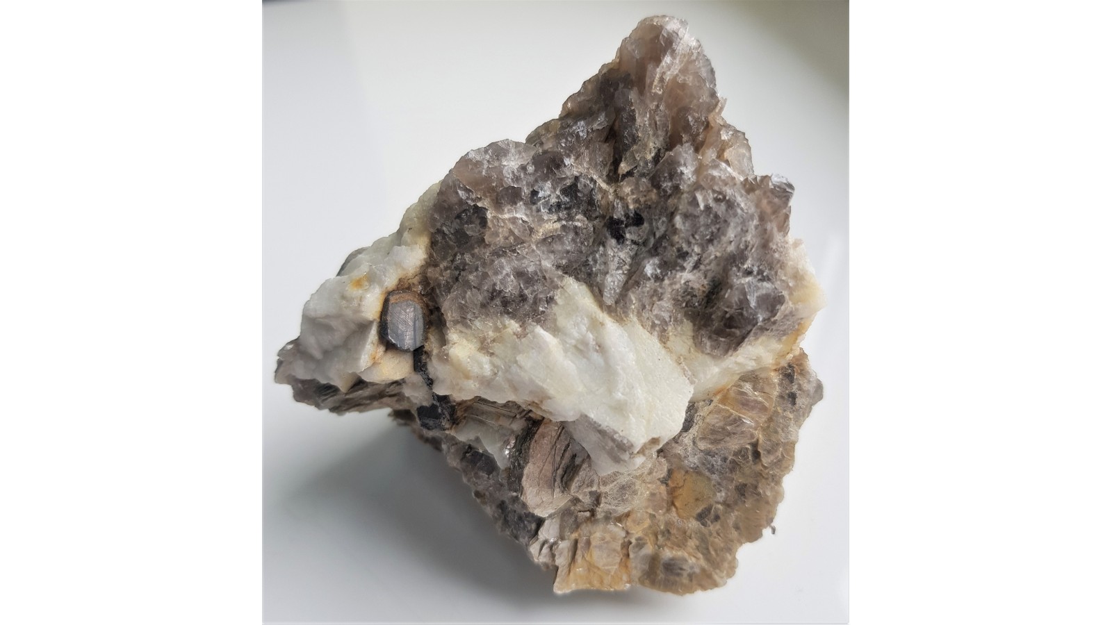 Wrośnięty w pegmatyt duży fragment tabliczkowatego kryształu columbitu. Columbit czarny, z połyskiem, fragment bardzo dużego kryształu. Rzadkość mienralogiczna do kolekcji. Polecam.